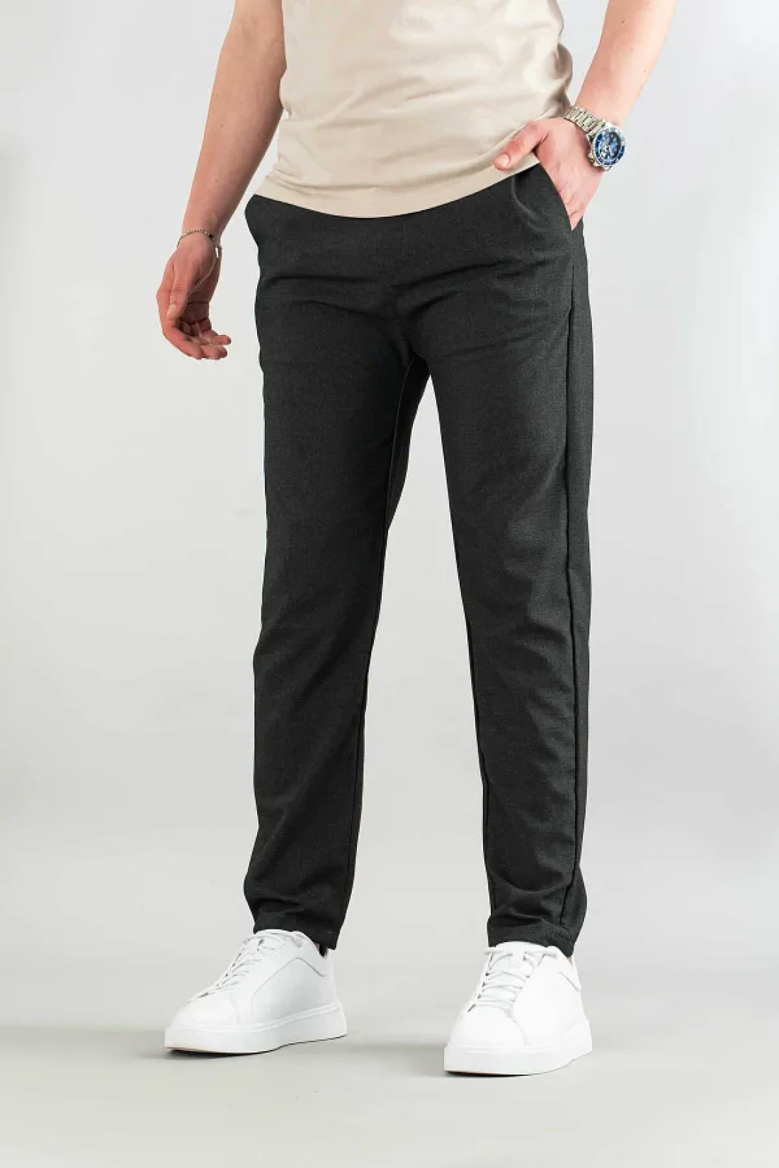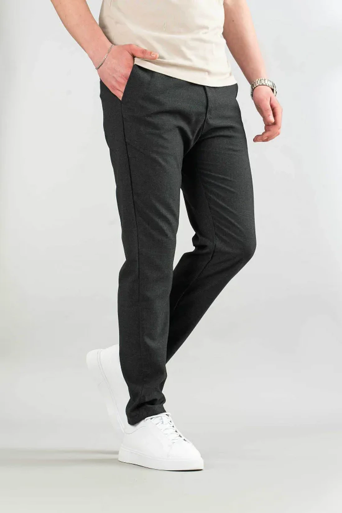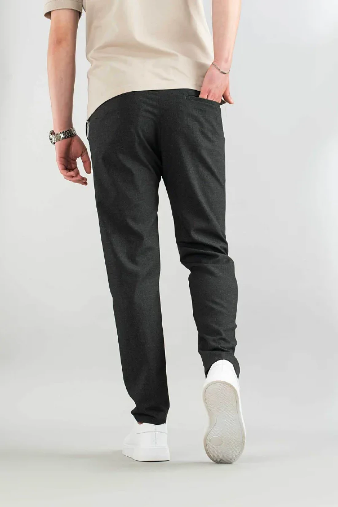 - يزيد النسيج المنسوج من المتانة، مما يسمح له بالحفاظ على شكله حتى مع الاستخدام المتكرر. أكمل مظهرك الأنيق مع هذه السراويل التي يمكنك اختيارها حتى في البيئات العصرية. لديه هيكل يتناسب مع خطوط جسمك بفضل قالبه النحيف ويظهر موقفًا أنيقًا. - بفضل نمطه البسيط، يمكن مطابقته بسهولة مع قطع أخرى، مما يعزز تعدد استخدامات خزانة ملابسك. - بفضل محتواه من الإيلاستين، يزيد من حرية حركتك من خلال توفير المرونة. - توفر خامته غير المبطنة شعورًا بالخفة، مما يبقيك مرتاحًا طوال اليوم.