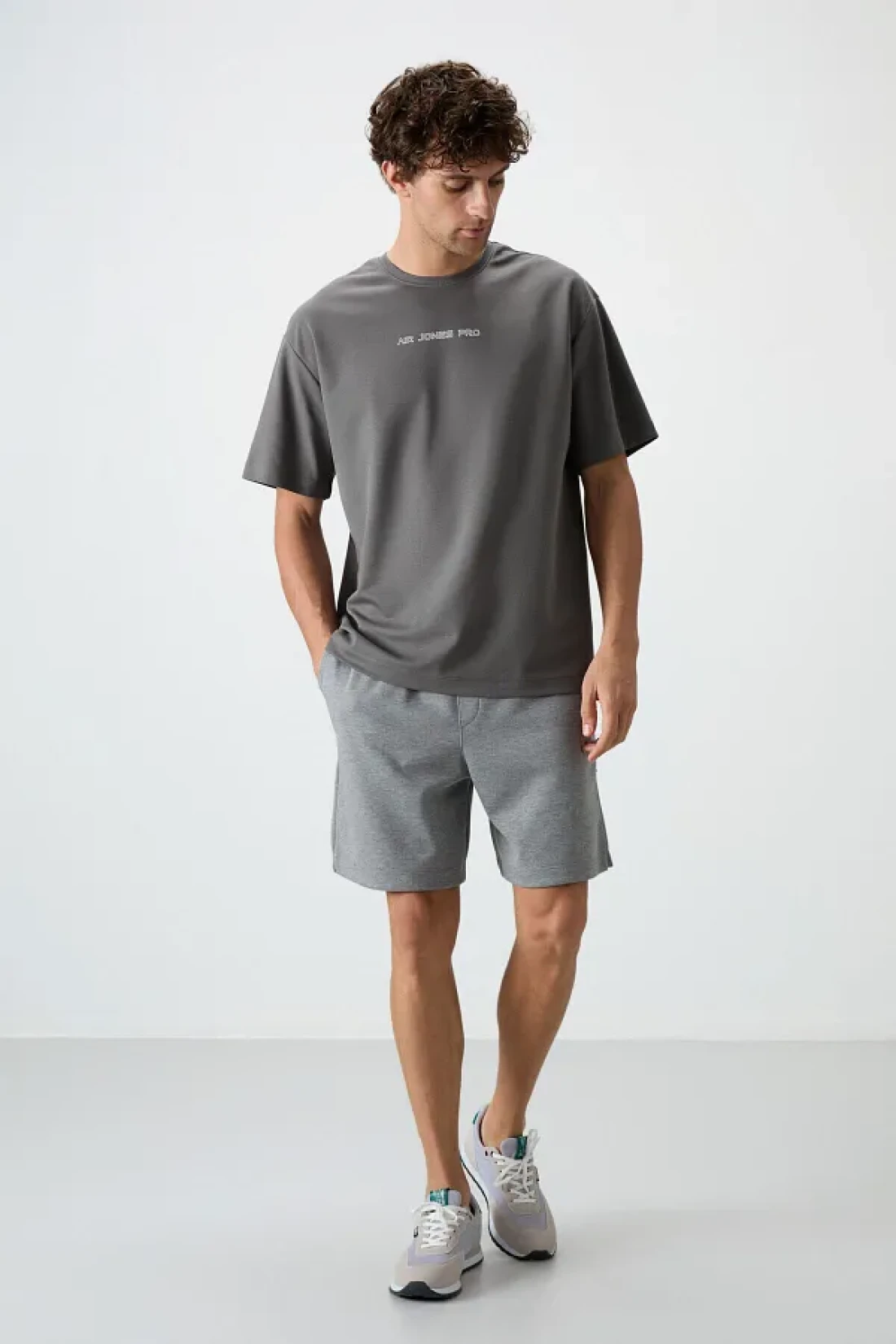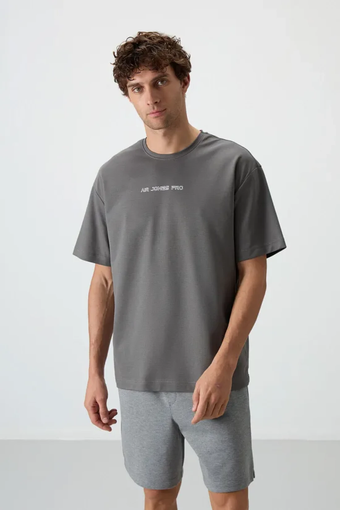 Air Jones تي شيرت رجالي مطبوع ذو سطح سميك من القطن باللون الرمادي الداكن - 88364