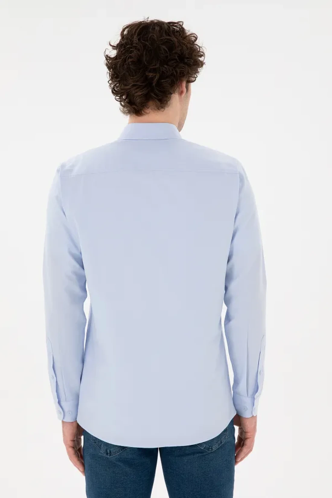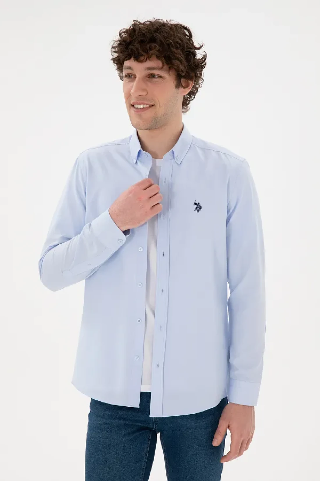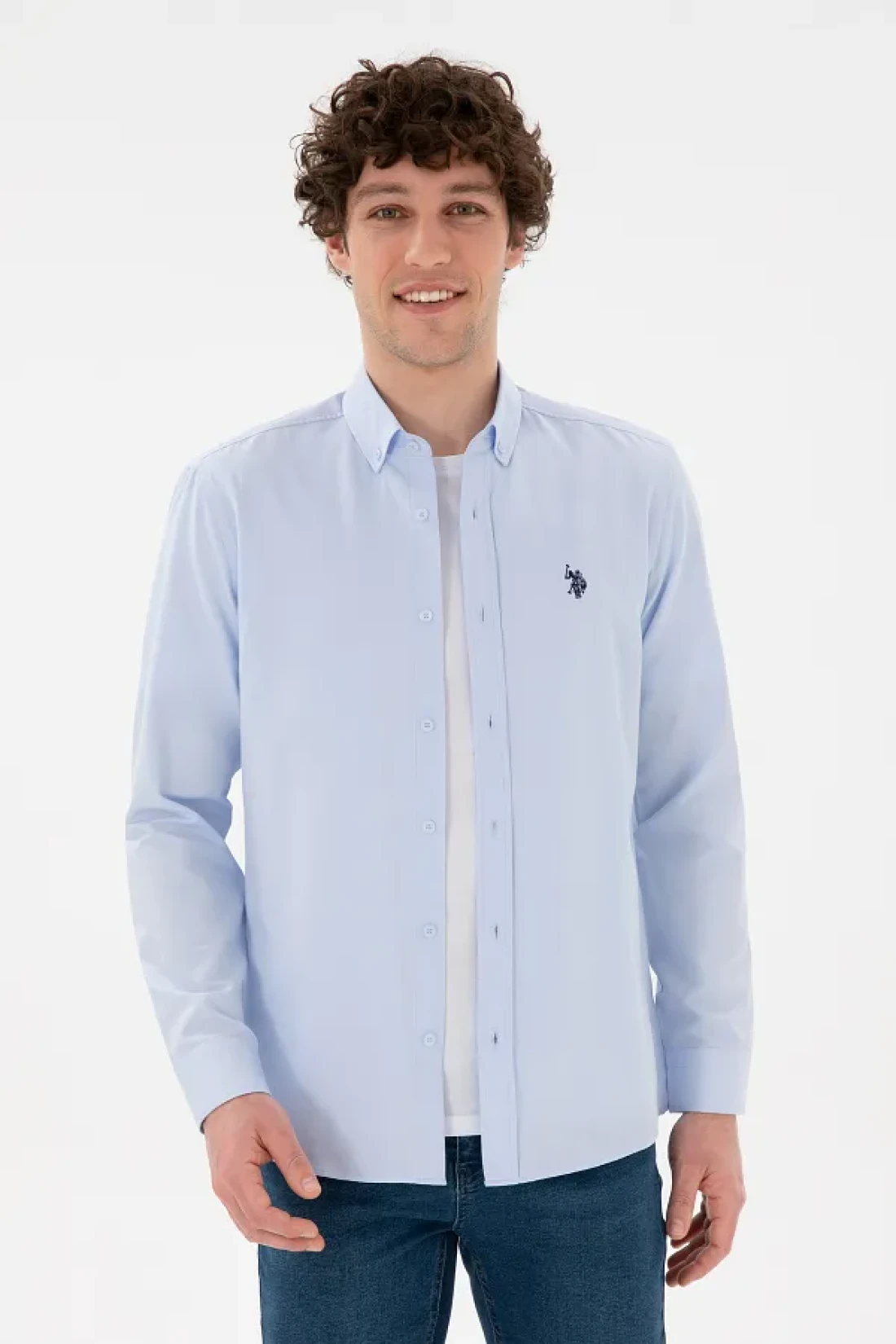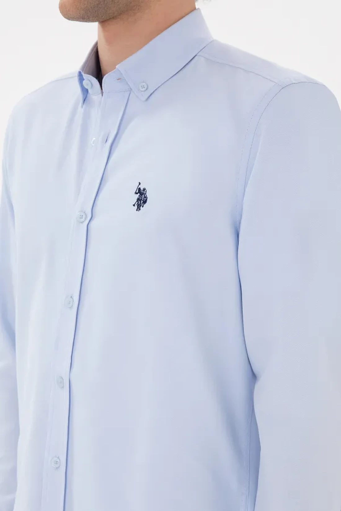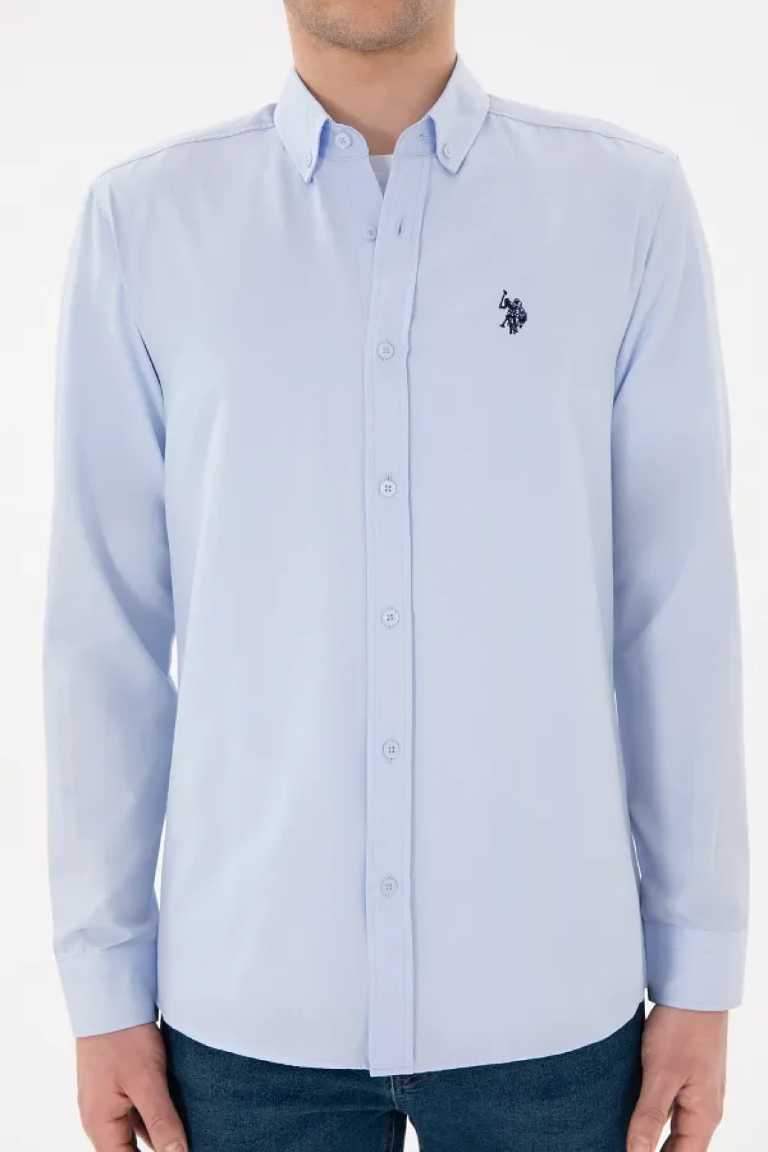 U.S. Polo Assn. قميص رجالي أساسي بأكمام طويلة باللون الأزرق الفاتح 50296777 -VR003