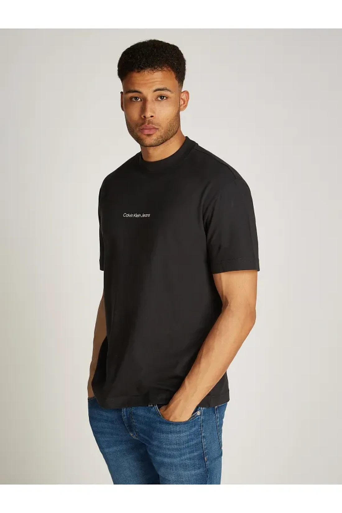 تي شيرت كالفن كلاين للرجال أسود بأكمام قصيرة