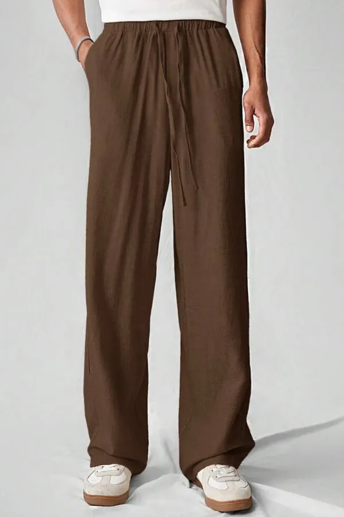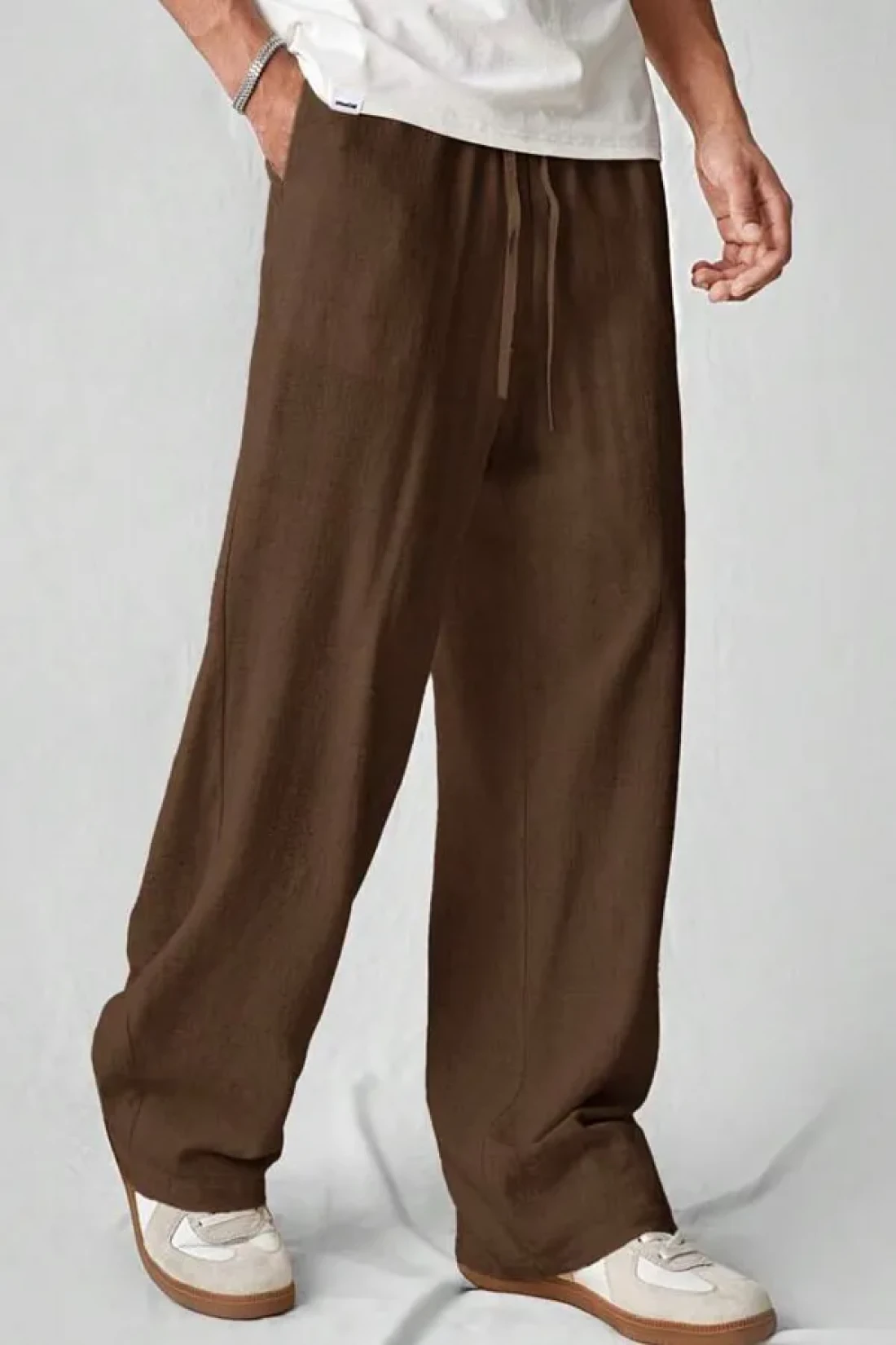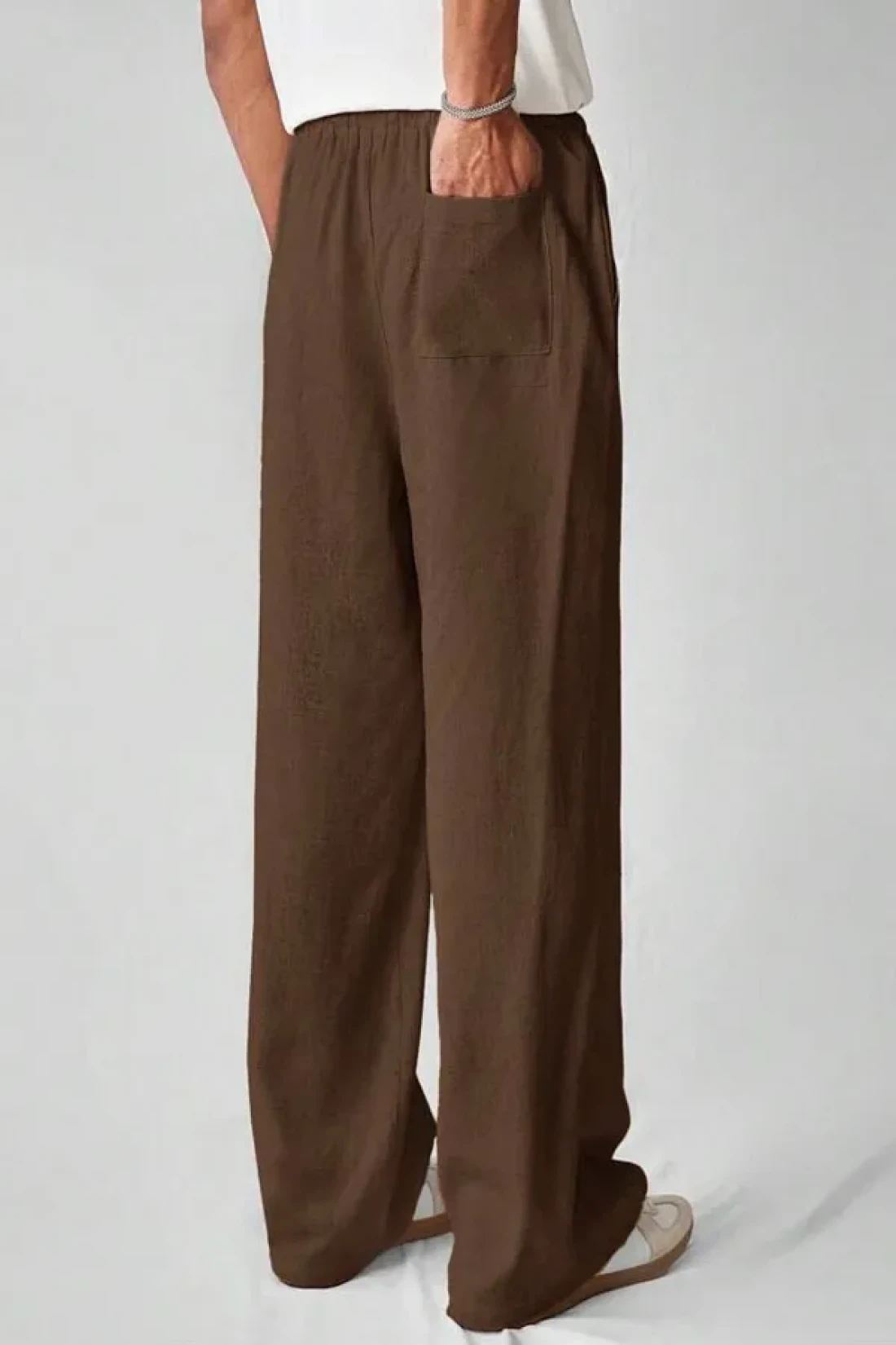 North London بنطال رجالي واسع الساق من مزيج الكتان مقاس كبير