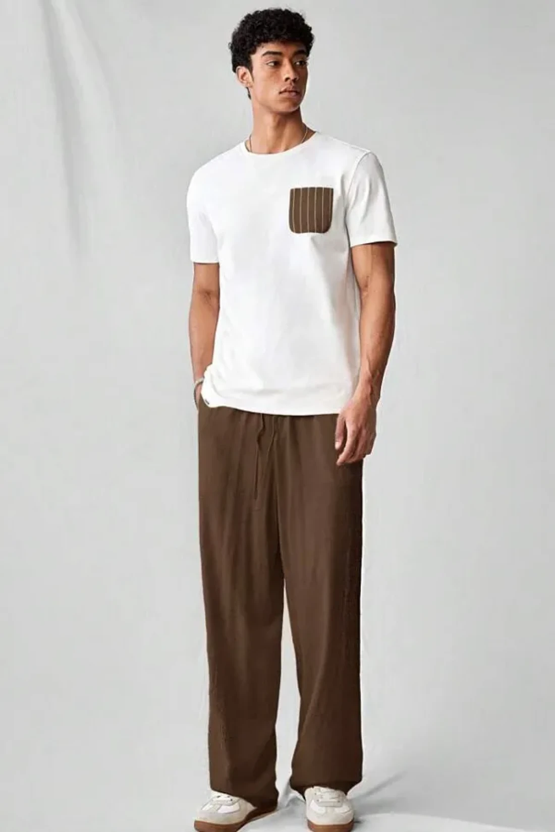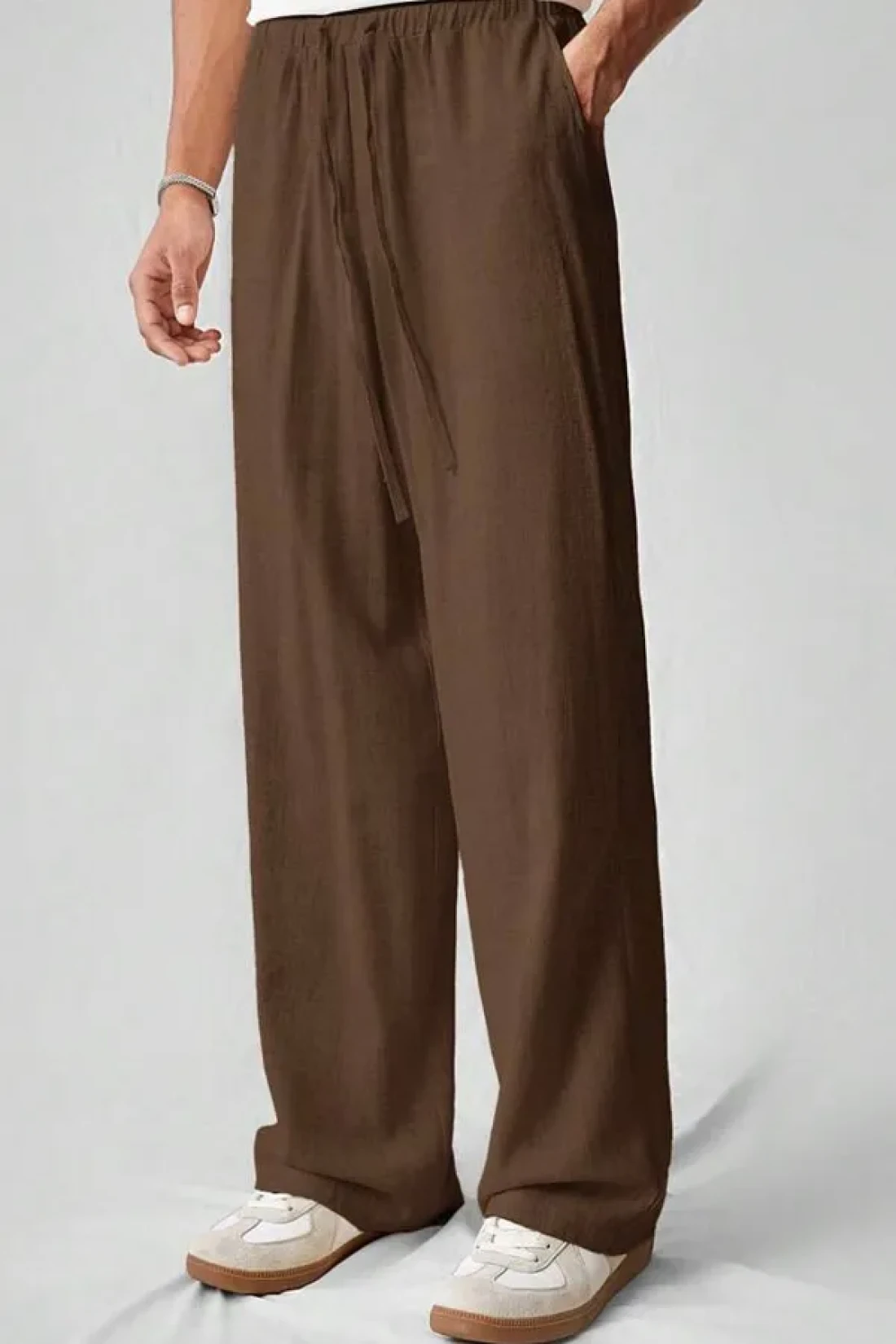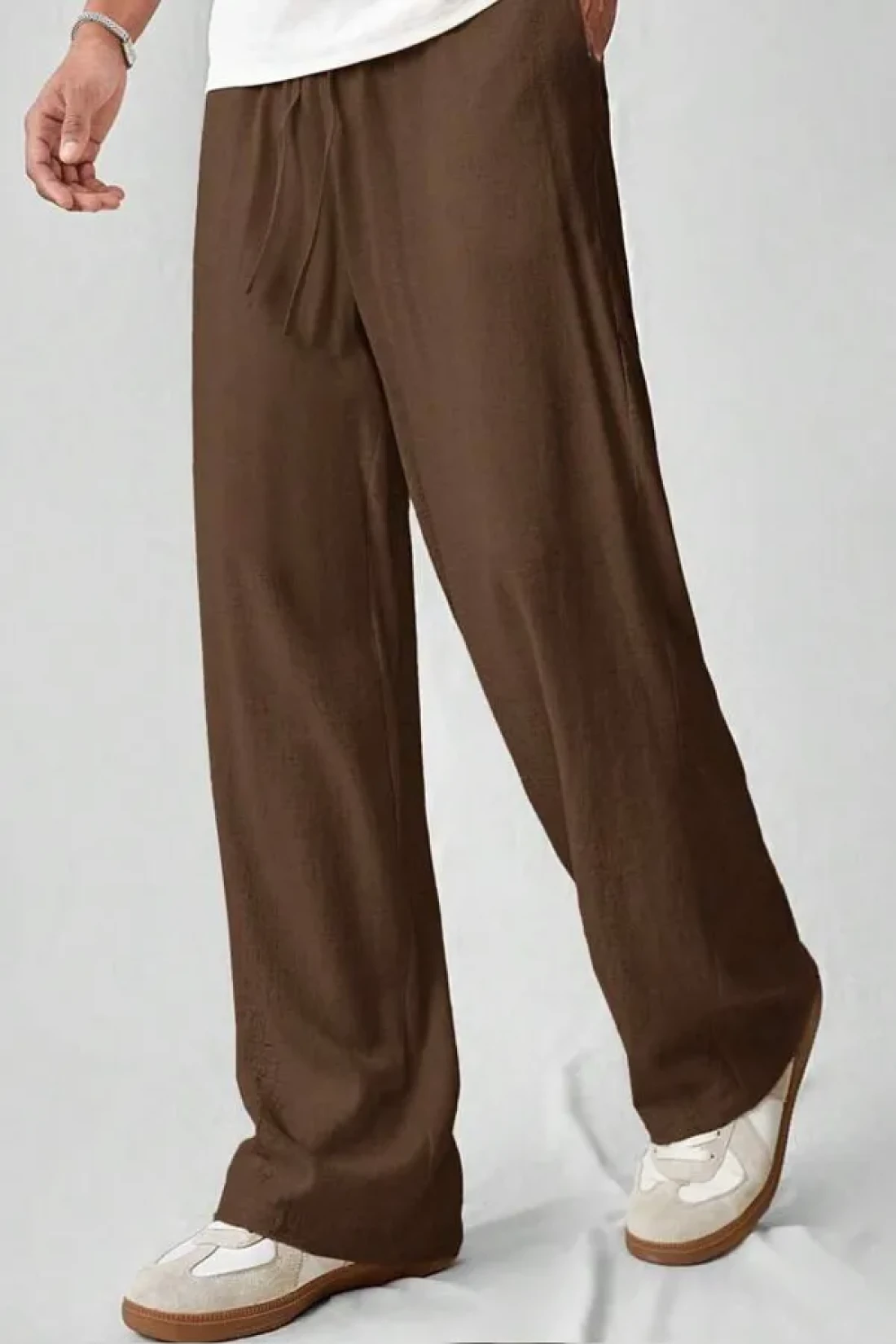 North London بنطال رجالي واسع الساق من مزيج الكتان مقاس كبير