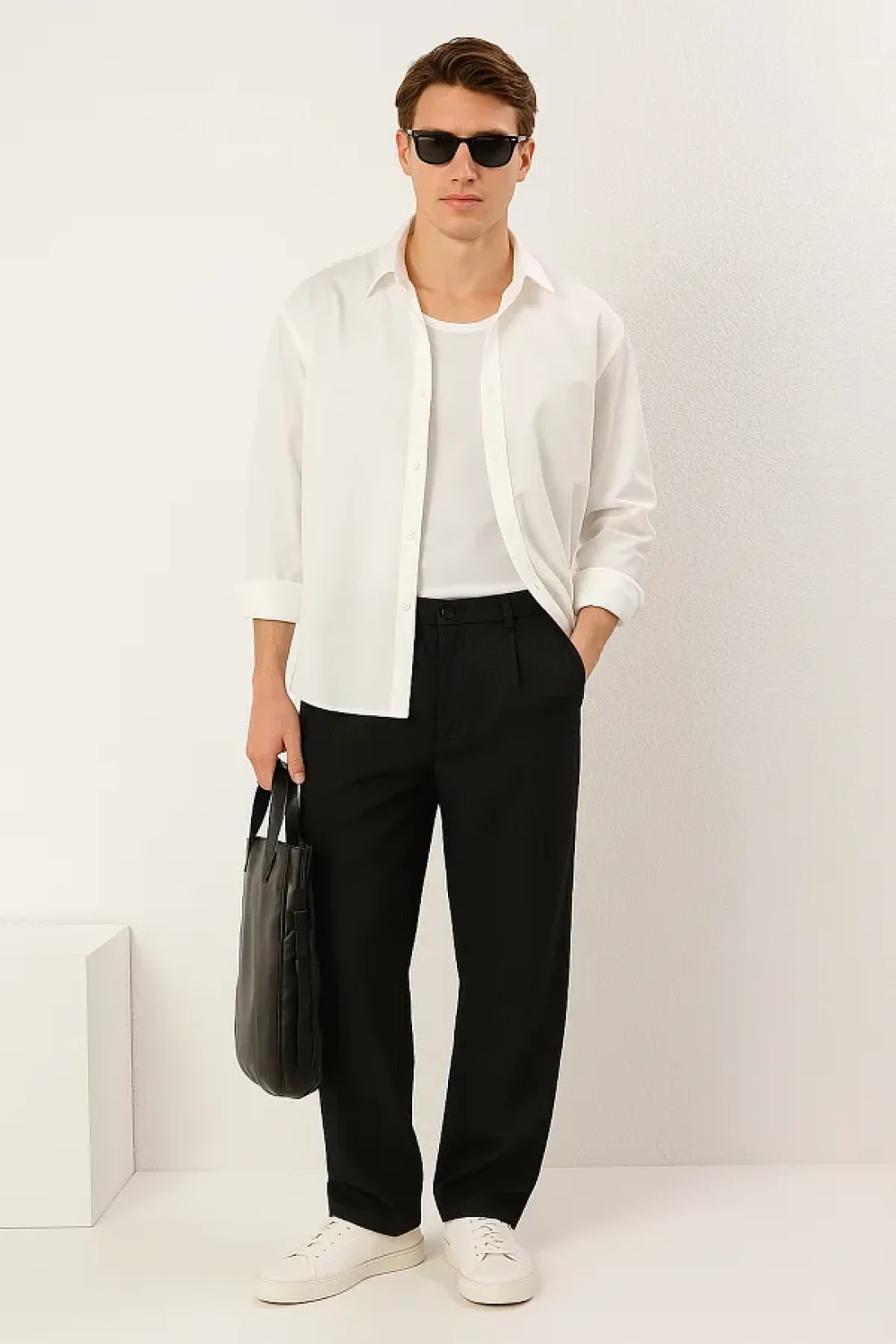 Collection بنطلون أسود واسع الساق من القماش الفضفاض TMNSS23PL00039