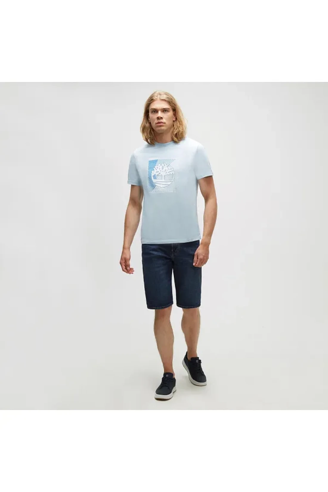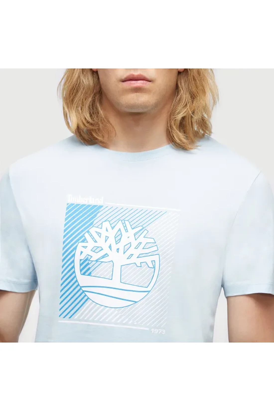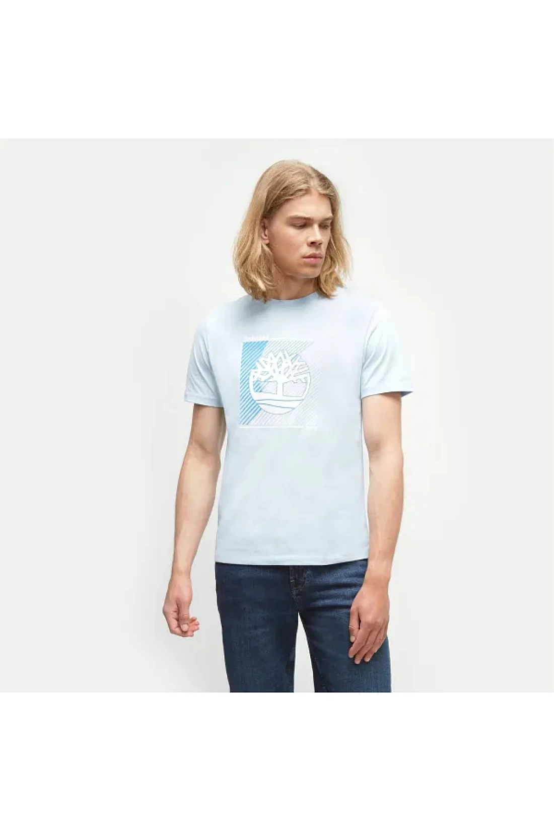 Timberland تي شيرت رجالي عادي برقبة دائرية باللون الأزرق بشعار الشجرة