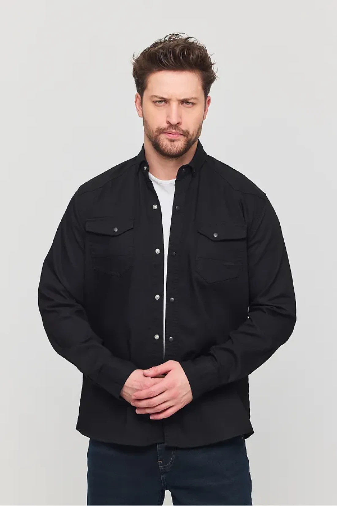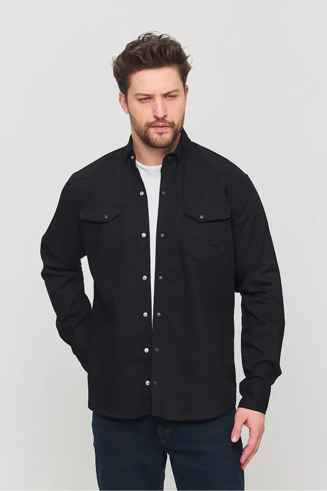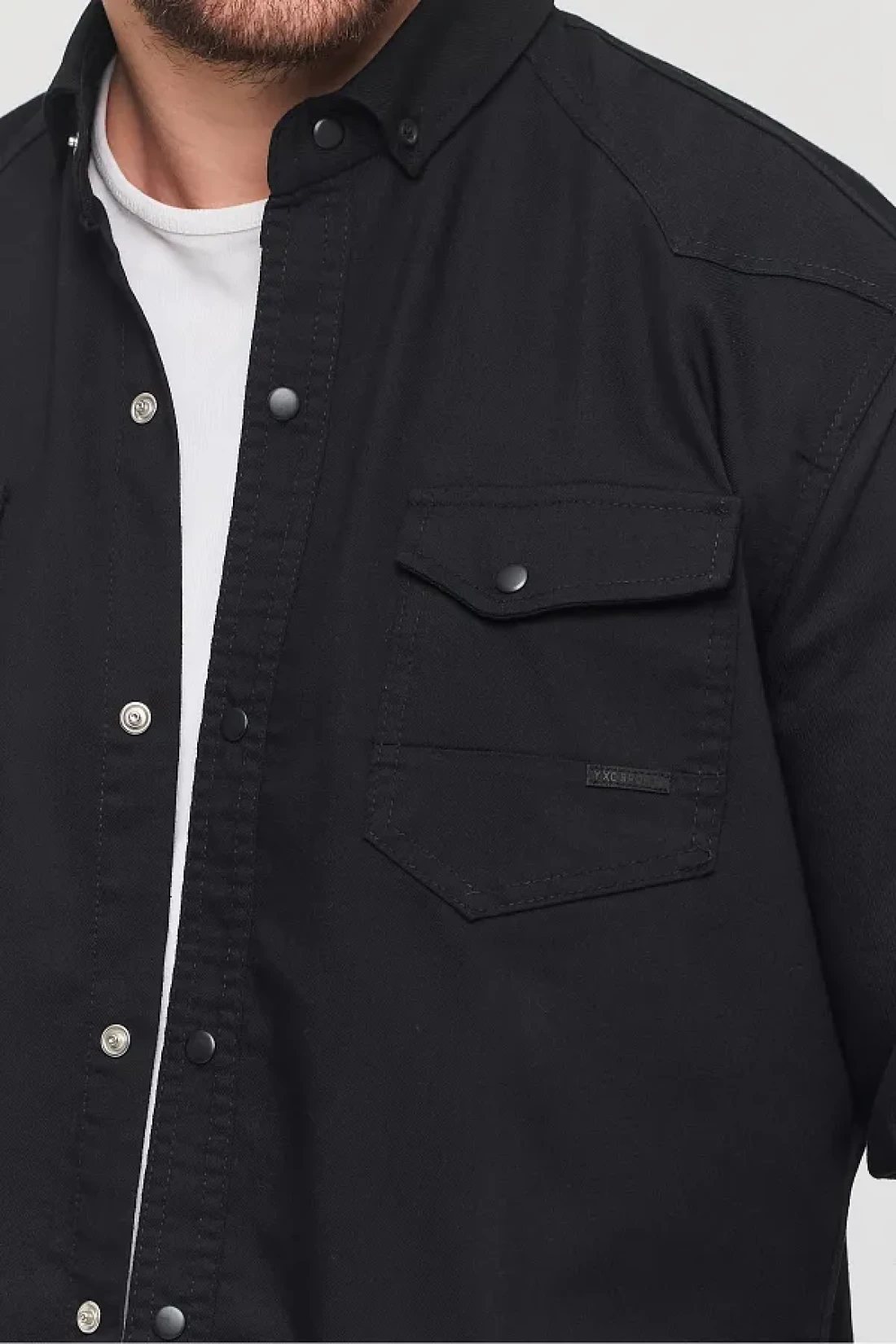 YXC قميص جينز قطني رجالي أسود بقصة ضيقة