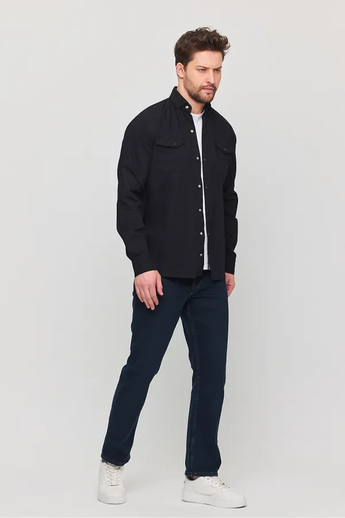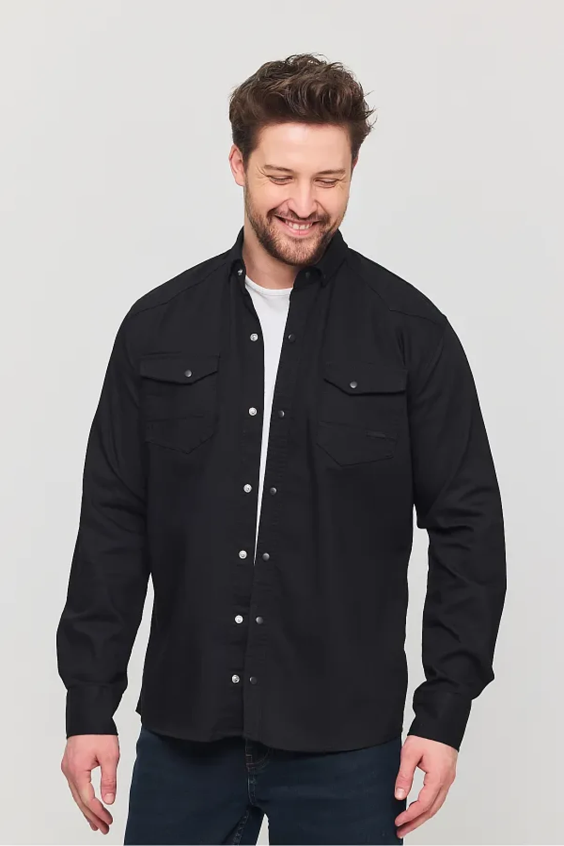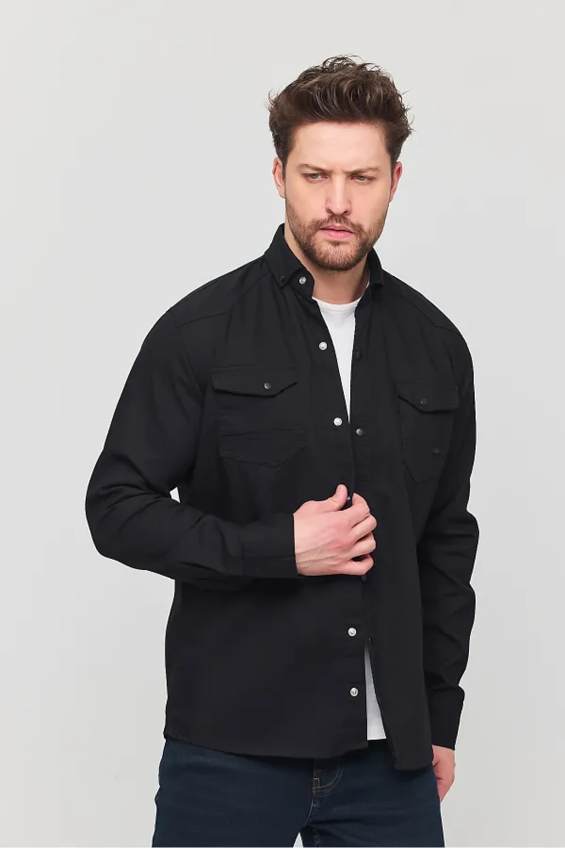 YXC قميص جينز قطني رجالي أسود بقصة ضيقة