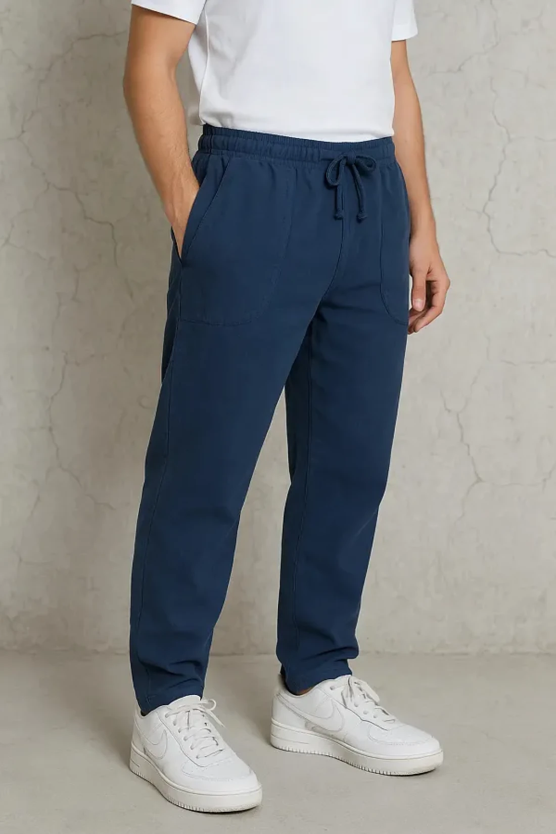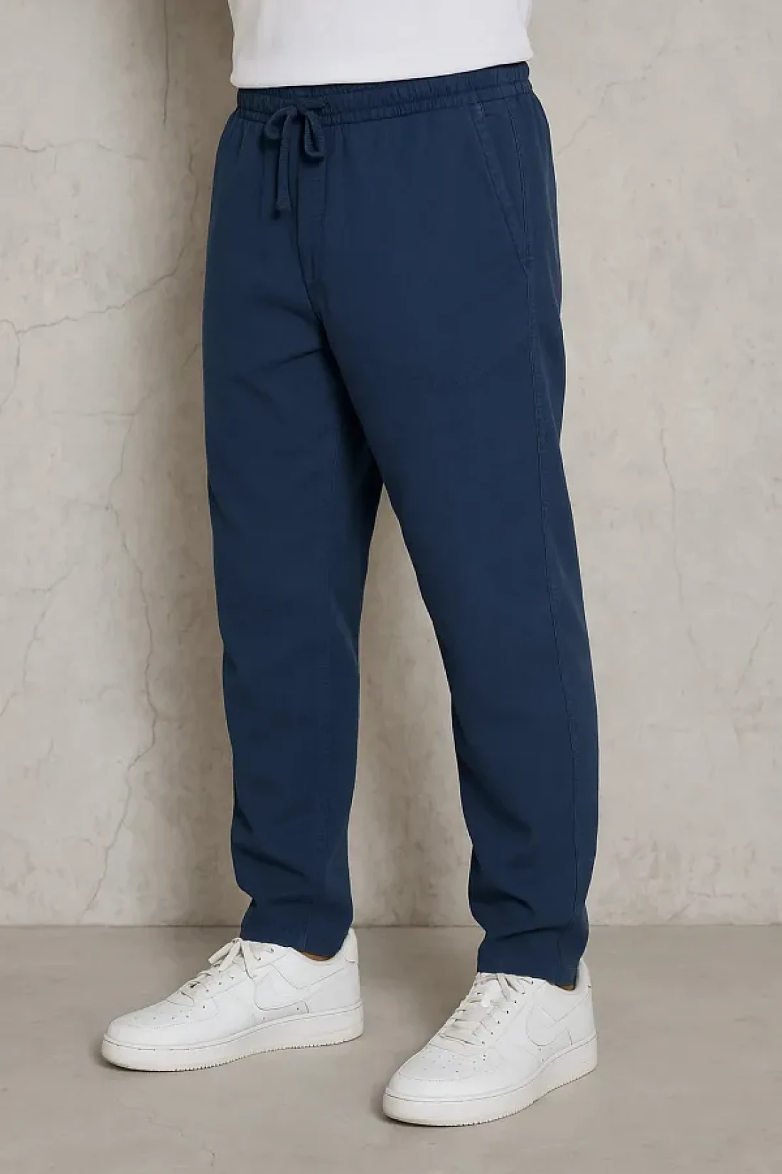 firststops بنطال رجالي من الكتان باللون الأزرق الداكن بقصة فضفاضة ومريح