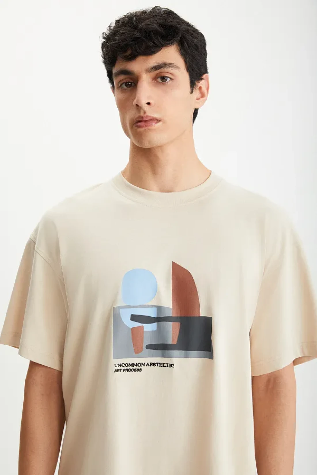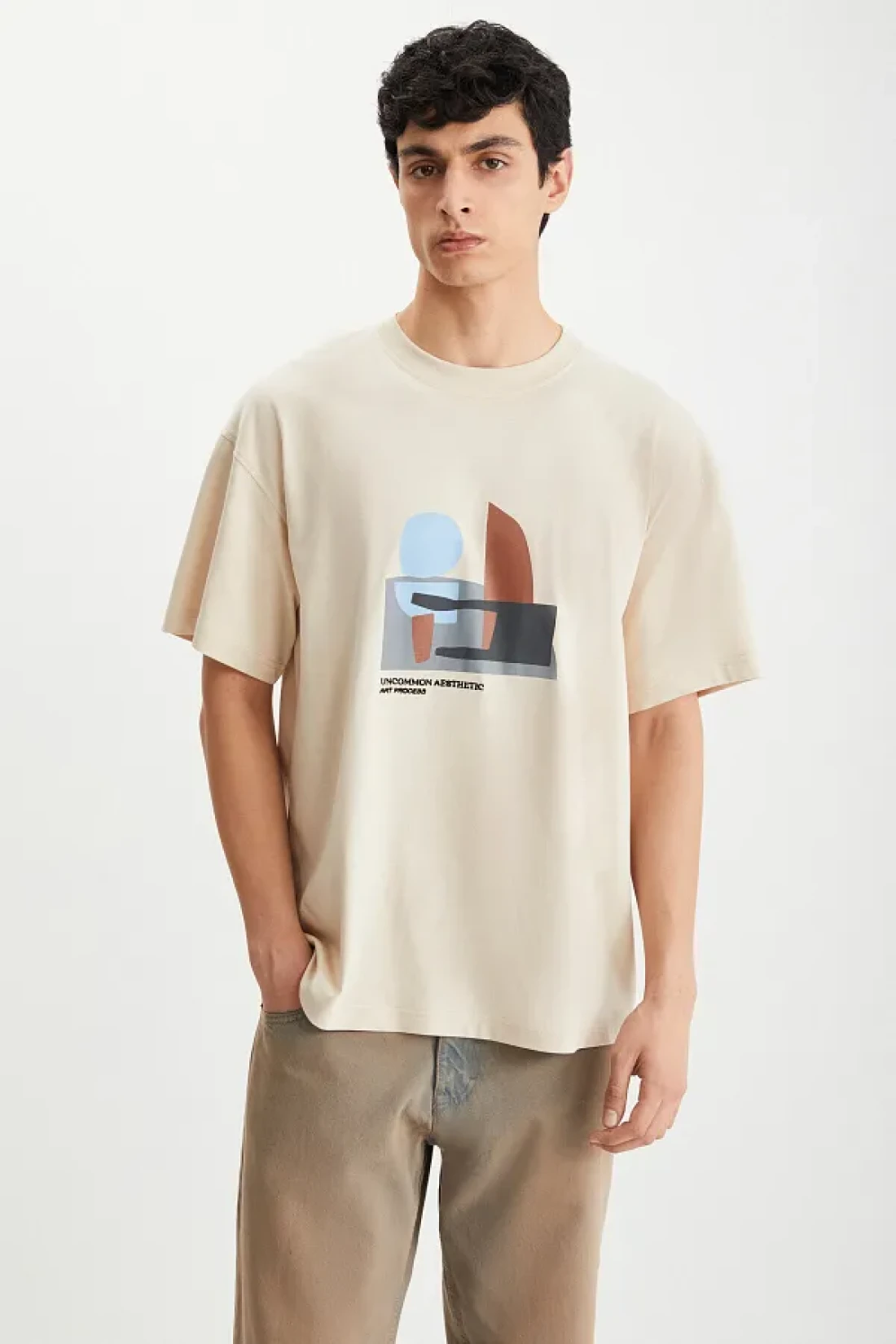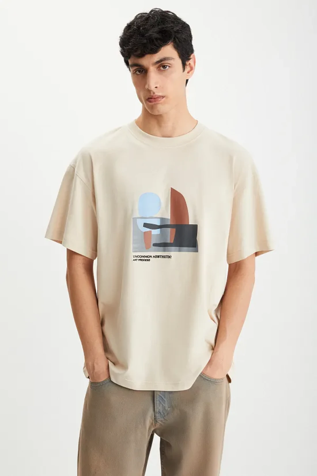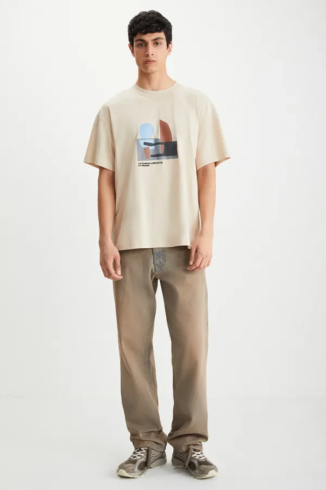 GRIMELANGE تي شيرت Lexoro رجالي مصنوع من القطن بنسبة 100% برقبة دائرية ومطبوع باللون البيج