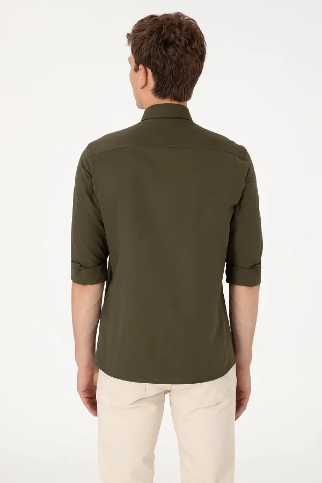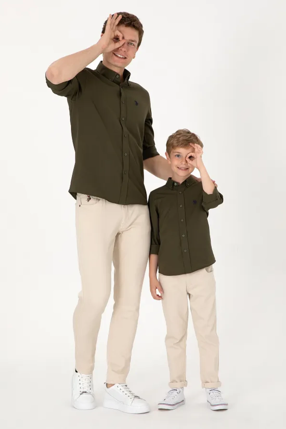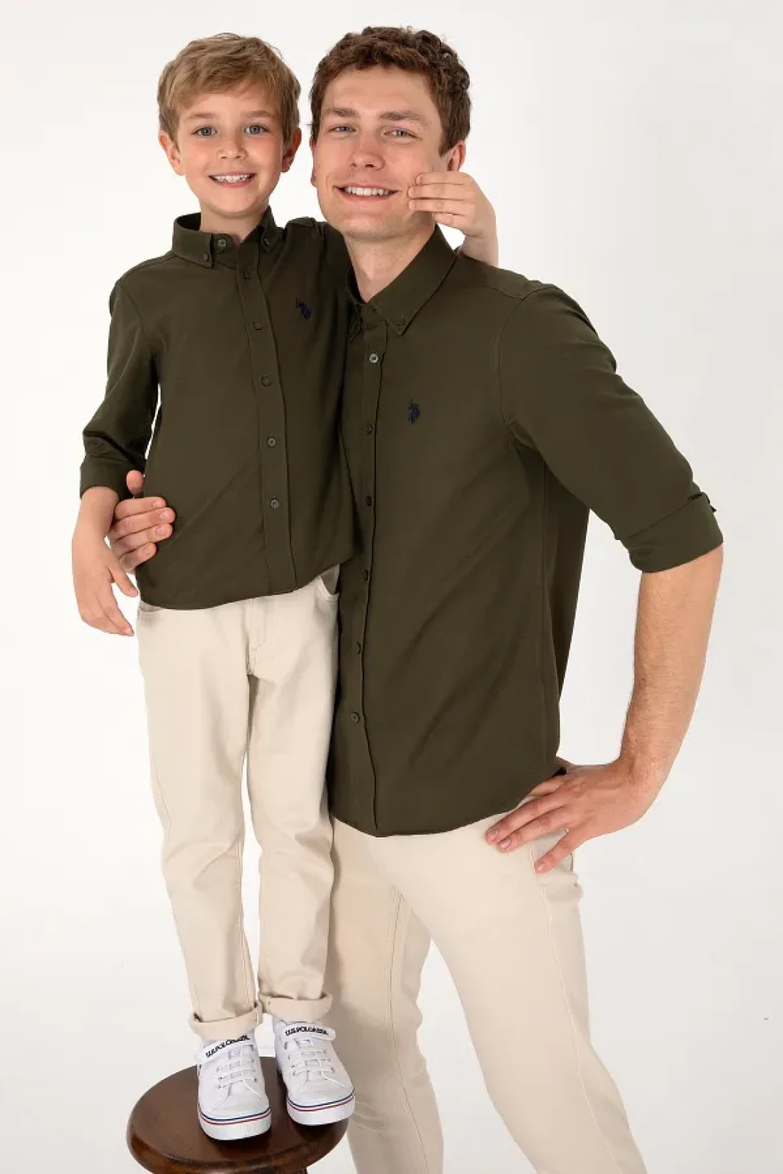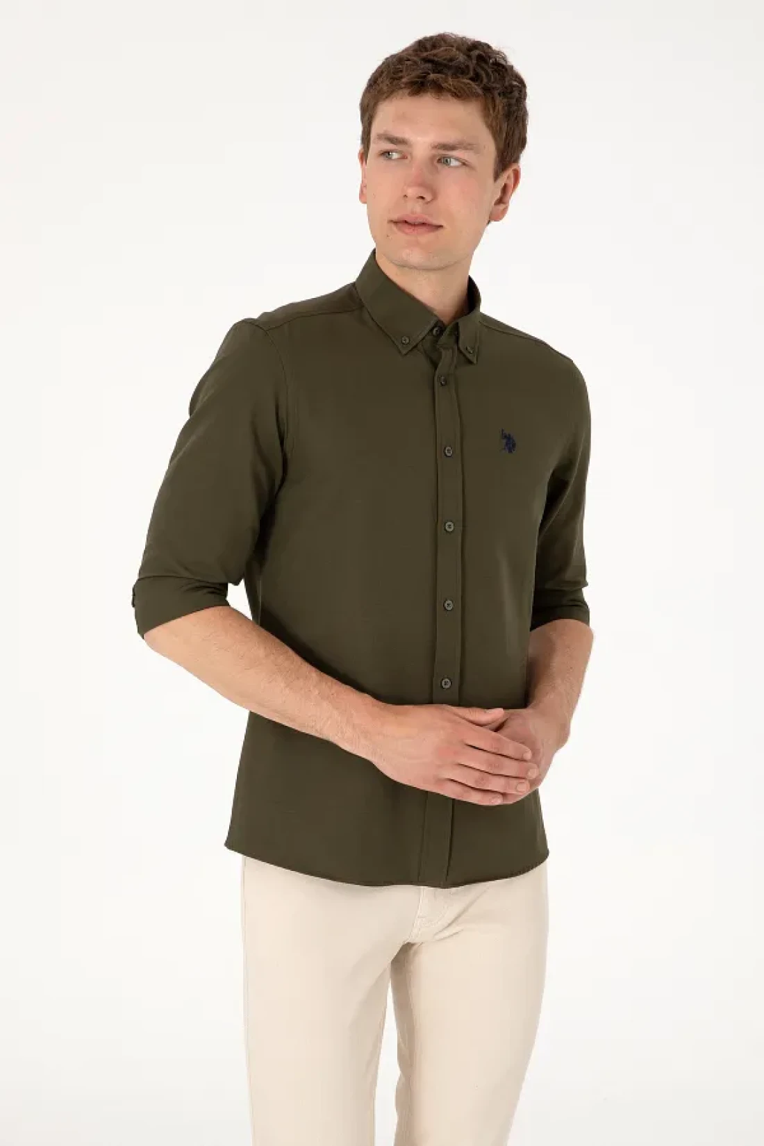 U.S. Polo Assn. قميص أساسي بأكمام طويلة كاكي داكن للرجال 50306338 -VR111