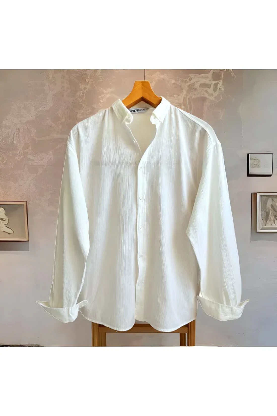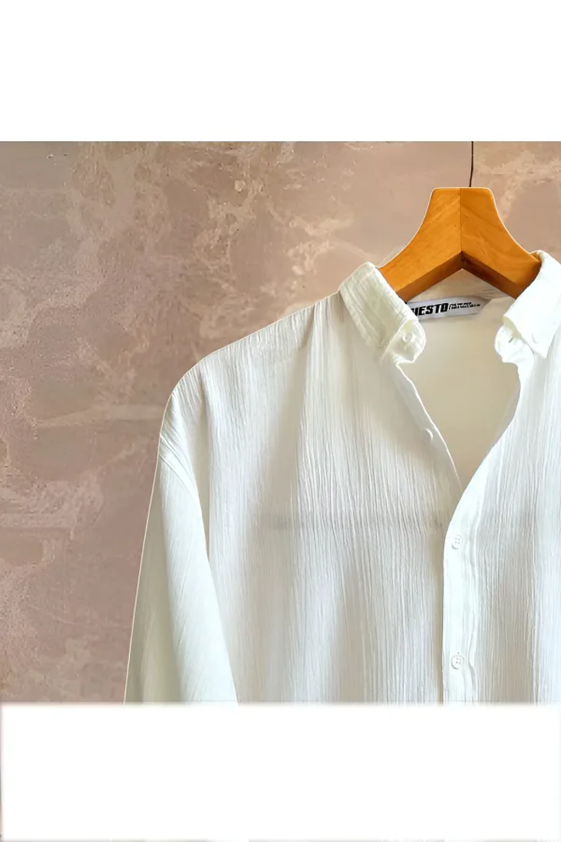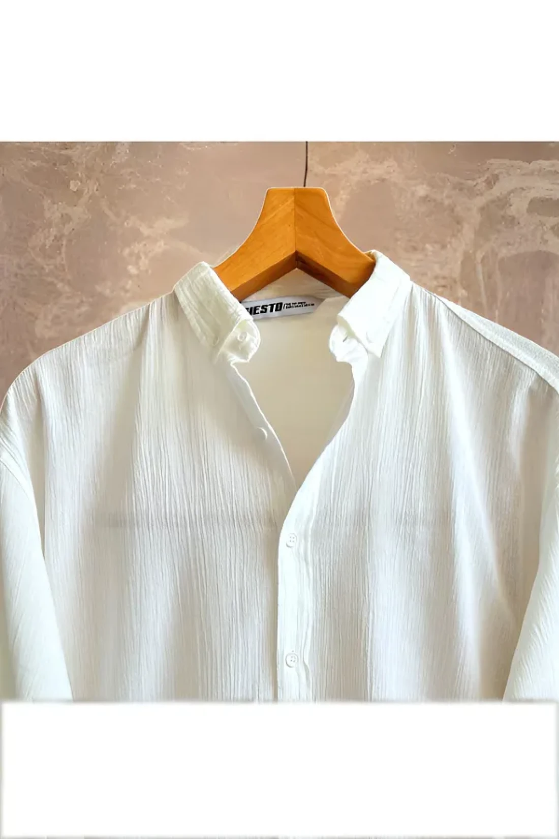 Hazhers قميص كتان كبير الحجم للرجال - كم طويل، ياقة القميص