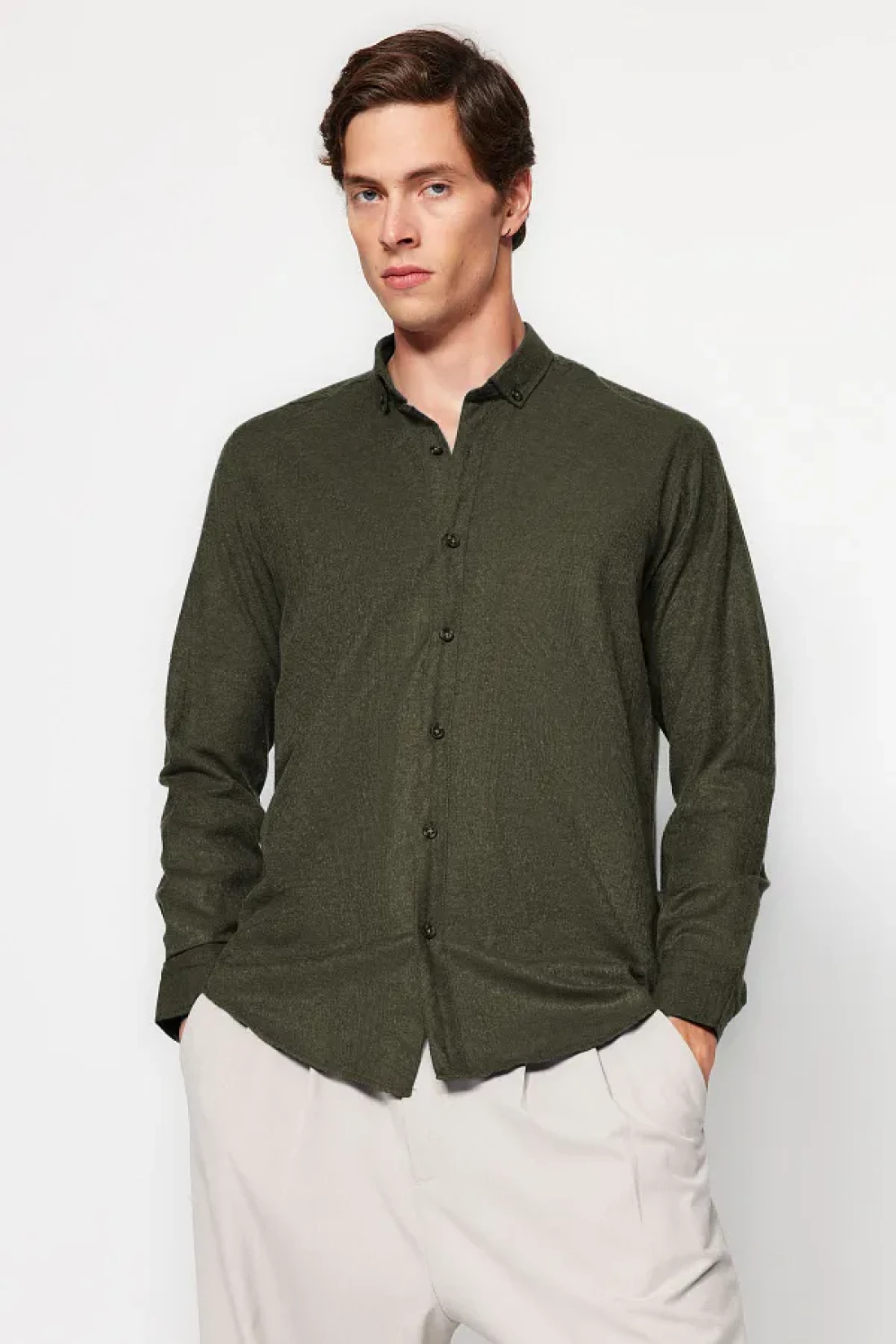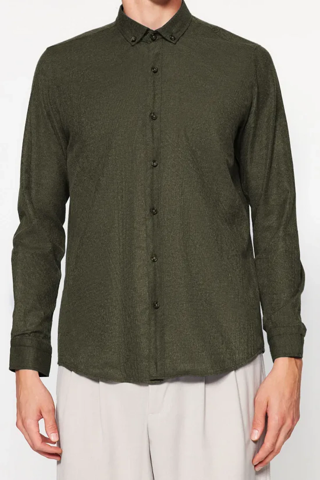 Collection قميص شتوي أخضر بقصة ضيقة - ياقة بأزرار TMNAW20GO0094