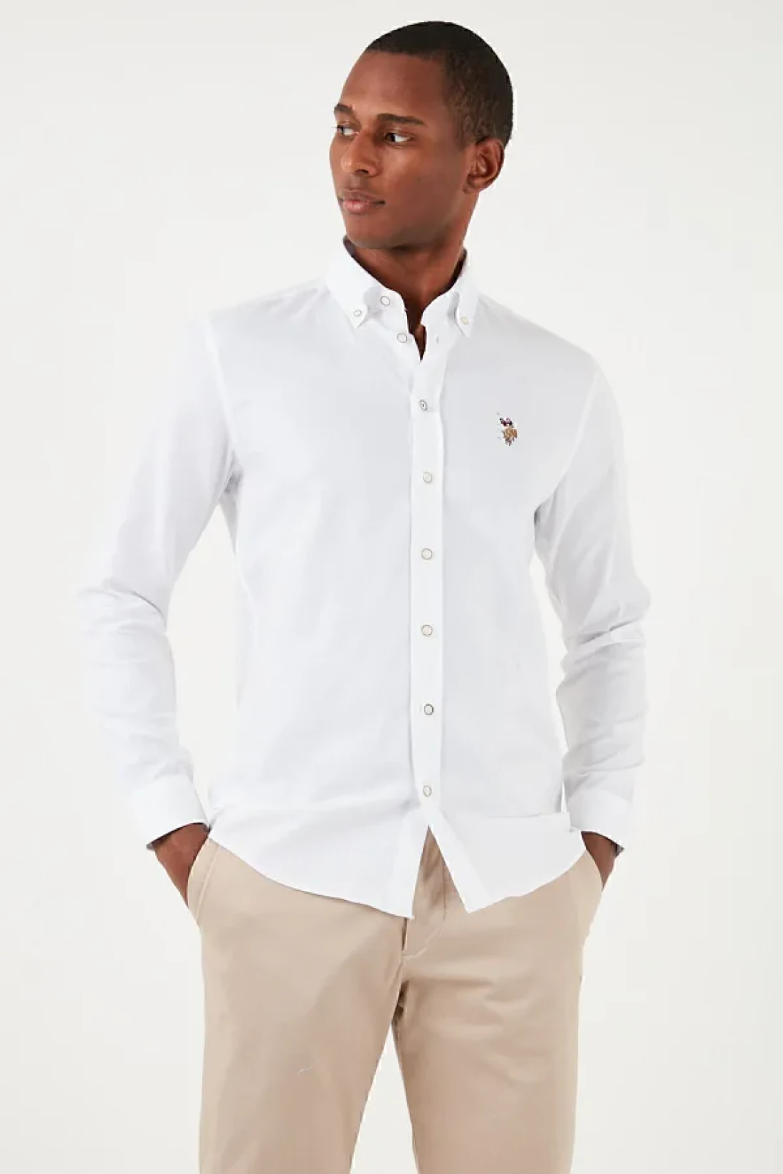 U.S. Polo Assn. قميص رجالي من U.S. Polo ذو ياقة بأزرار 100% قطن بقصة ضيقة G081SZ0041826727