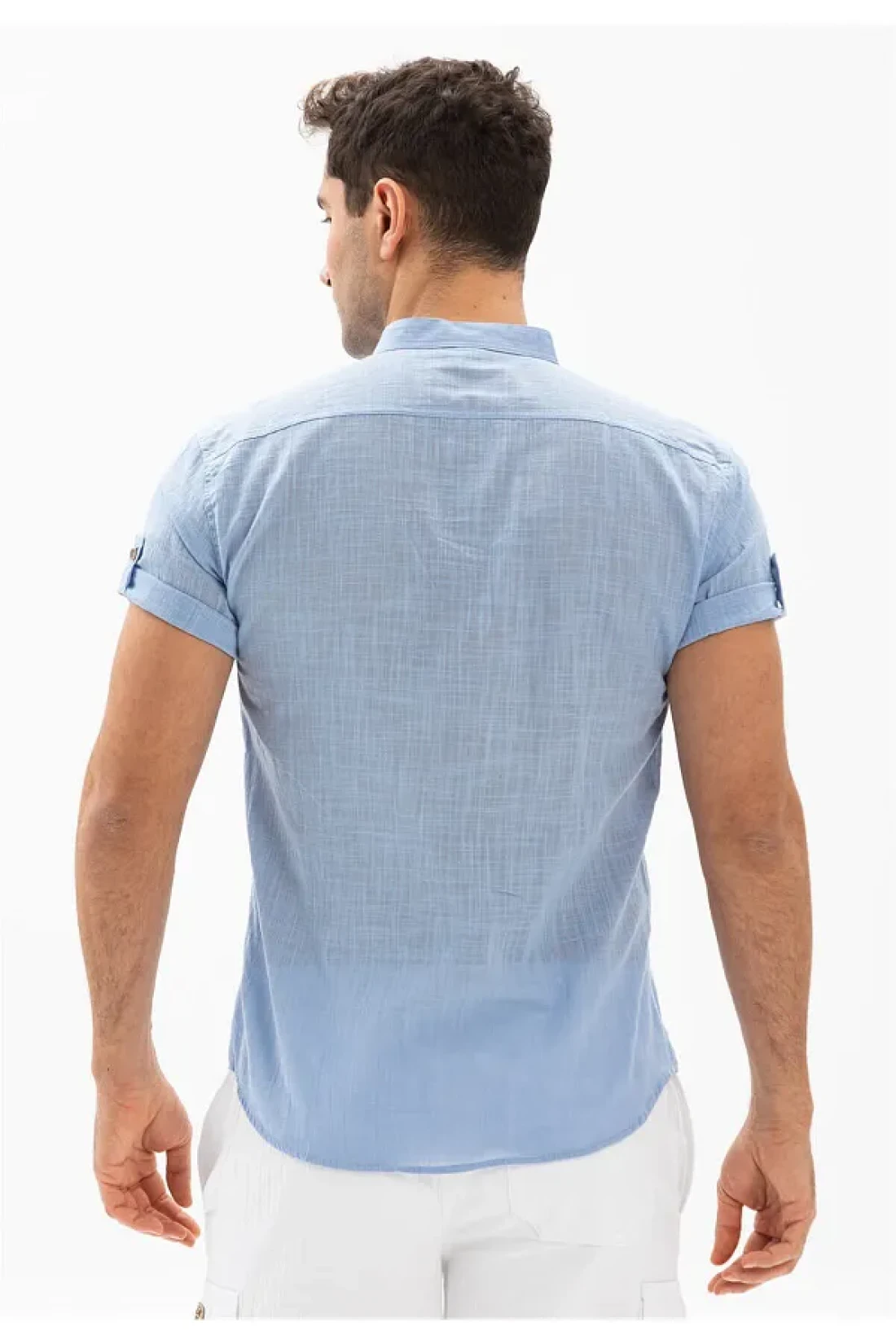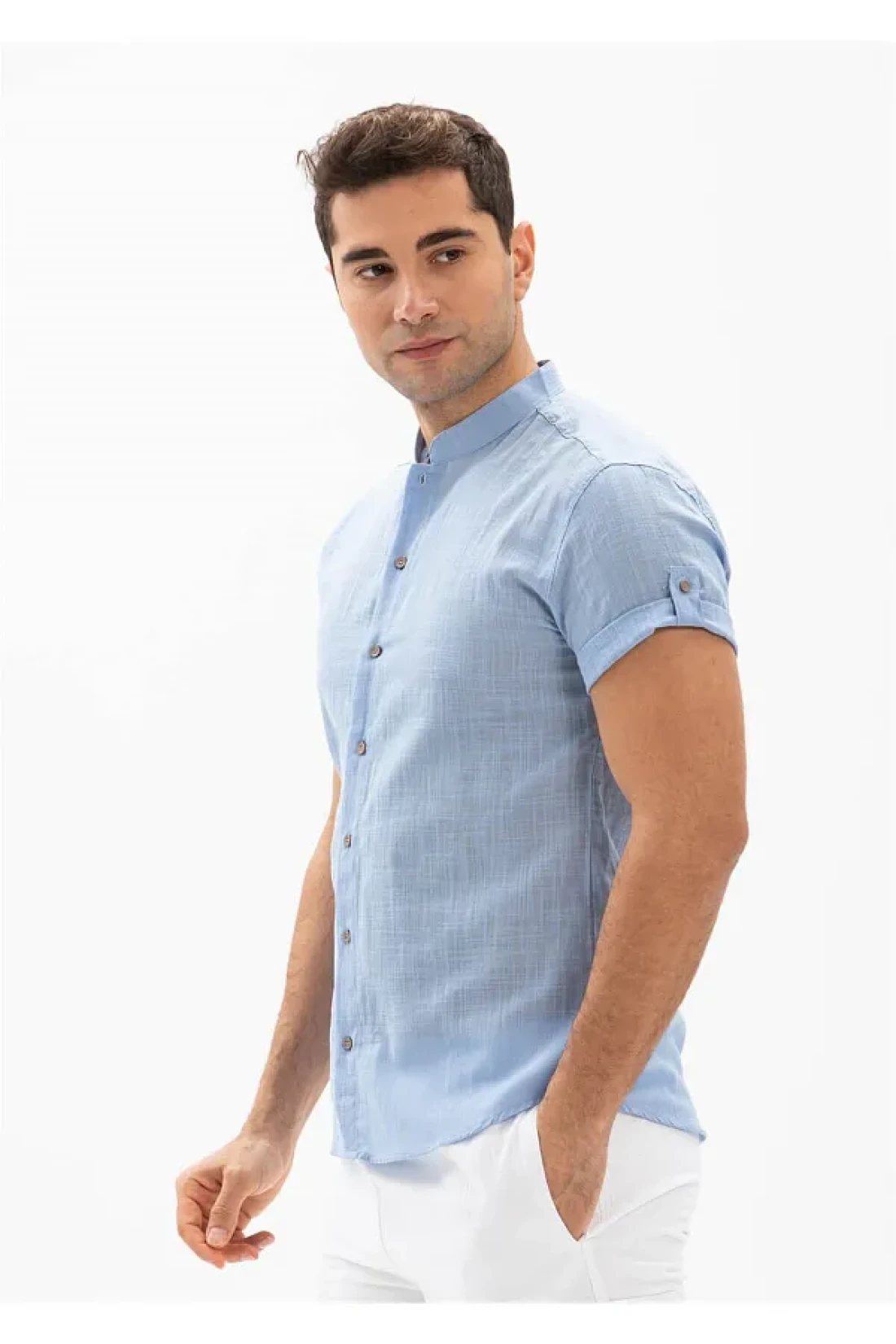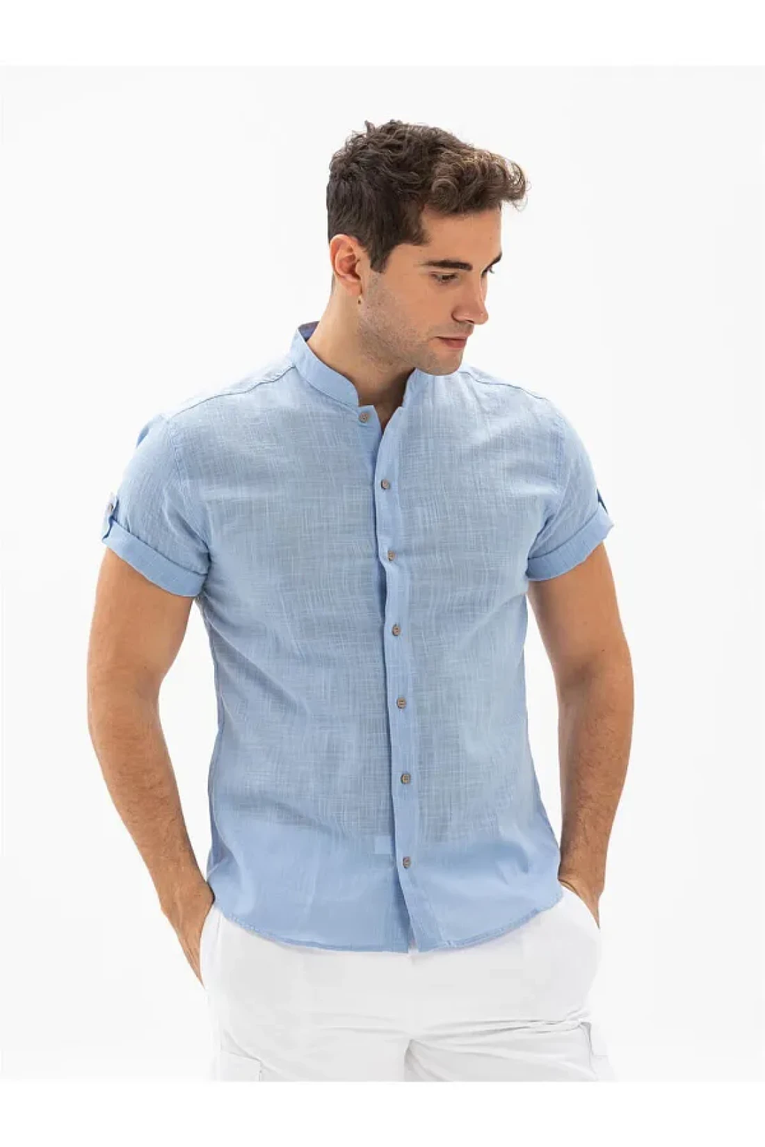 Eliş Şile Bezi قميص رجالي صيفي قصير الأكمام من القطن سلوب بودروم أزرق فاتح 3074