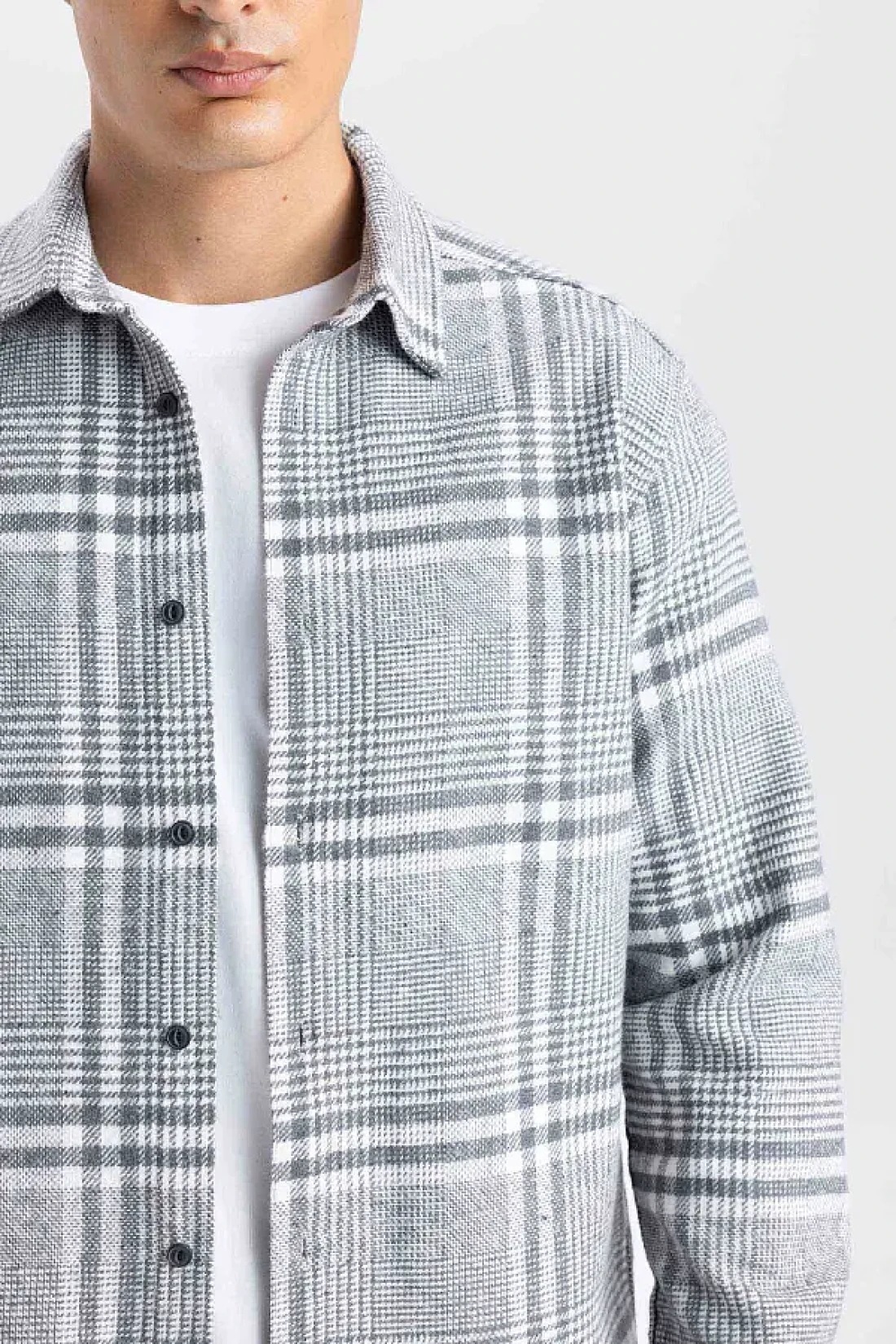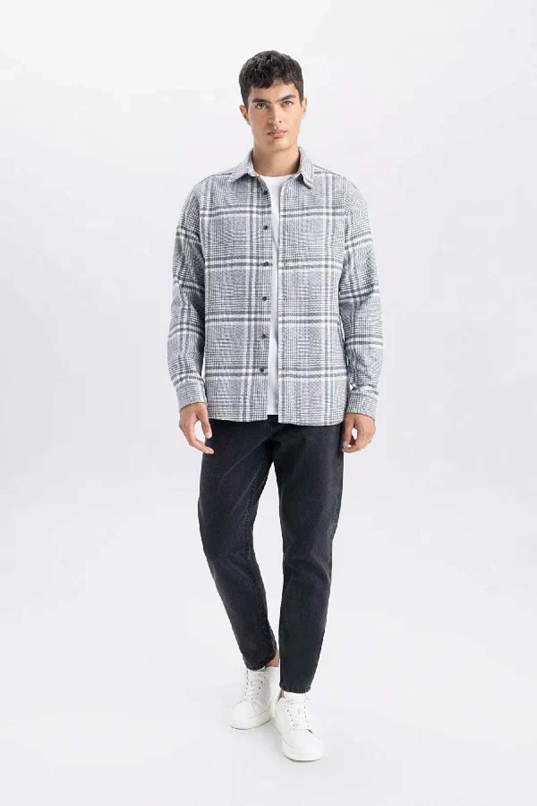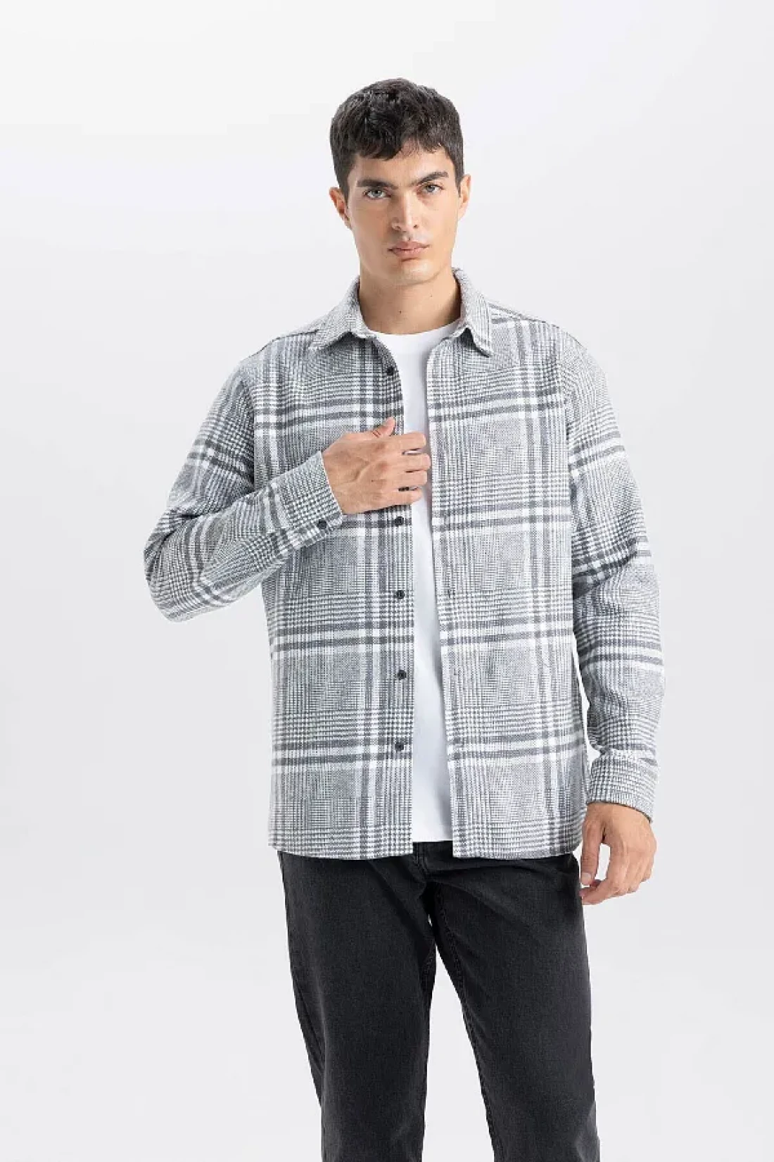 Defacto قميص من الفلانيل ذو قصة عادية وأكمام طويلة E0983ax24wn