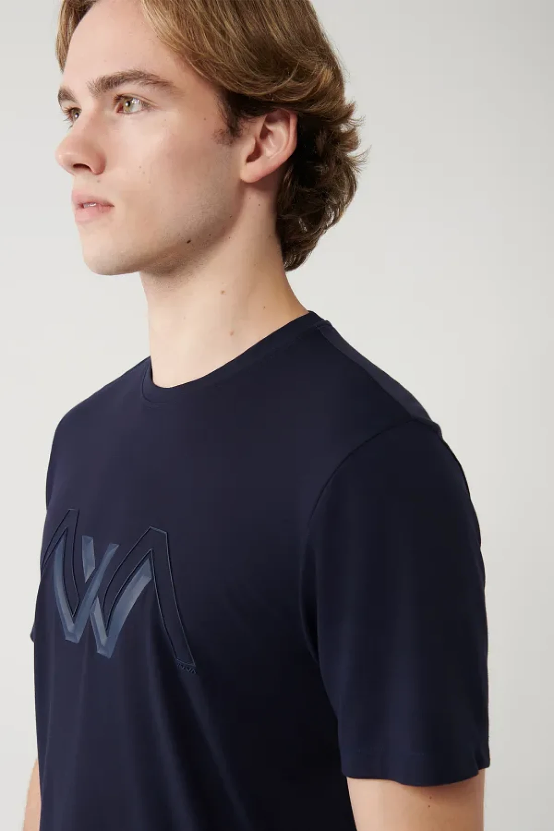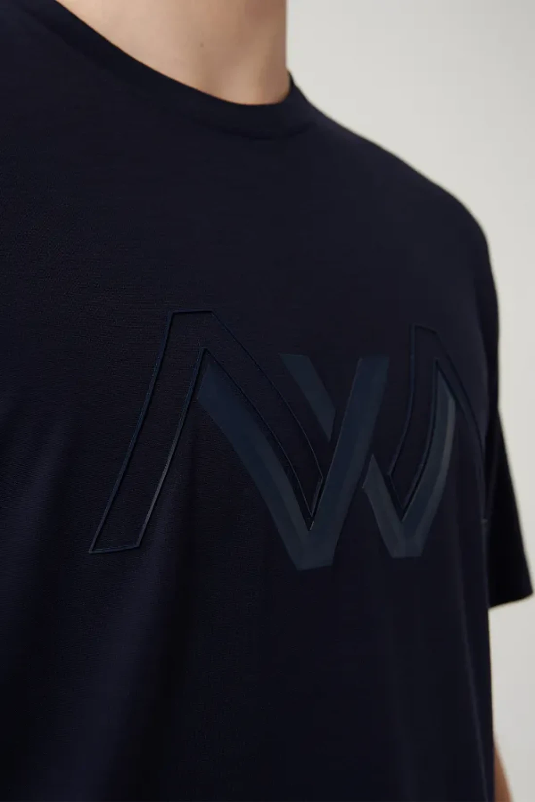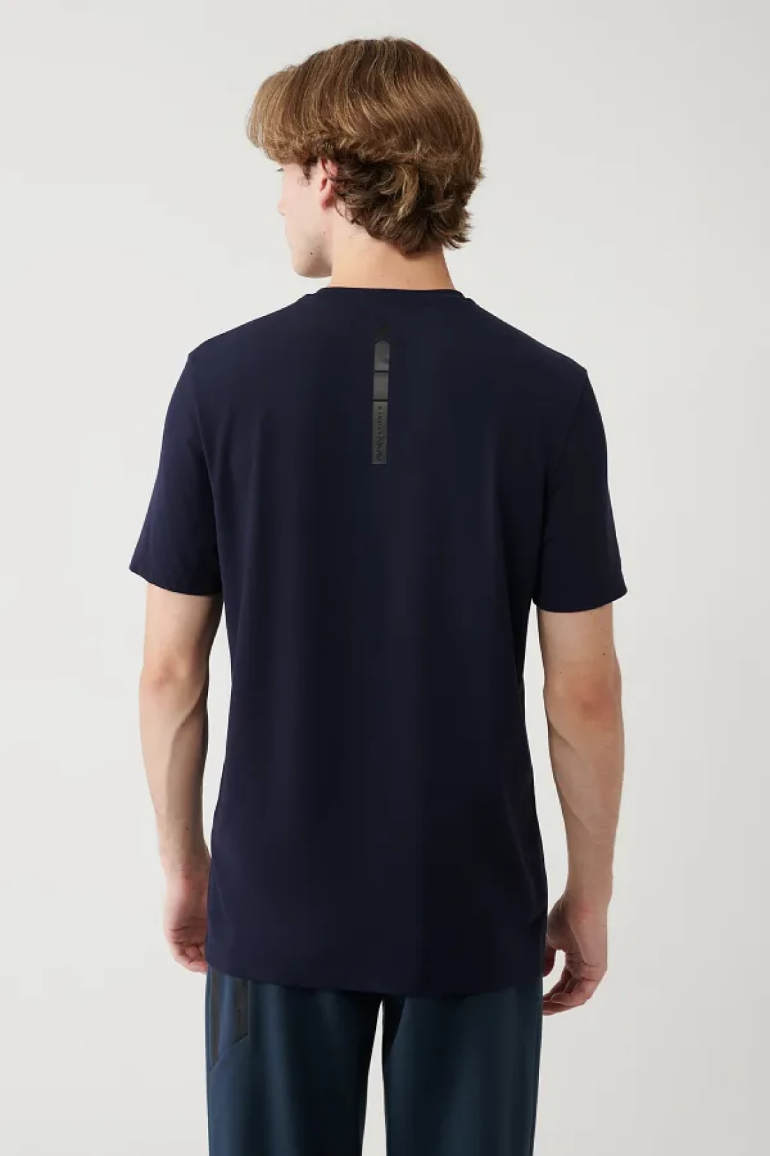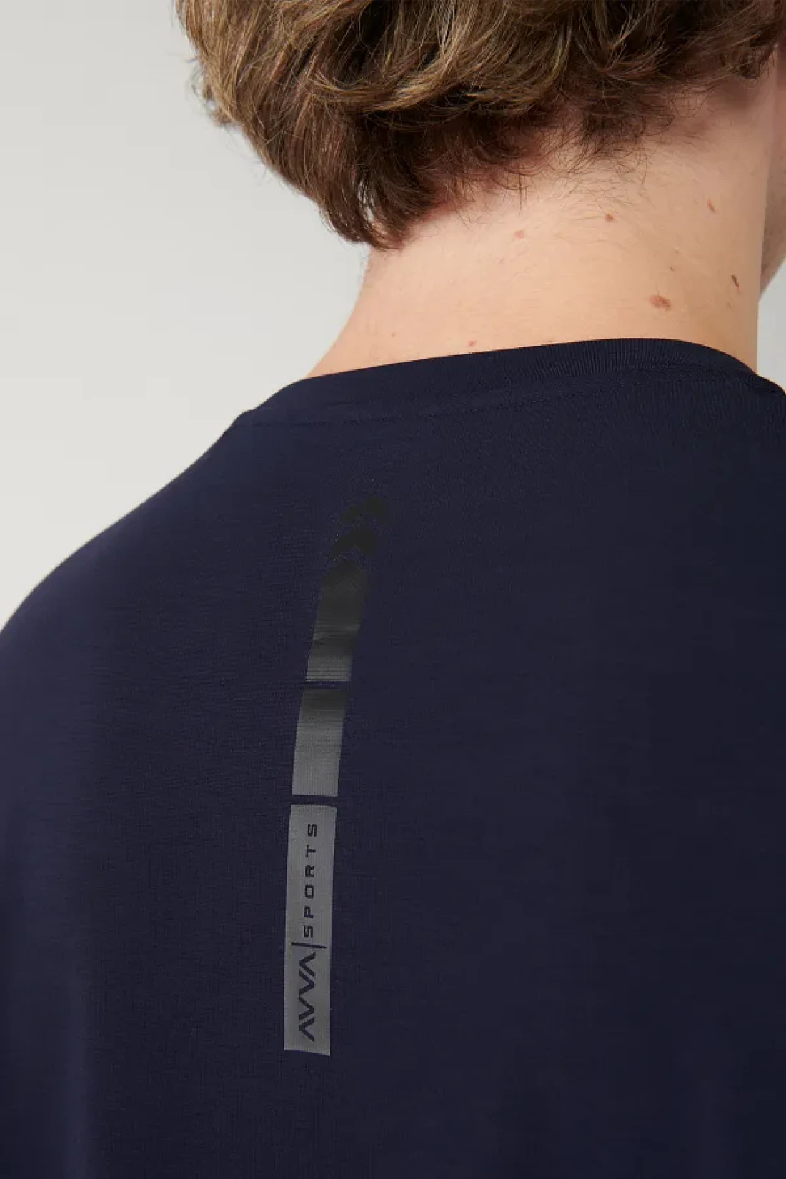 Avva تي شيرت رجالي باللون الأزرق الداكن برقبة دائرية وطبعة ناعمة الملمس A41y1037