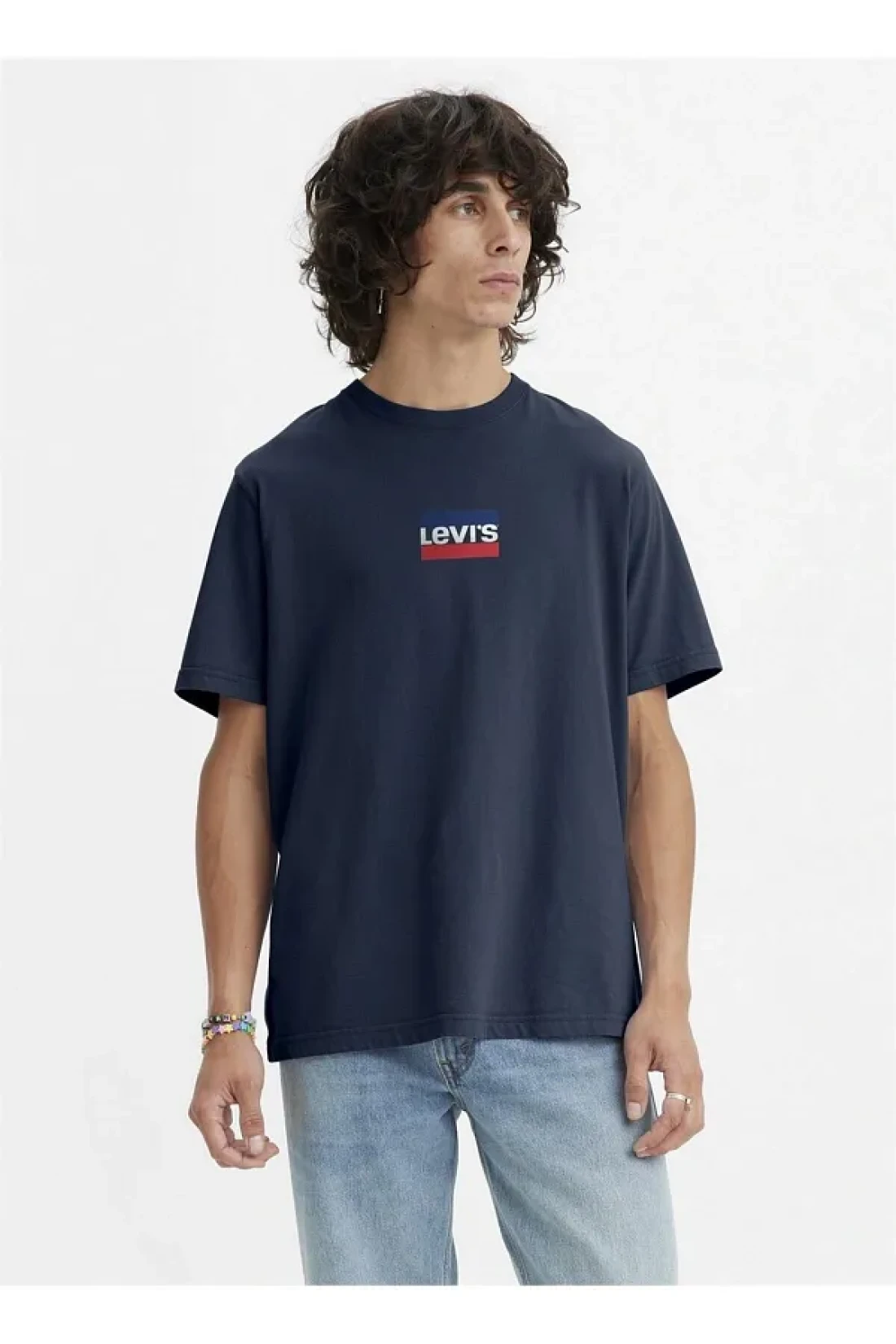 Levi's تي شيرت رجالي باللون الأزرق الداكن - 100% قطن، رقبة دائرية، مقاس عادي
