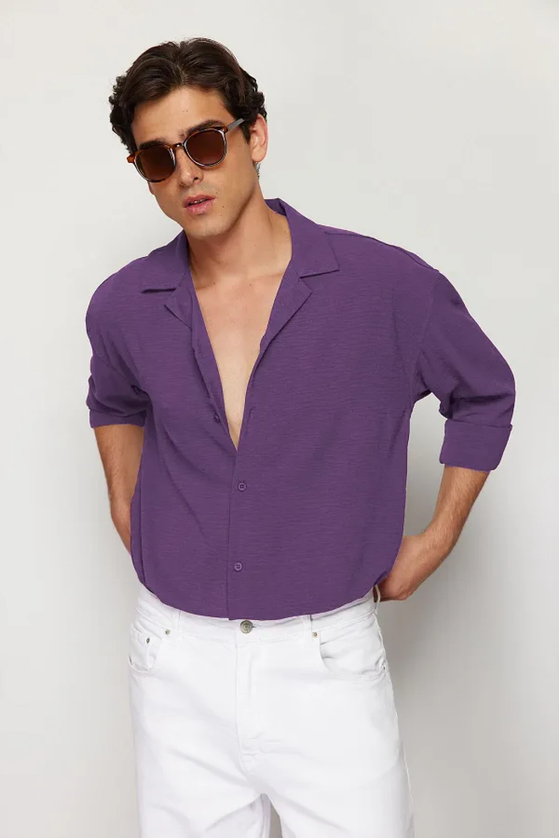 Collection قميص صيفي كبير الحجم من الكتان ذو طية صدر السترة - بلوم TMNSS23GO00053