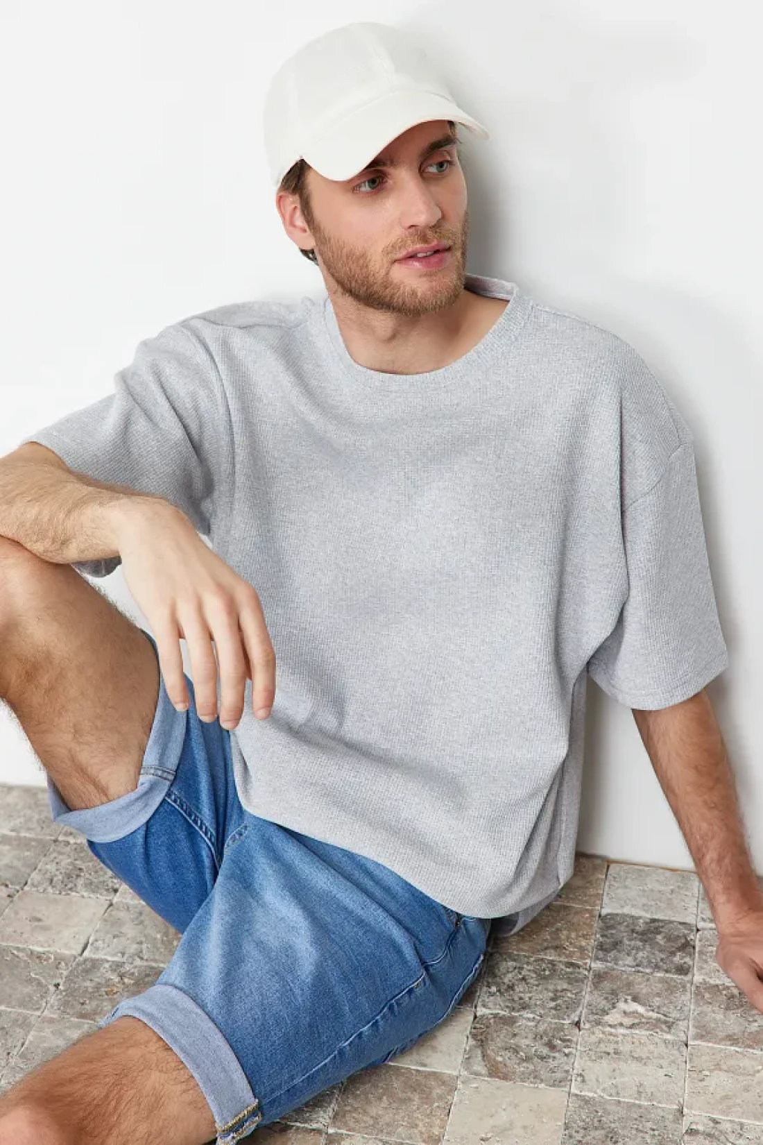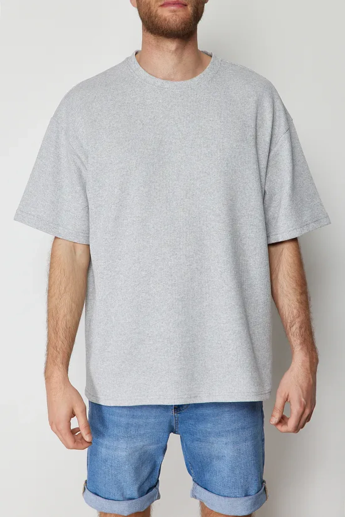 Collection تي شيرت رمادي كبير الحجم بأكمام قصيرة - TMNSS22TS00049
