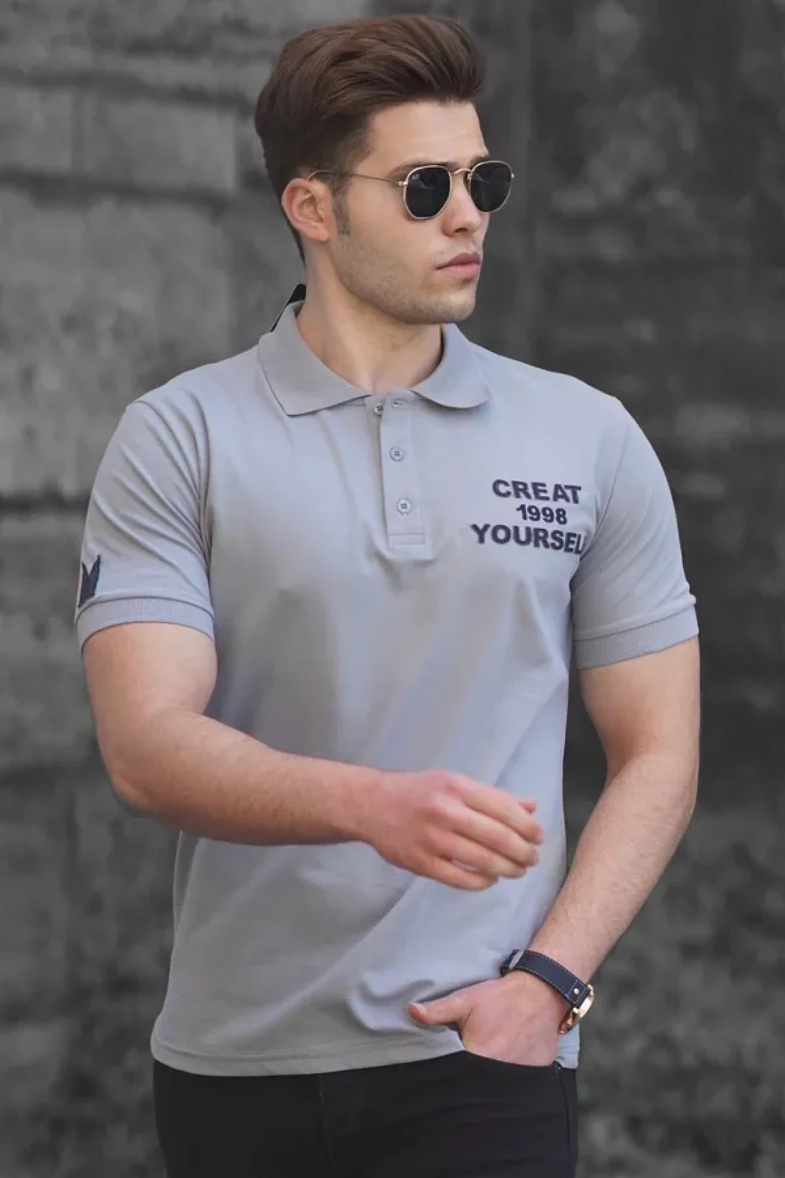 Madmext تي شيرت رمادي بياقة بولو للرجال 5247