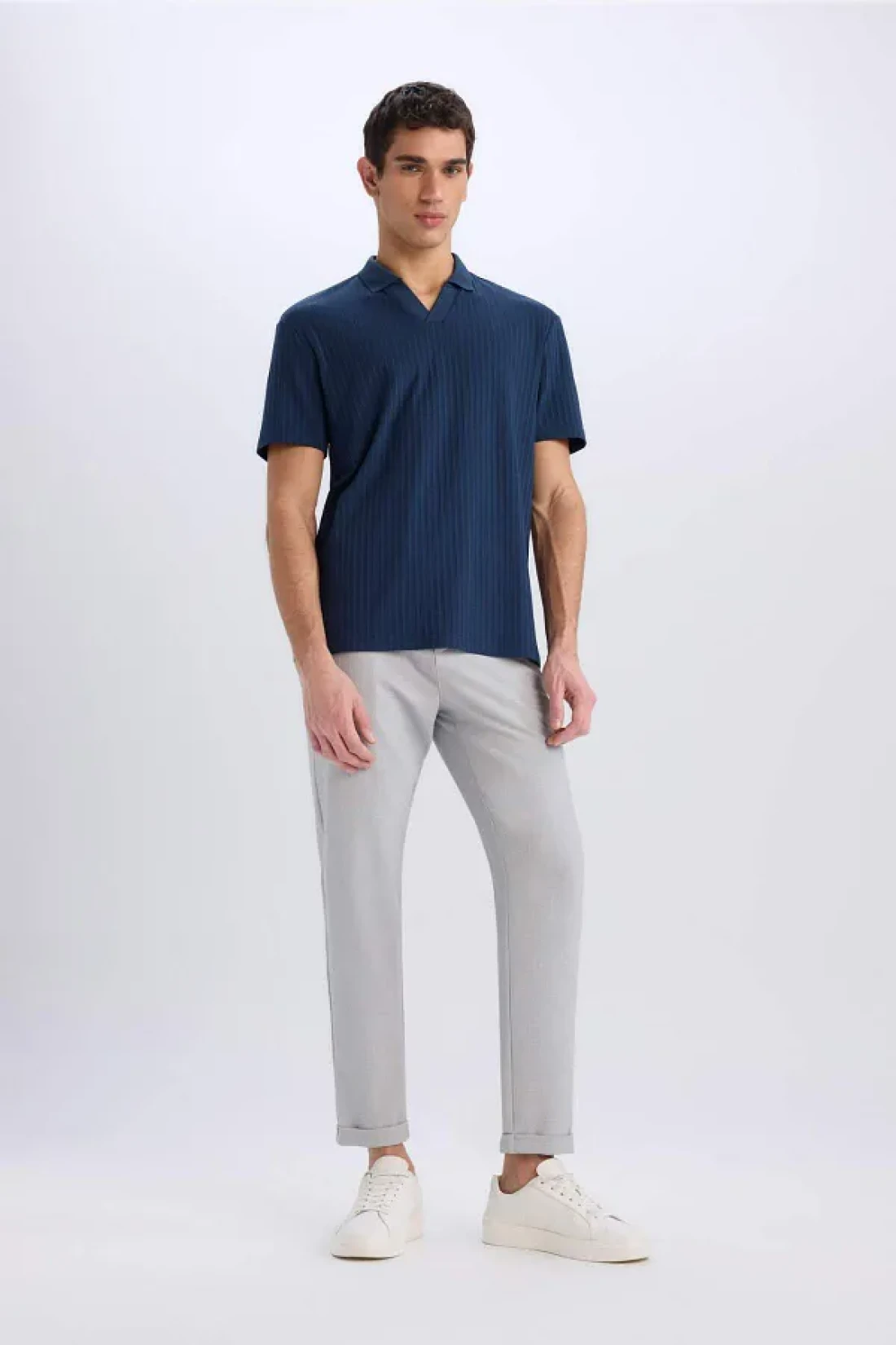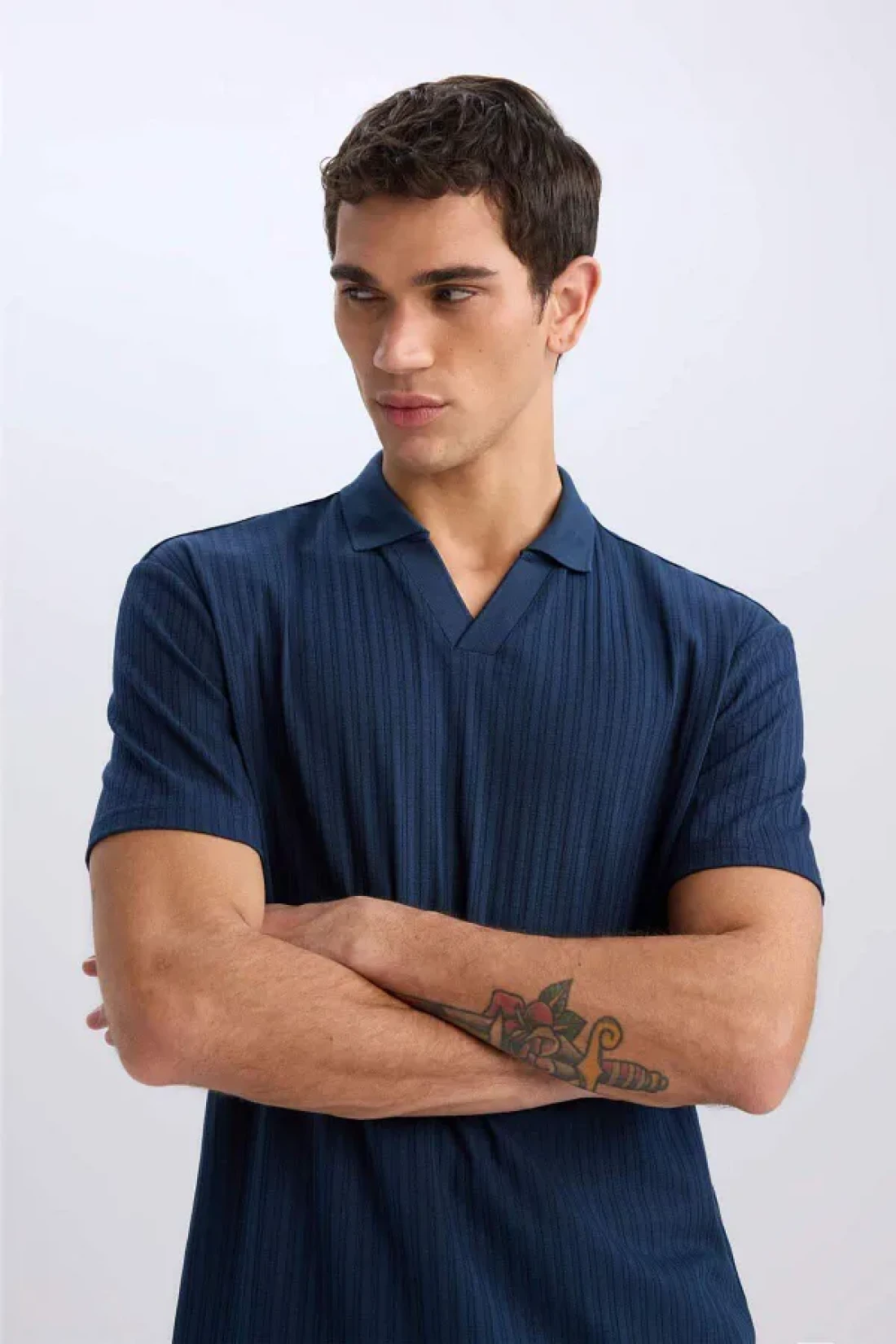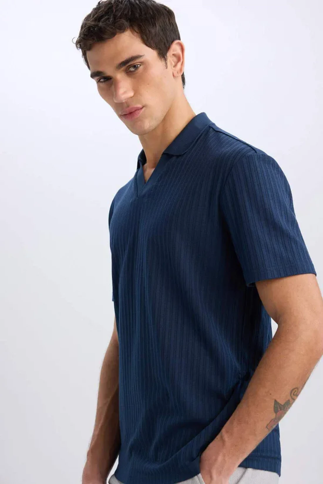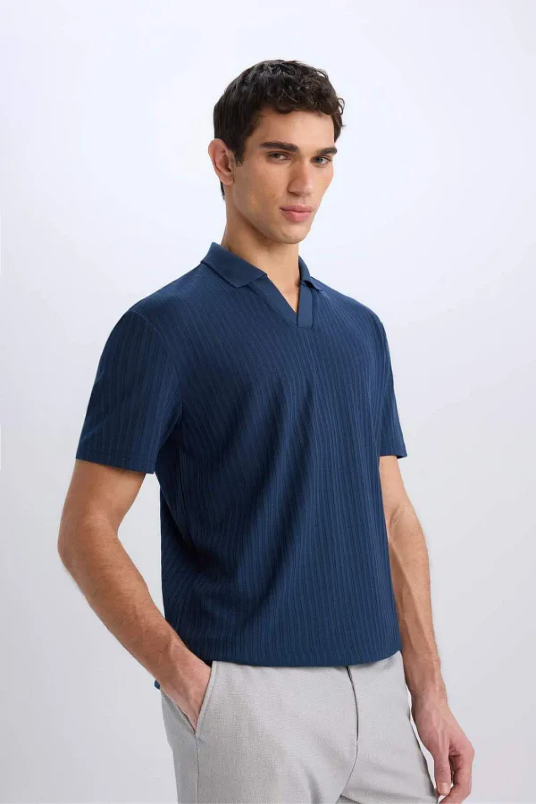 Defacto تي شيرت بياقة بولو وقصة عادية وأكمام قصيرة مجعدة E1207ax25sm