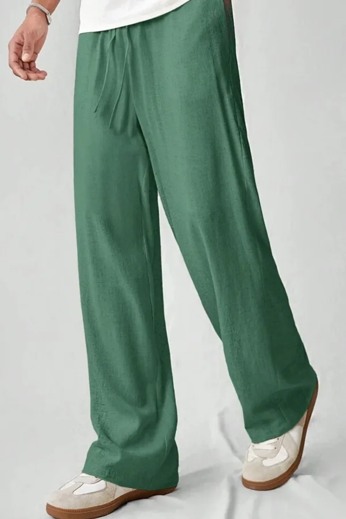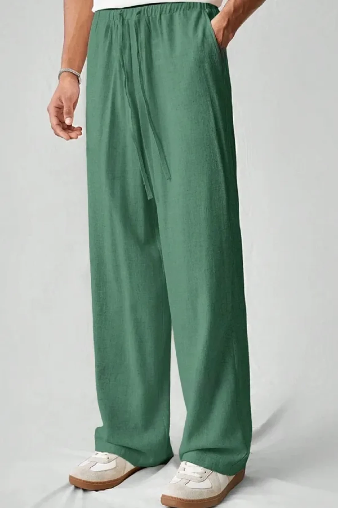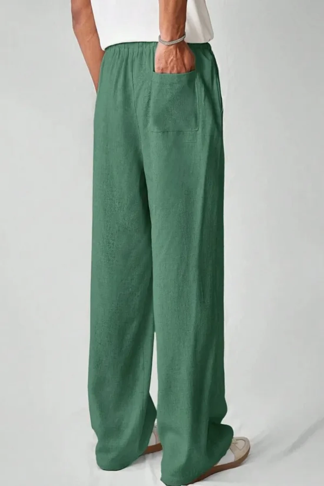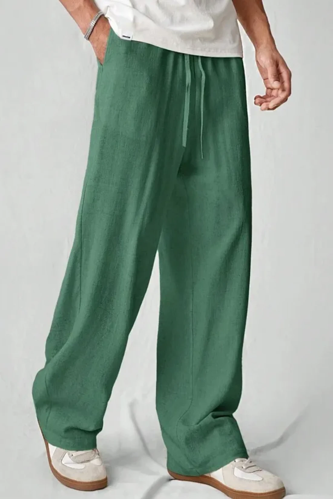 North London بنطال رجالي واسع الساق من مزيج الكتان مقاس كبير