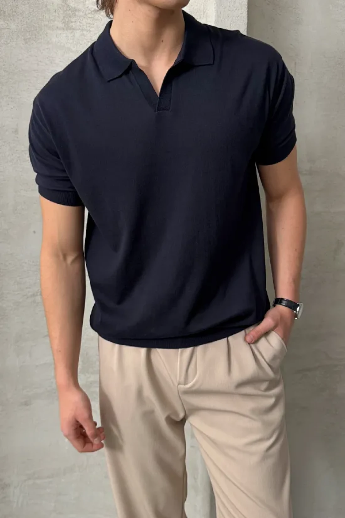 الياقة: رقبة بولو