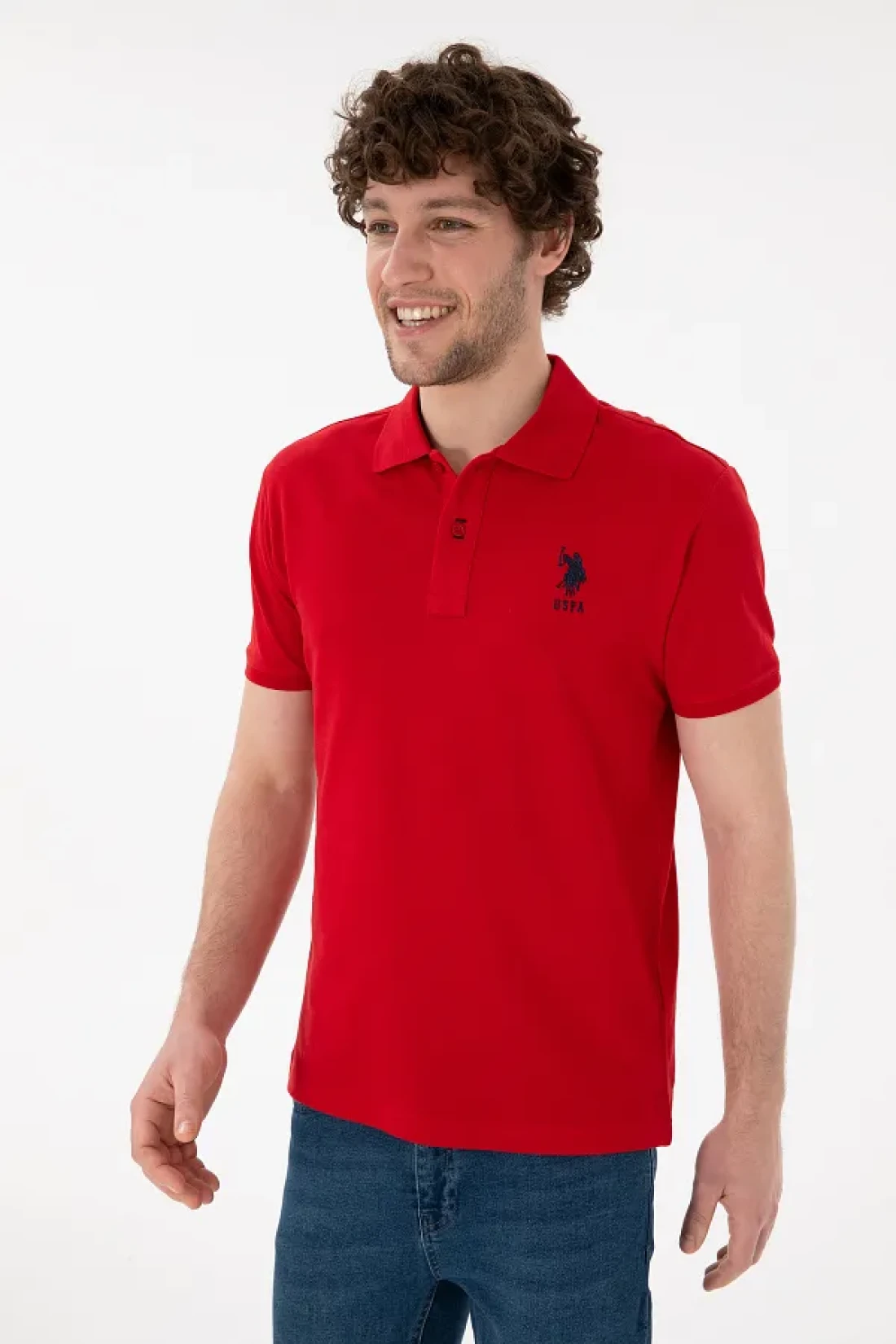 U.S. Polo Assn. تي شيرت رجالي ذو قصة ضيقة وياقة بولو باللون الأحمر الأساسي 50305929 -vr030