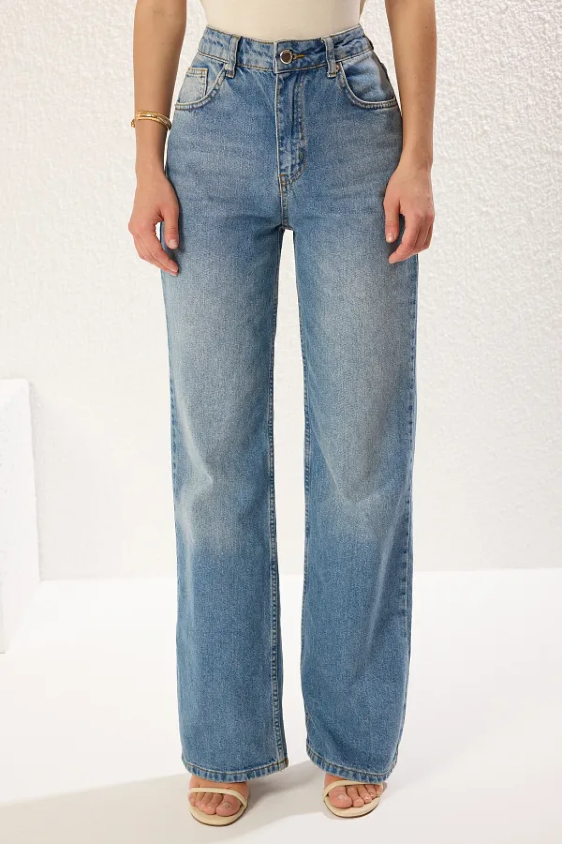 Collection جينز أزرق عالي الخصر بأرجل واسعة TWOSS25JE00172