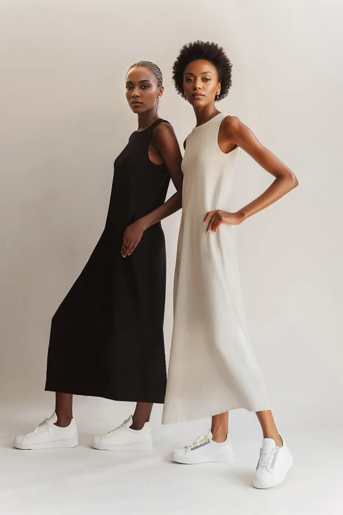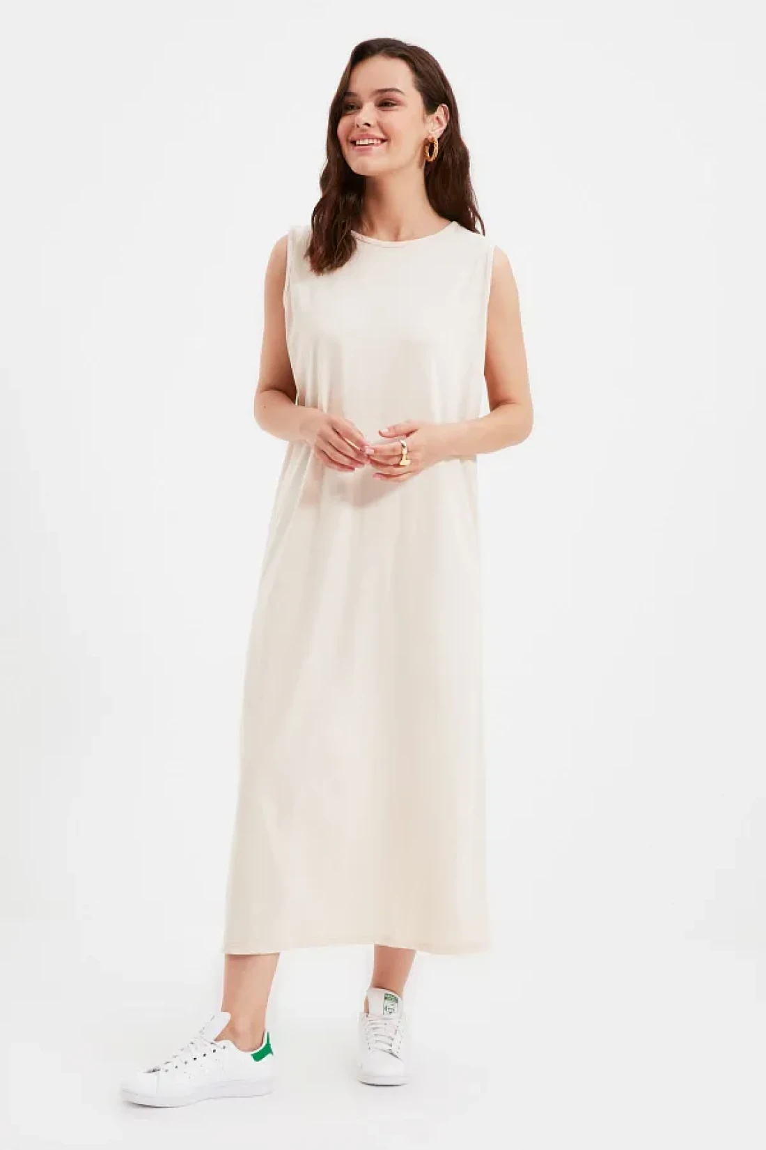 Modest فستان محبوك من القطن 100% باللونين الأسود والبيج الفاتح حزمة من قطعتين - TCTAW22UK0110