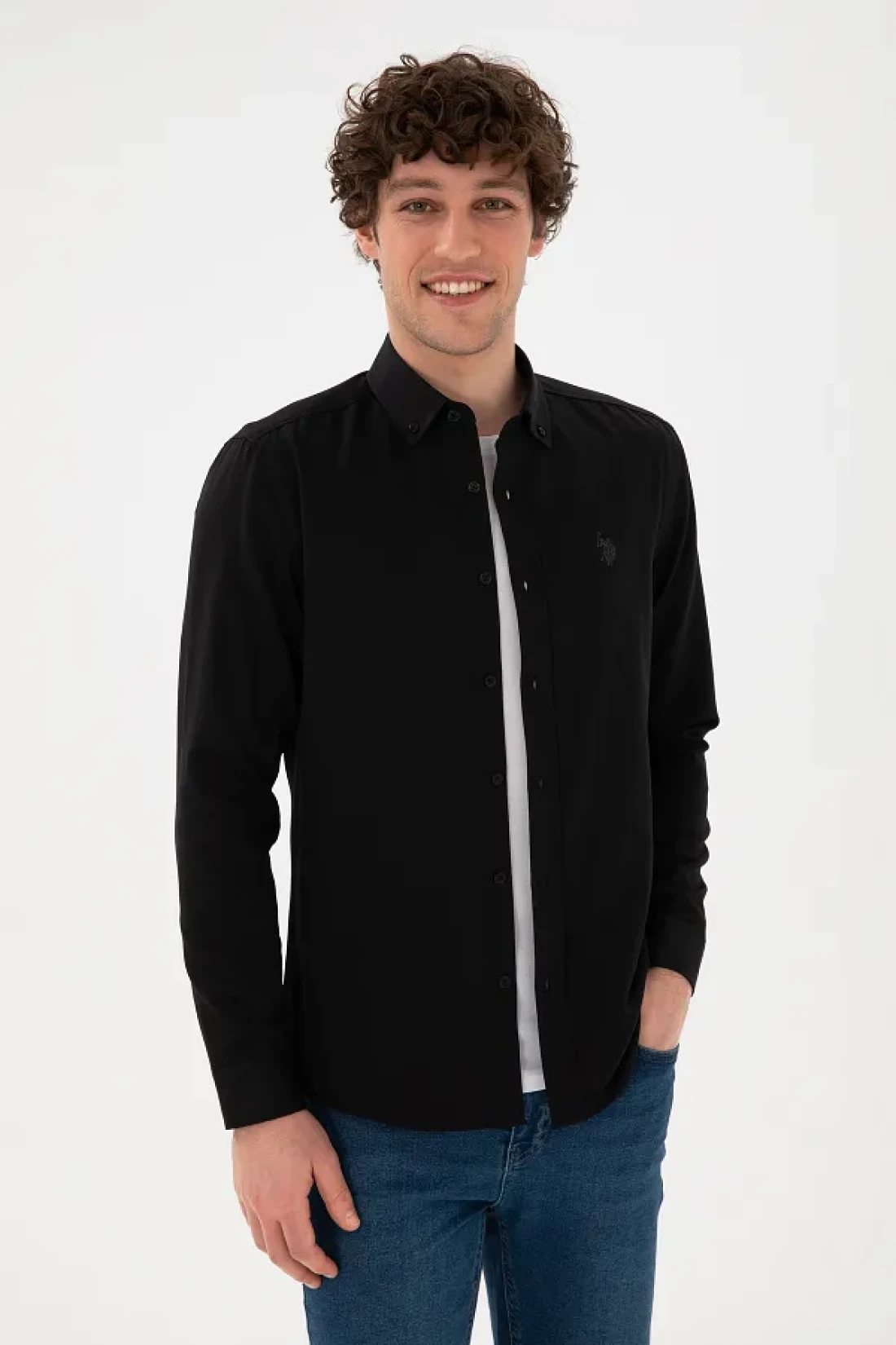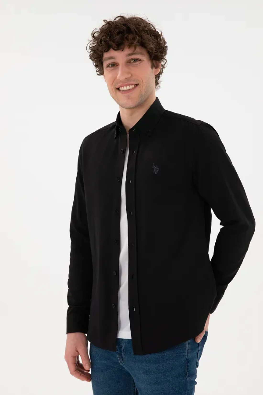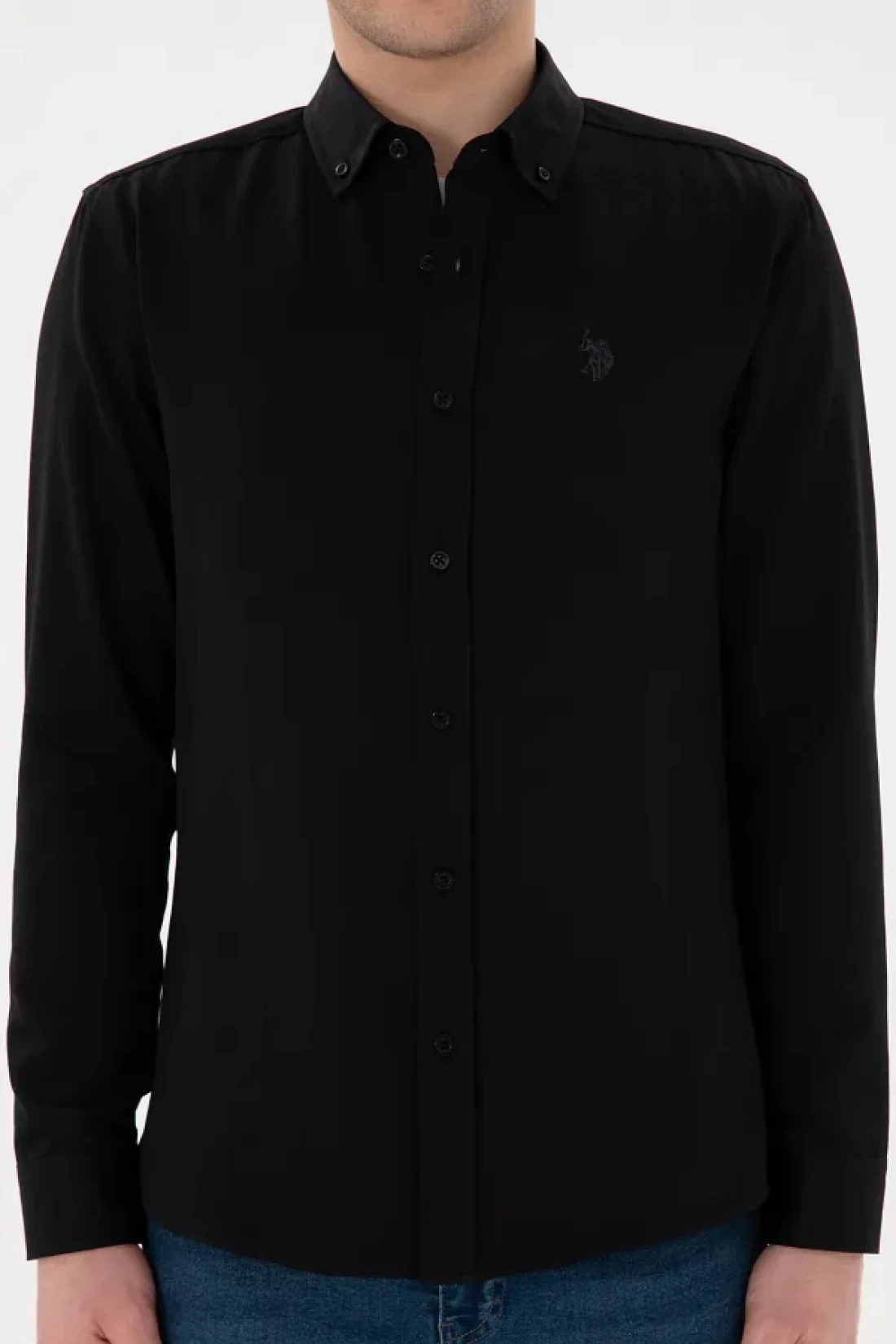 U.S. Polo Assn. قميص أساسي أسود بأكمام طويلة للرجال 50296777 -VR046