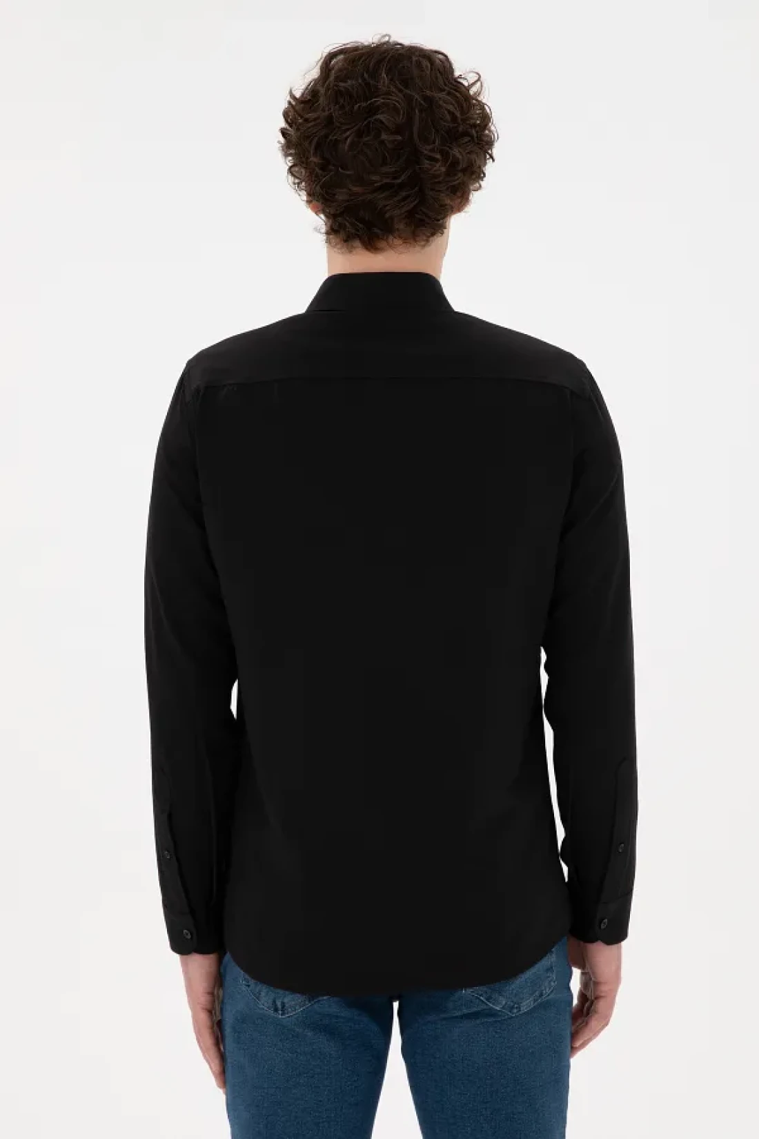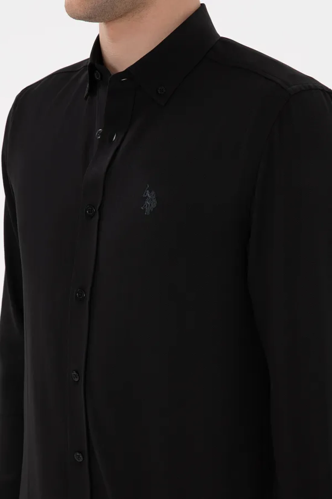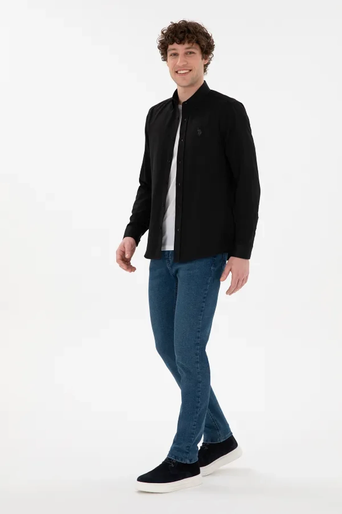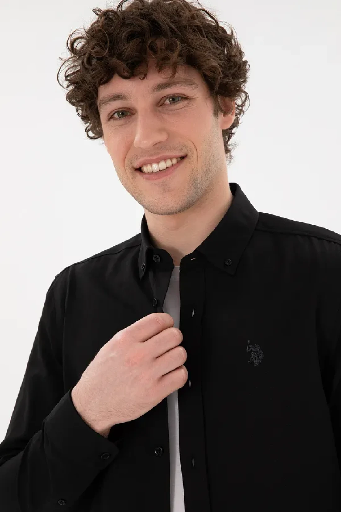 U.S. Polo Assn. قميص أساسي أسود بأكمام طويلة للرجال 50296777 -VR046