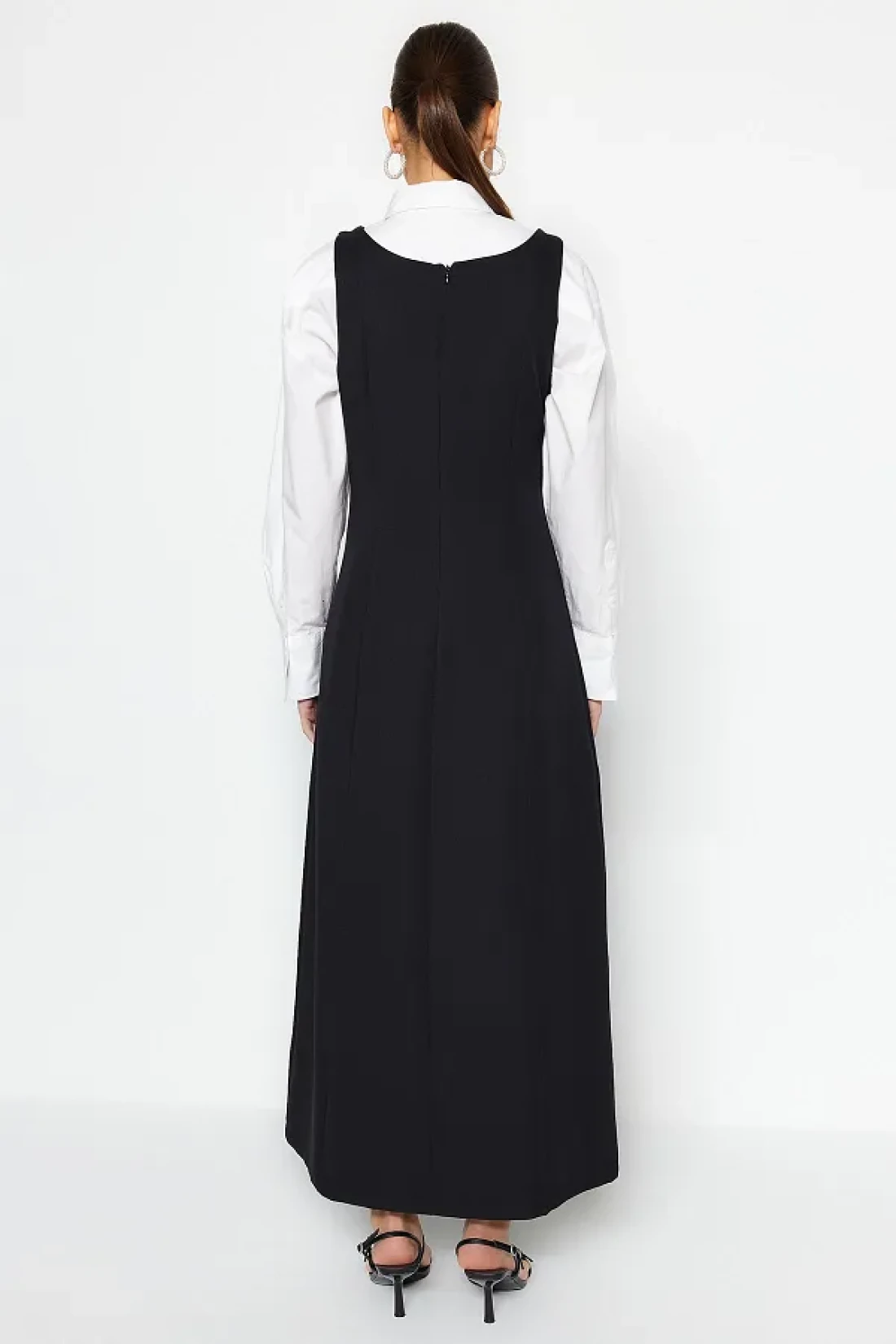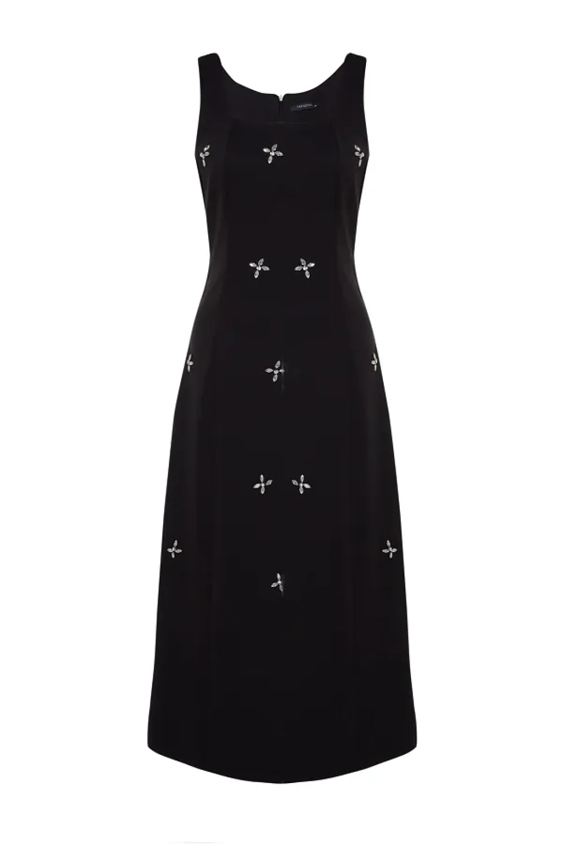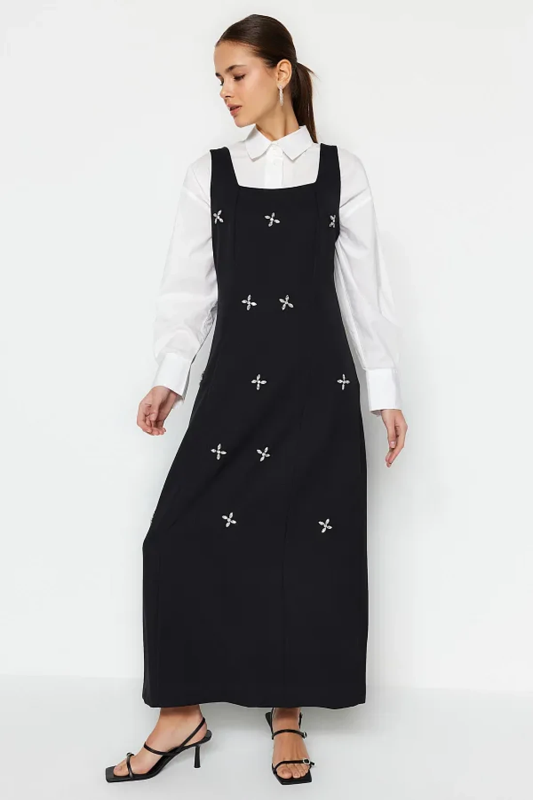Modest فستان جيليه منسوج بياقة مربعة ومزين بالأحجار السوداء TCTSS23EB00157