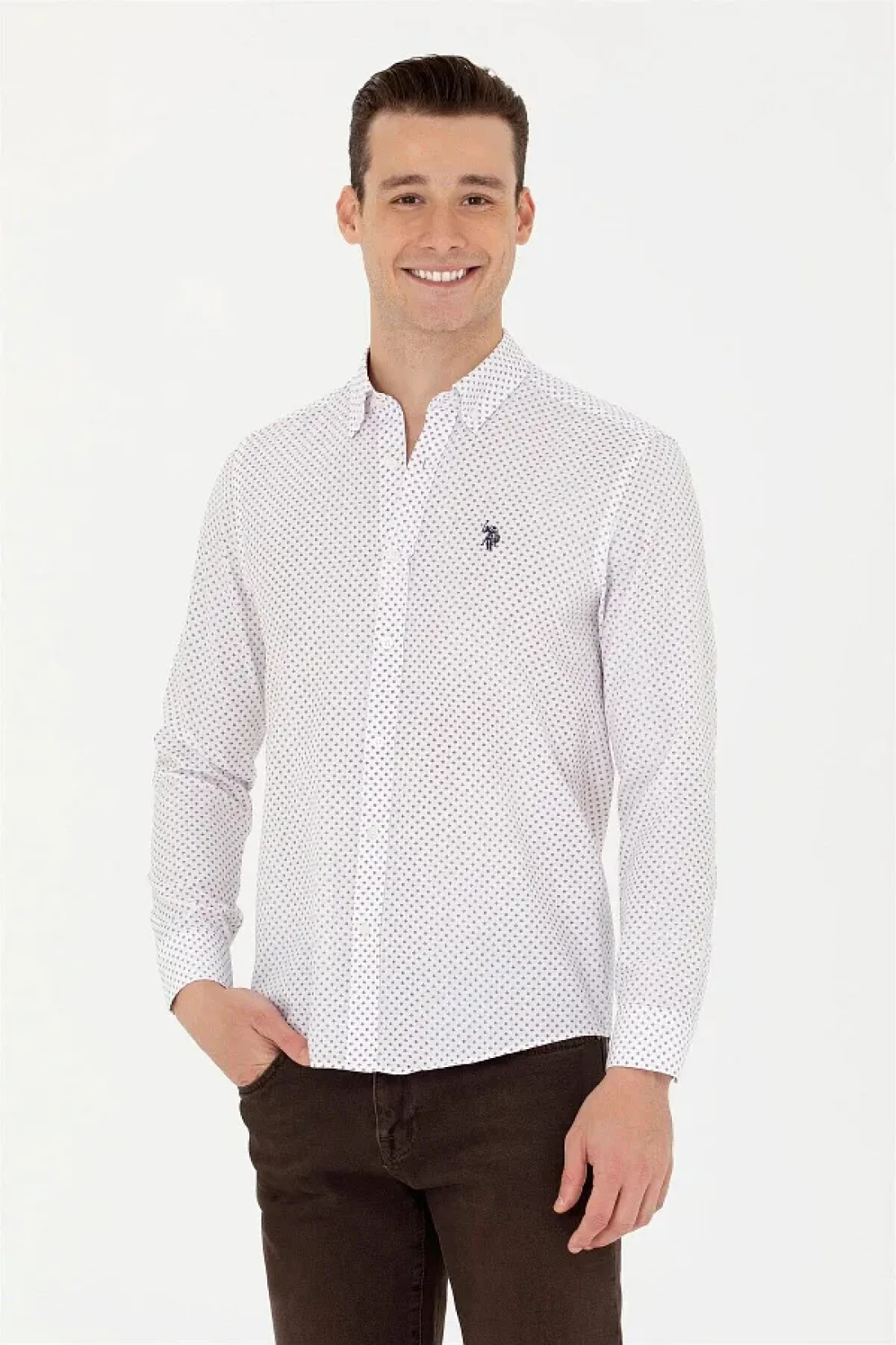 U.S. Polo Assn. قميص رجالي بأكمام طويلة باللون العنابي ملابس ARINE