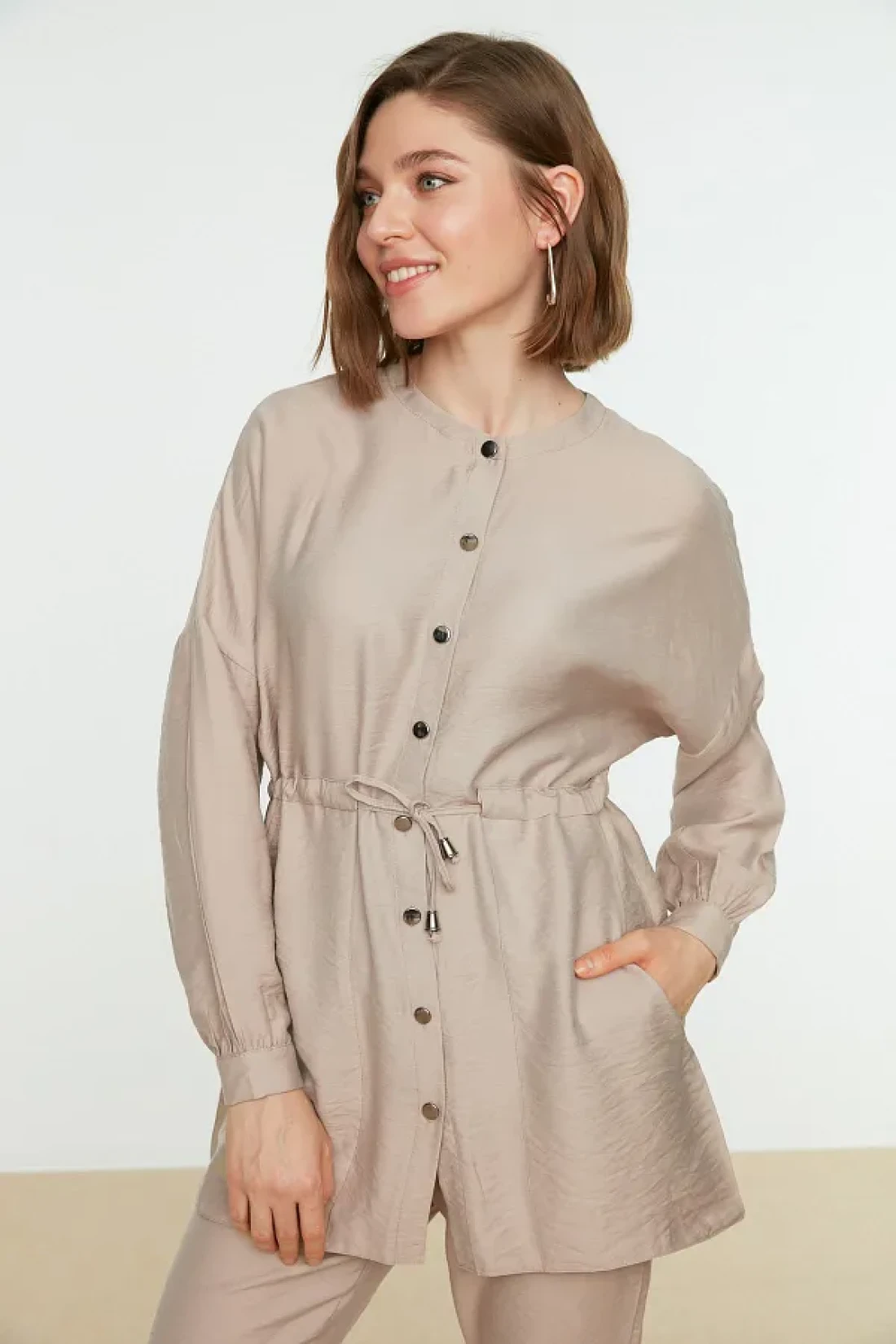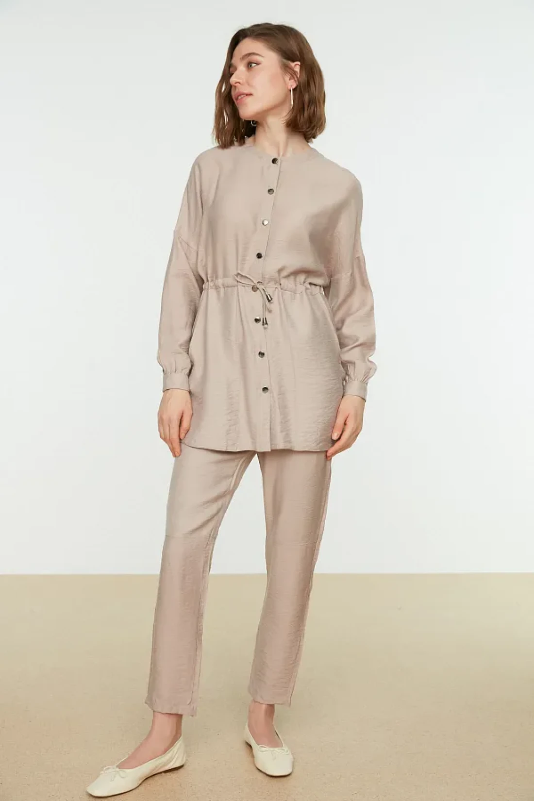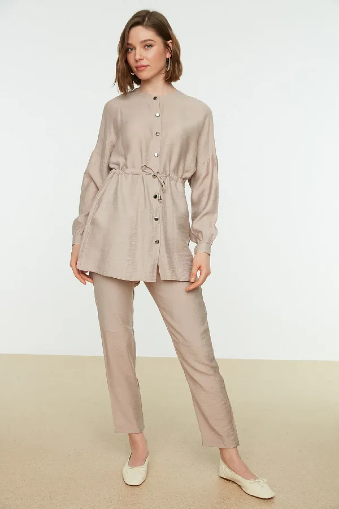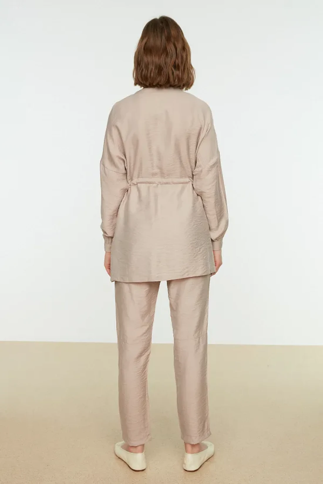 Modest طقم قميص وبنطلون منسوج بخصر بيج TCTSS21AU0237