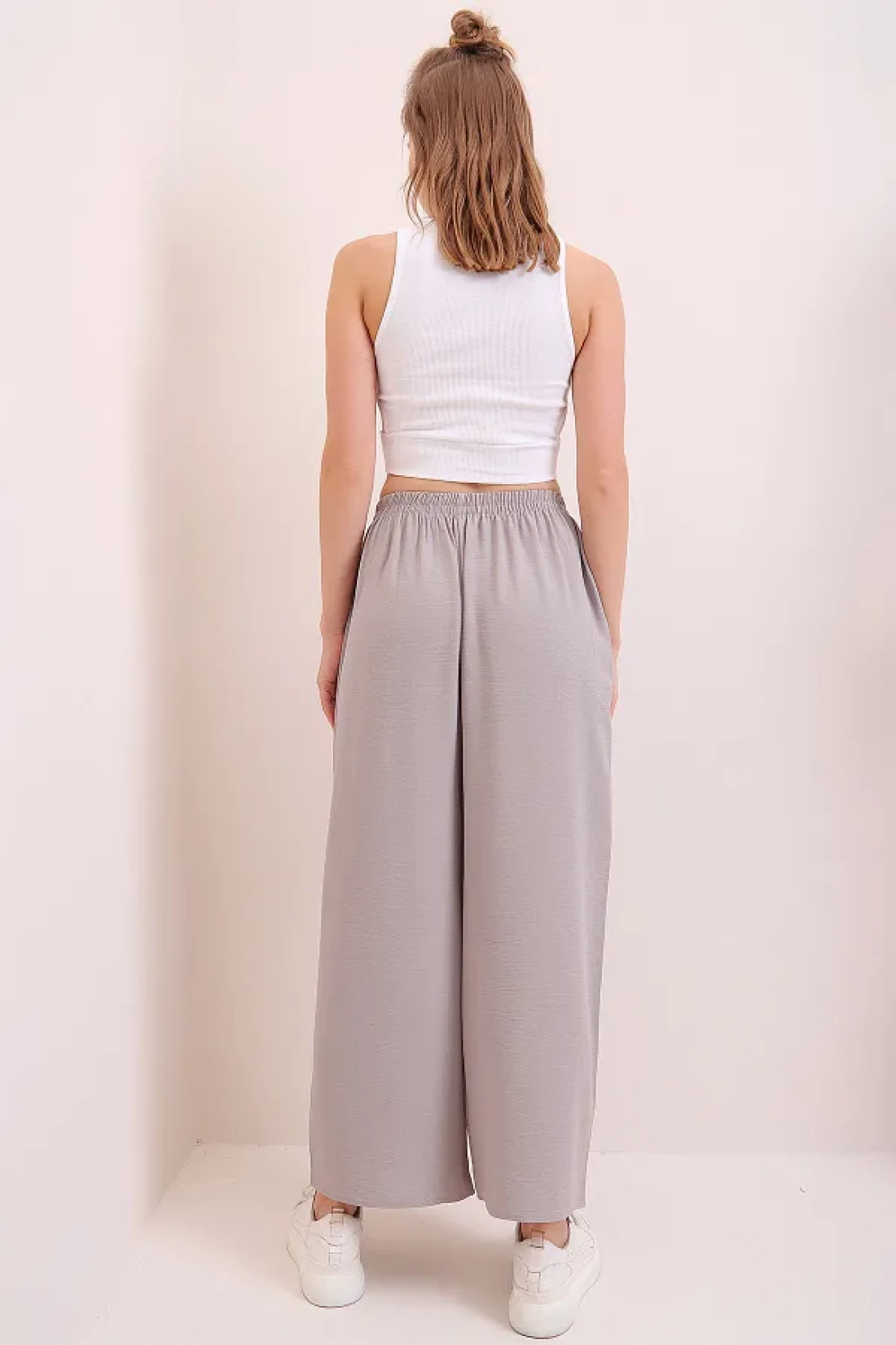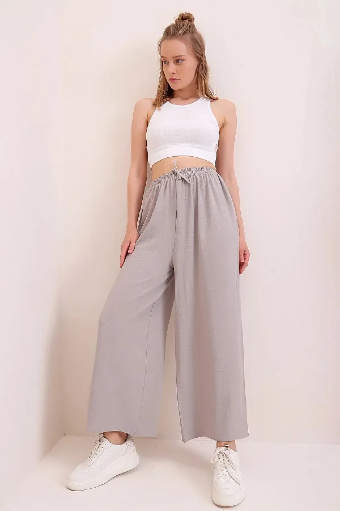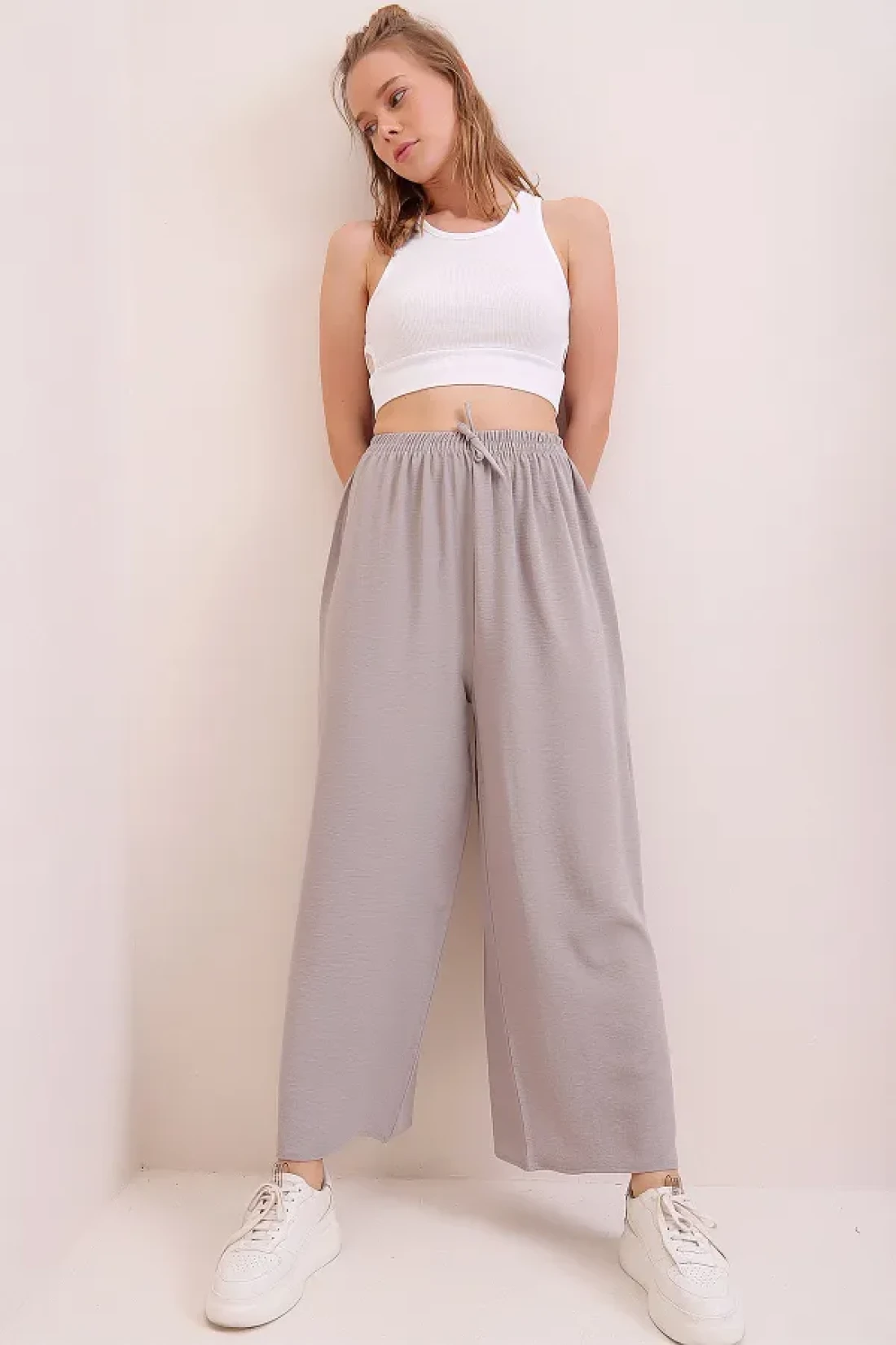 Trend Alaçatı Stili بنطلون Aerobin ذو الخصر المطاطي باللون الرمادي للنساء