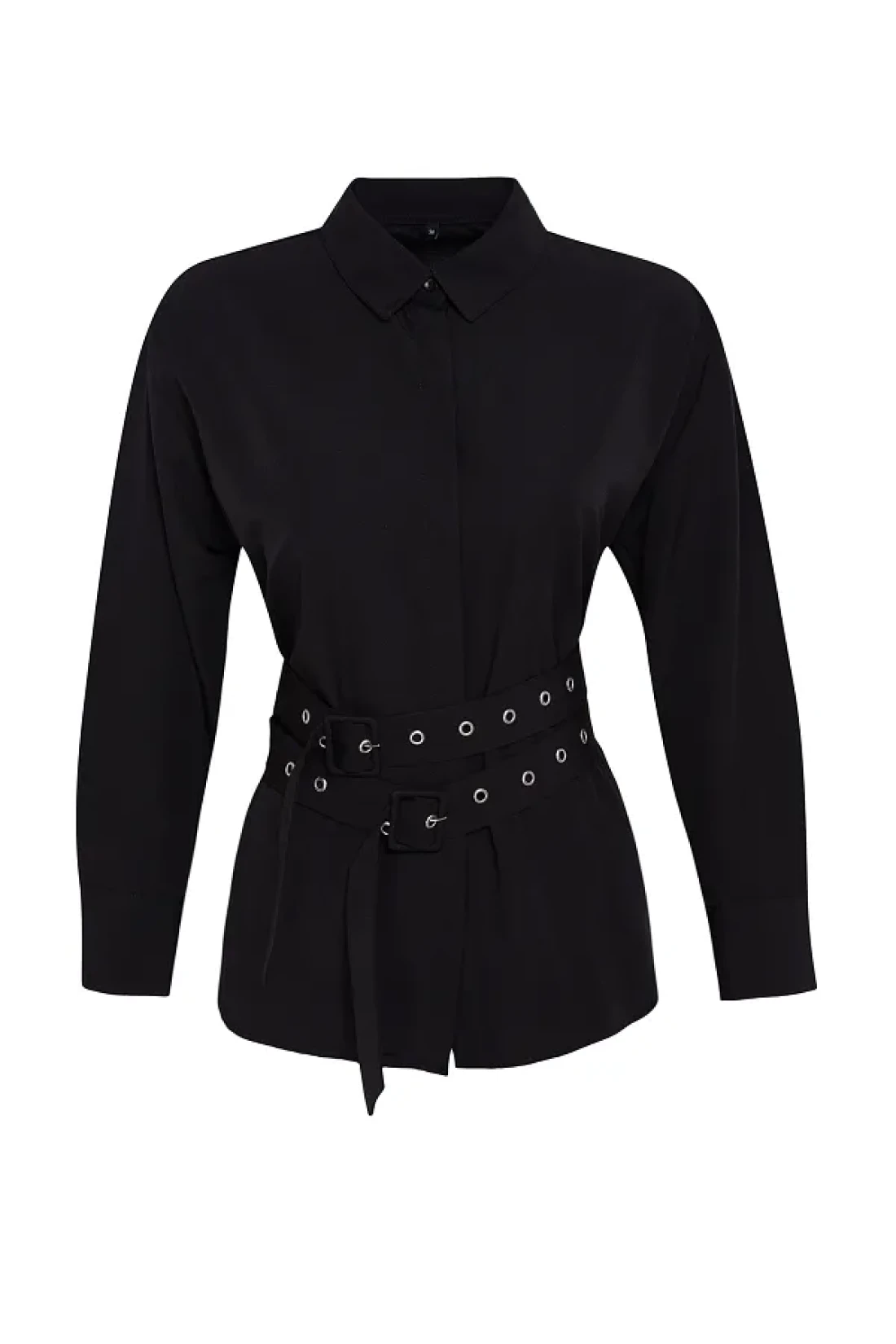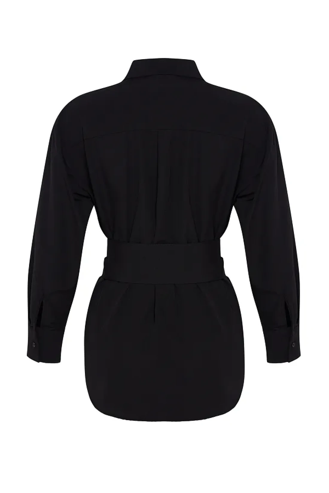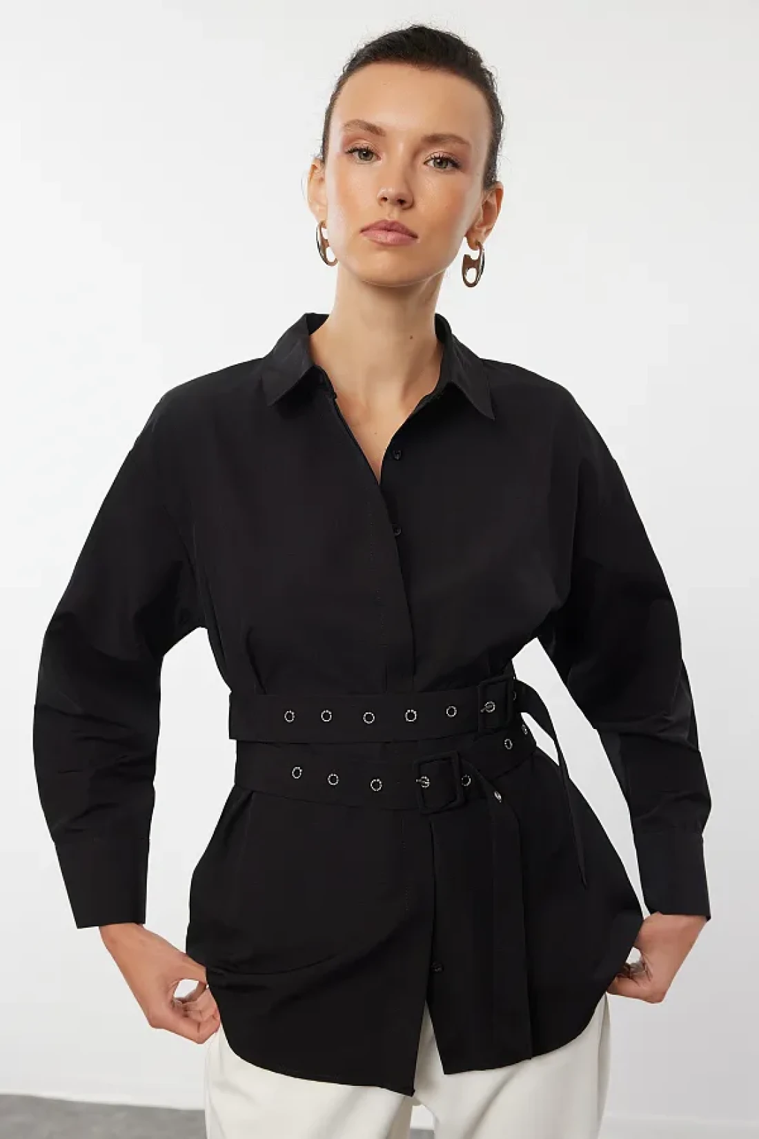 Collection قميص منسوج كبير الحجم بحزام أسود ومفصل TWOAW25GO00025