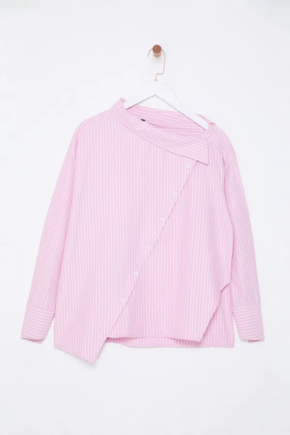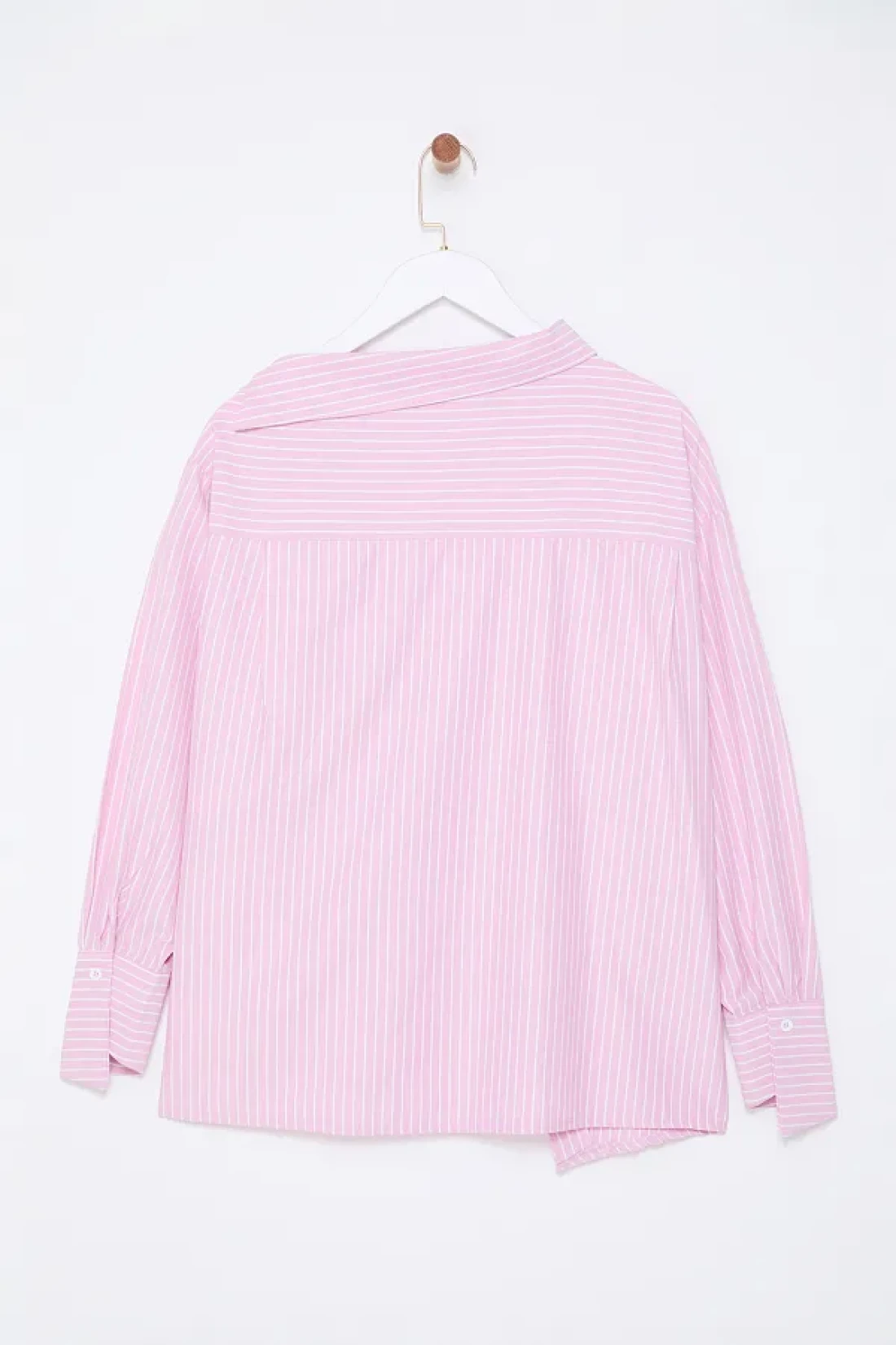 Collection إصدار محدود قميص منسوج مخطط باللون الوردي مع تفاصيل طية صدر السترة TWOAW25GO00065