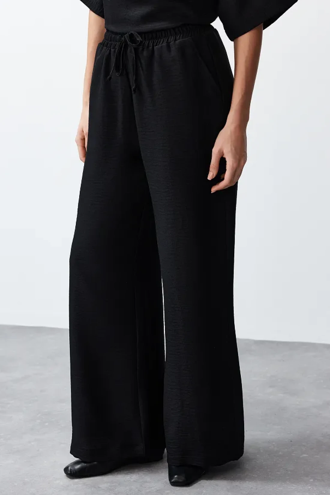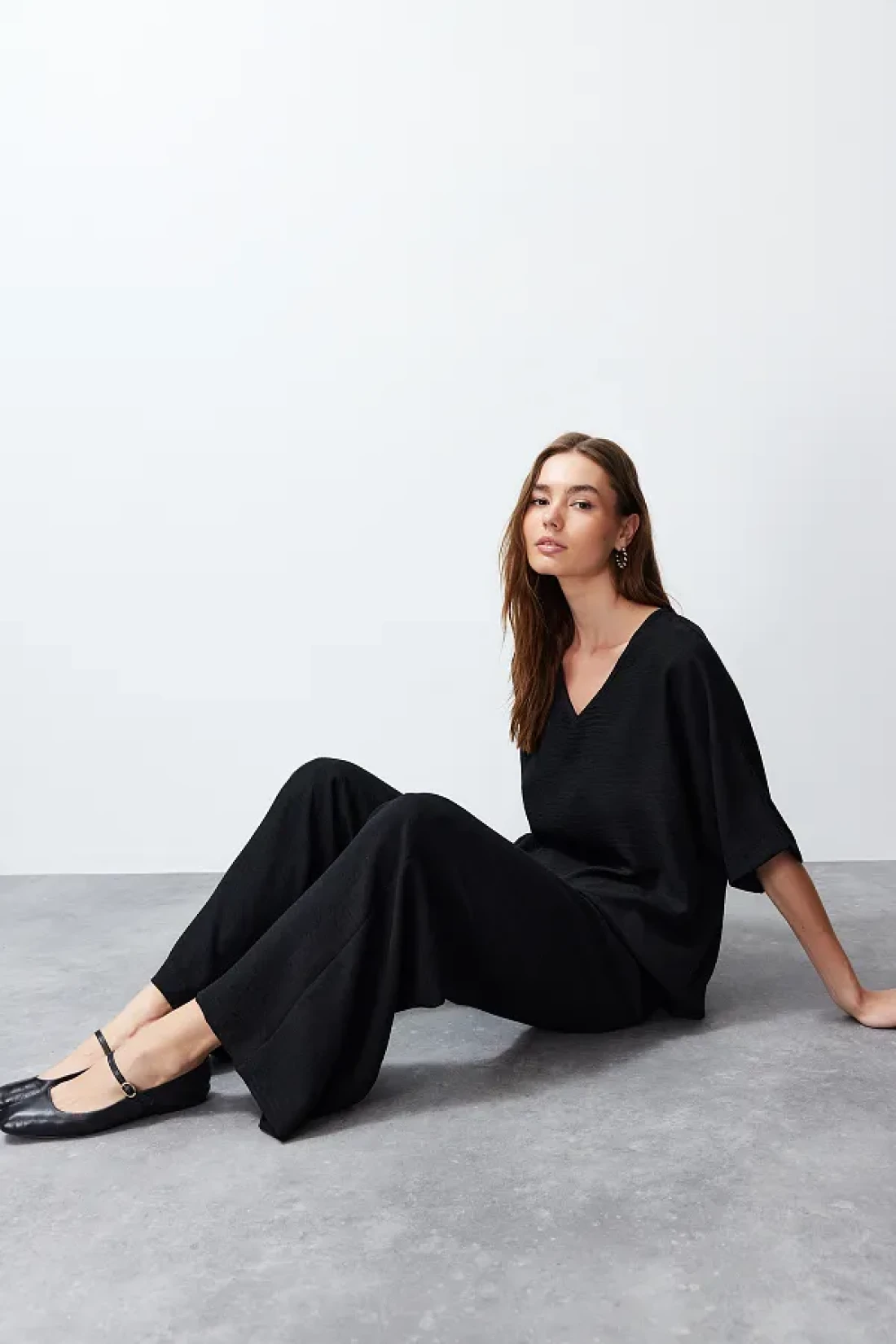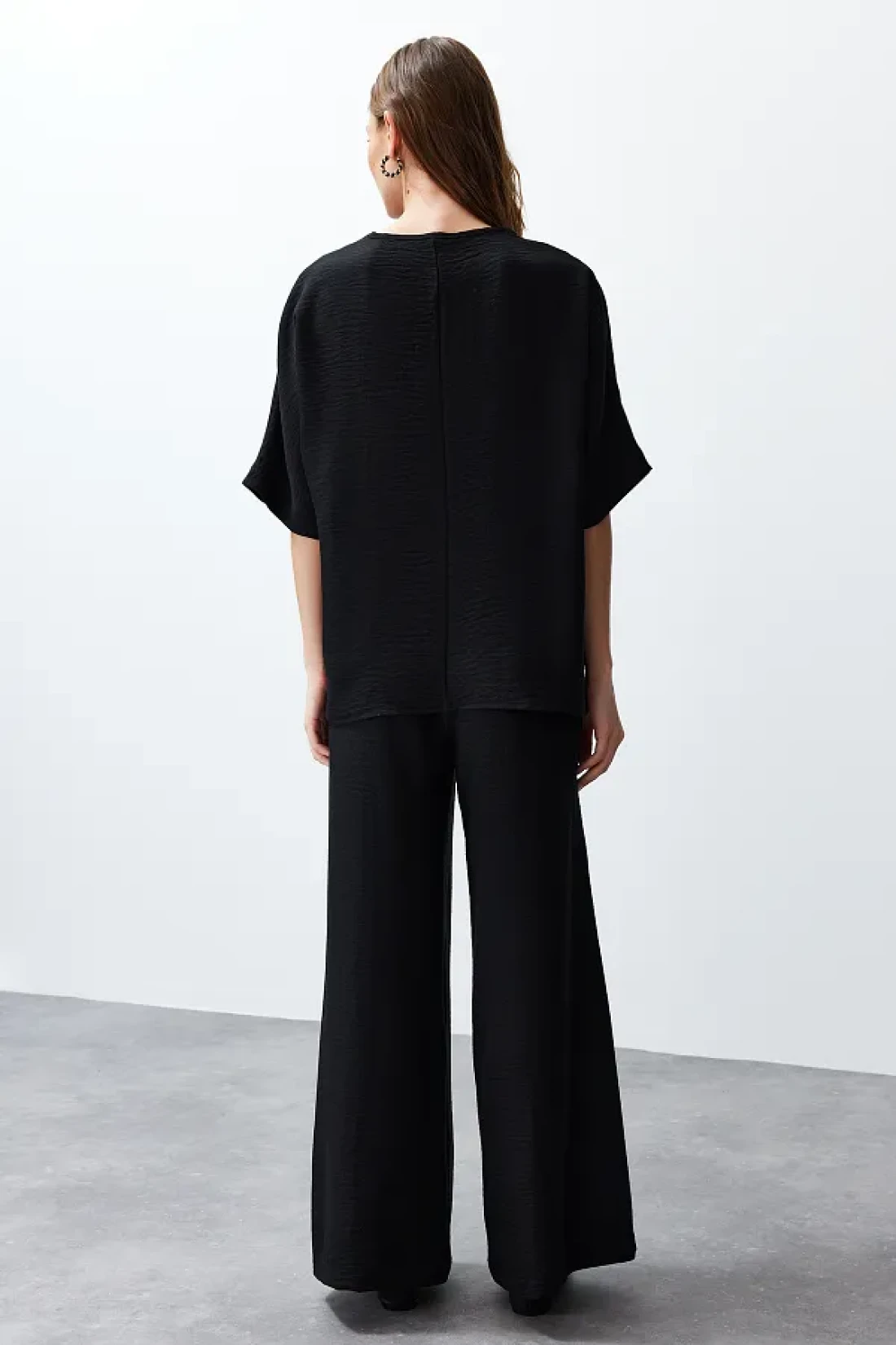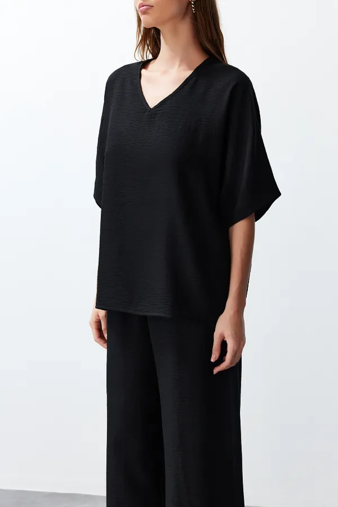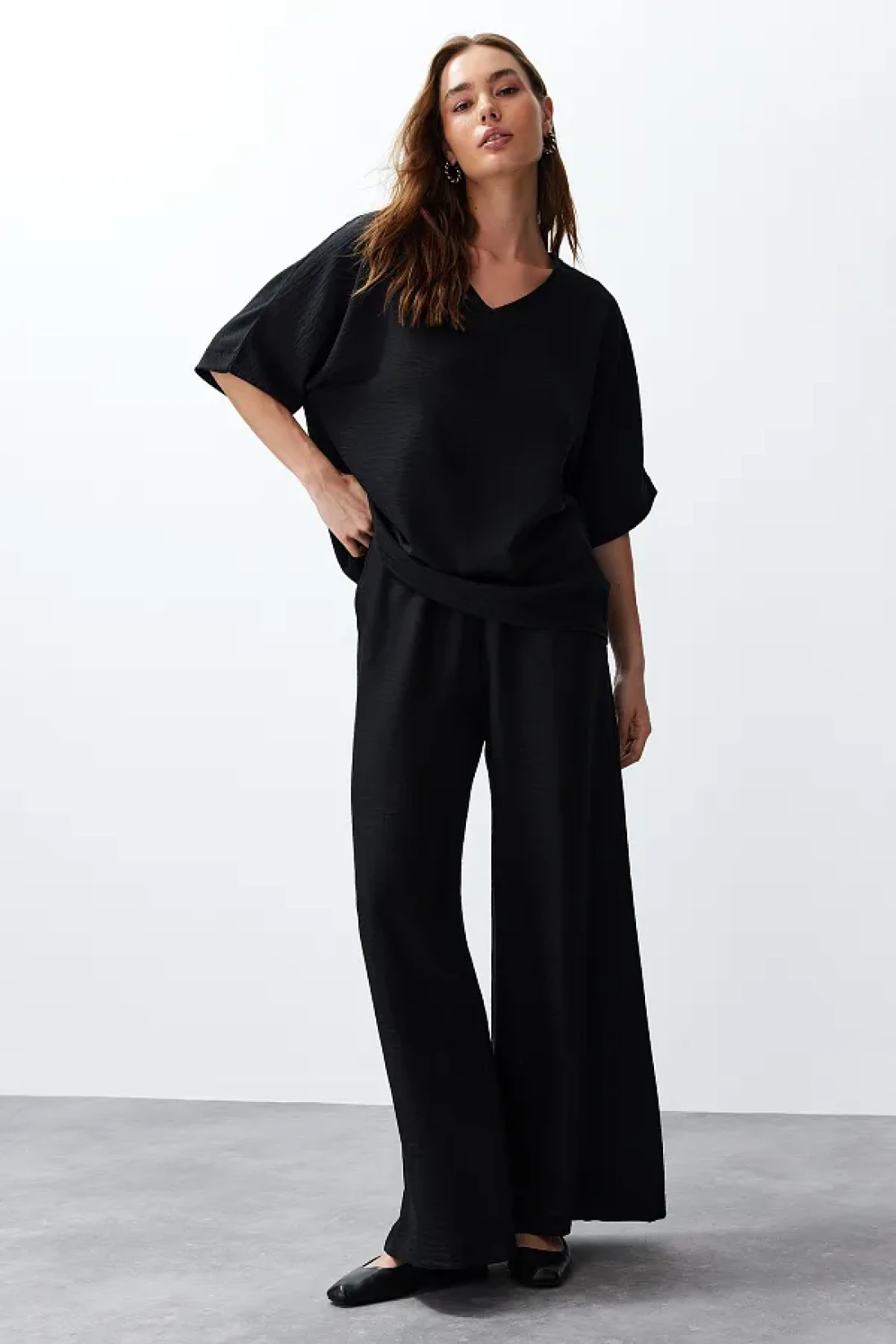 Collection طقم بلوزة وبنطلون أسود برقبة على شكل حرف V - TWOSS24AU00096