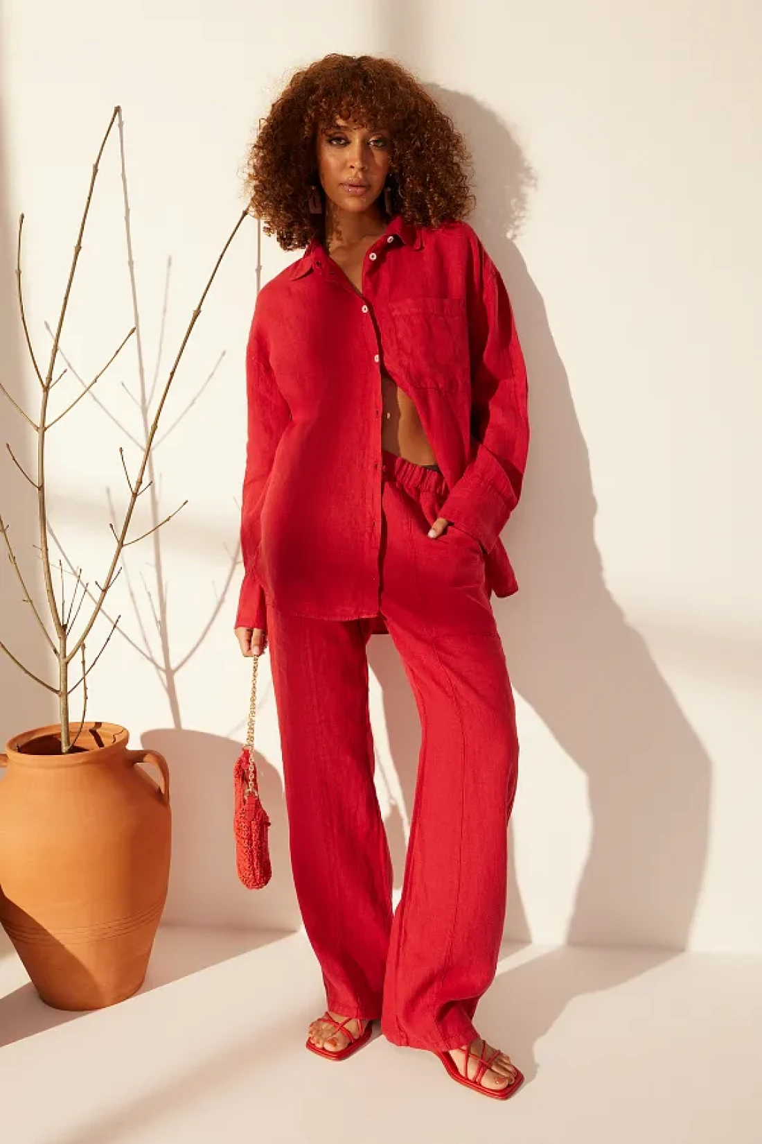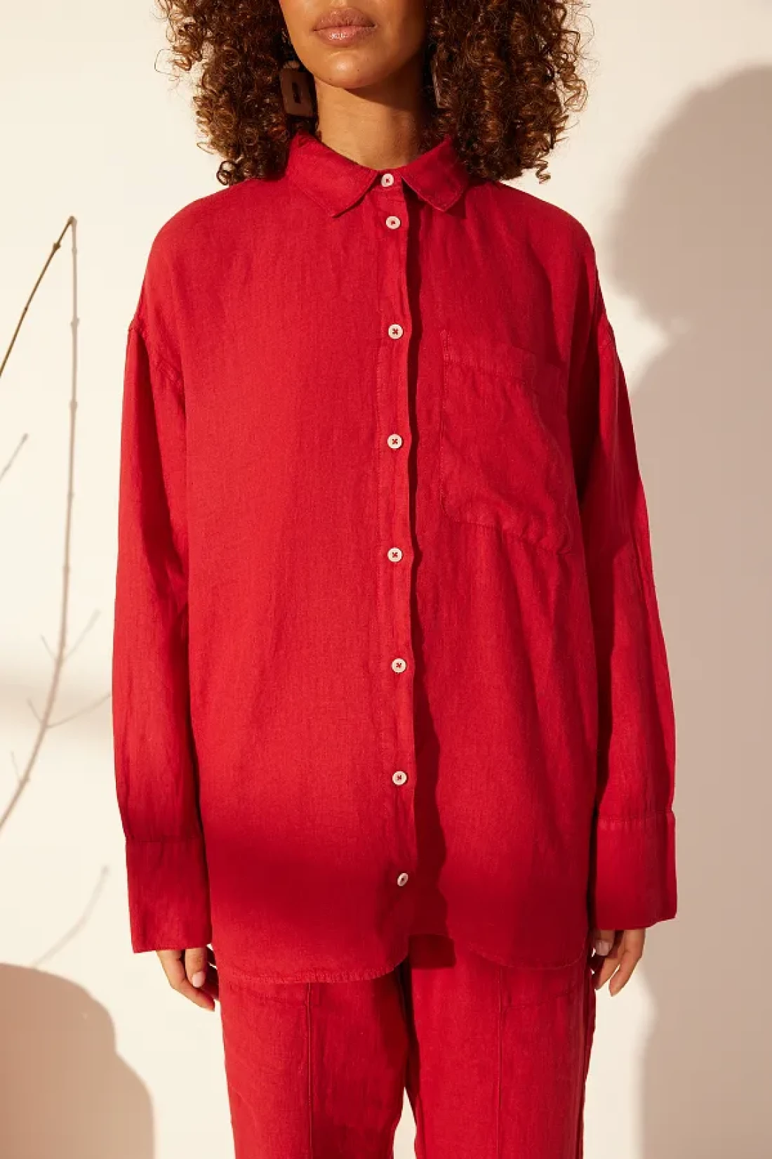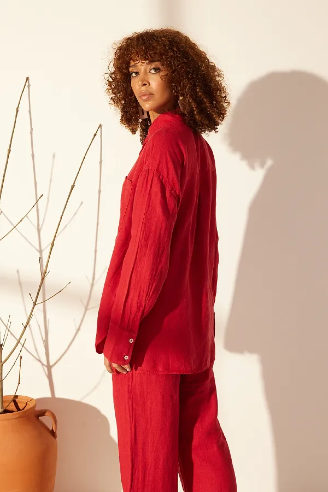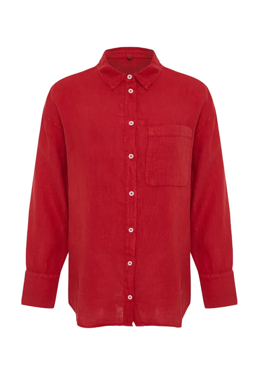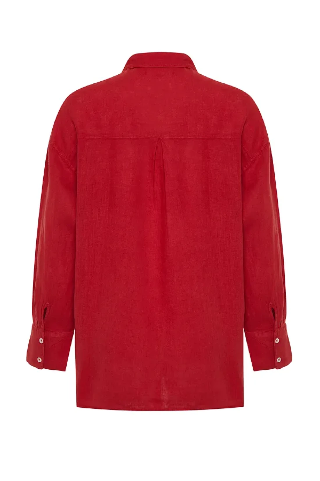 Collection قميص أحمر 100% كتان كبير الحجم TWOSS23GO00443