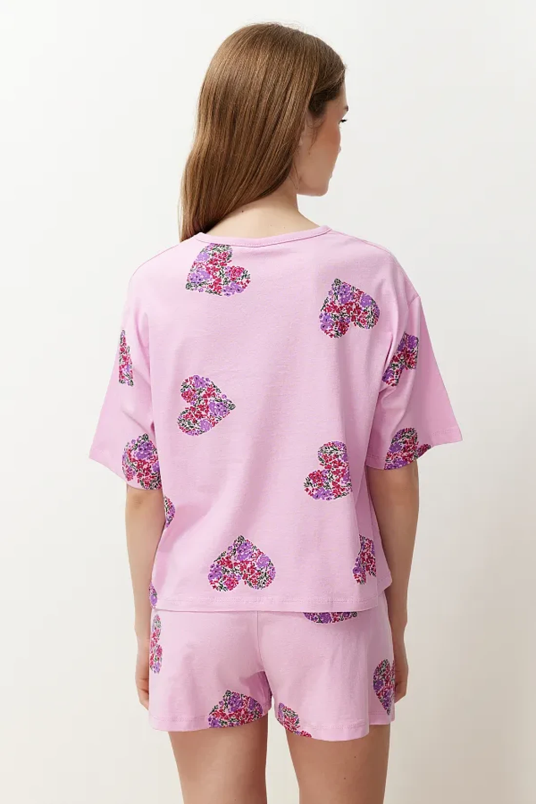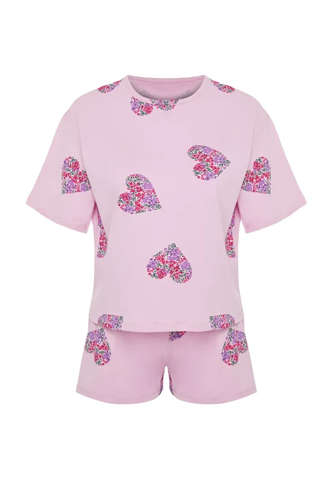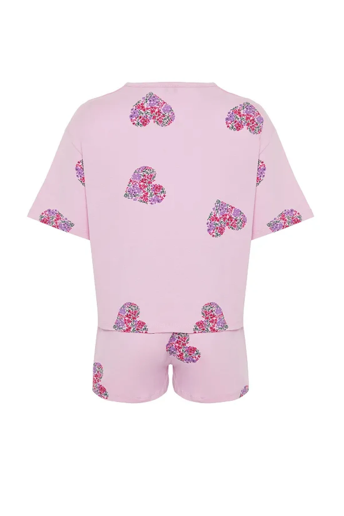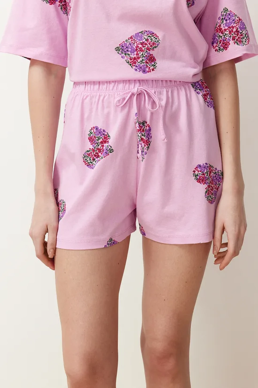 Collection طقم بيجامة قطن على شكل قلب وردي اللون مع شورت - THMSS24PT00225