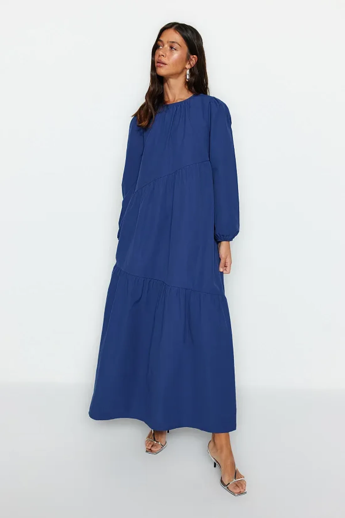 Modest فستان منسوج من القطن ذو قصة واسعة ومفصل من Saks TCTSS21EL3470