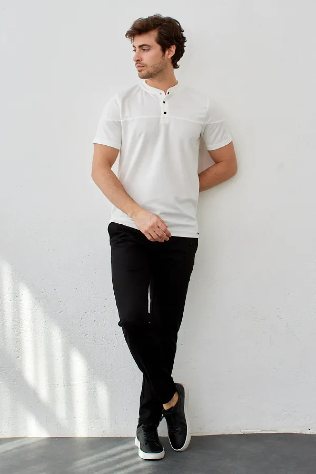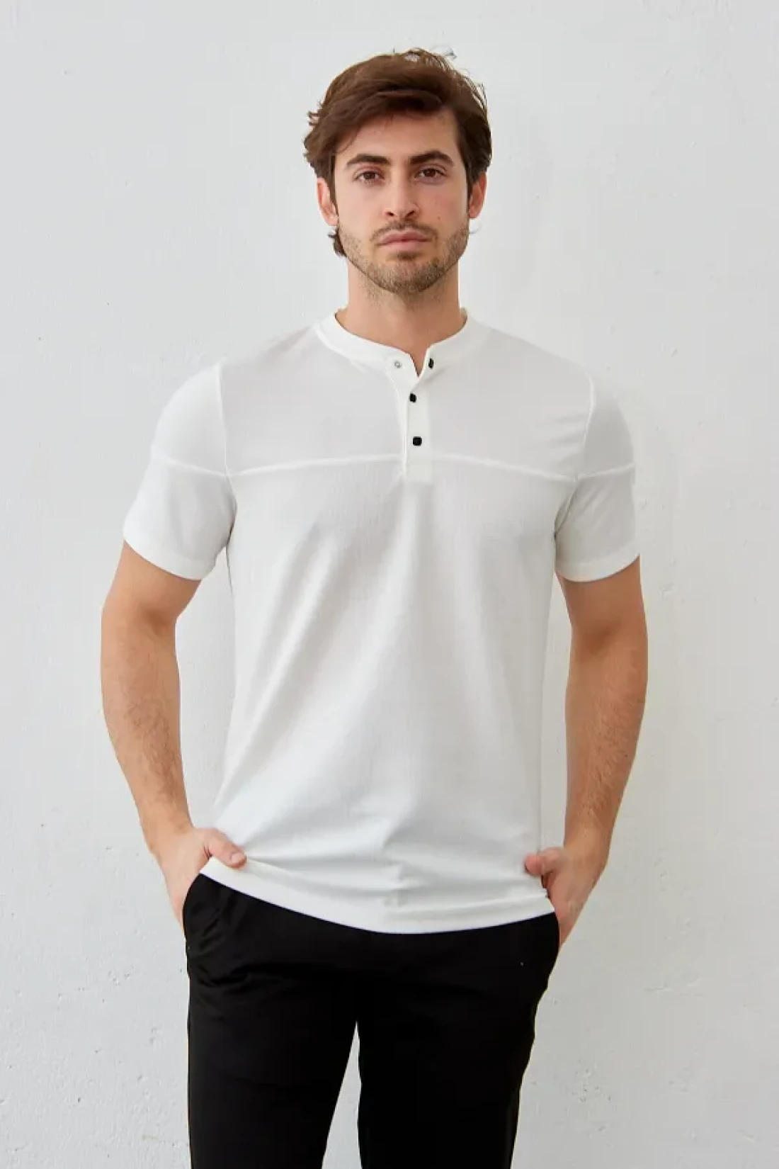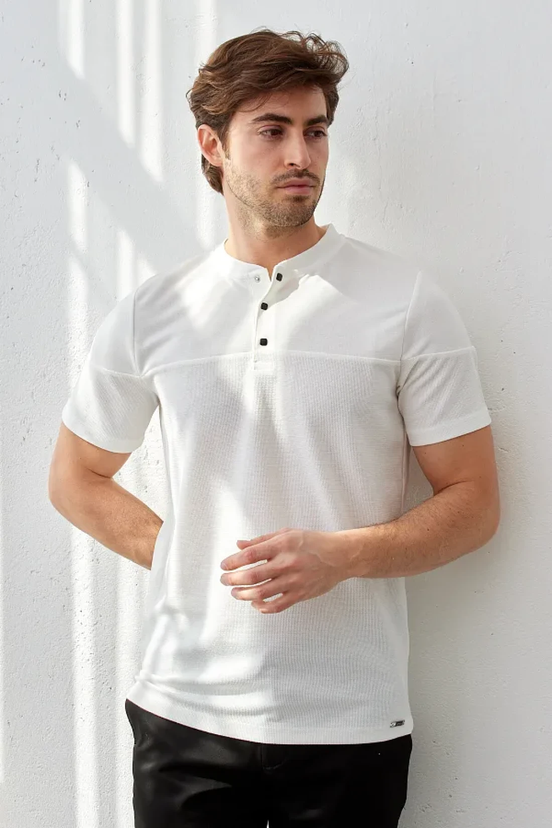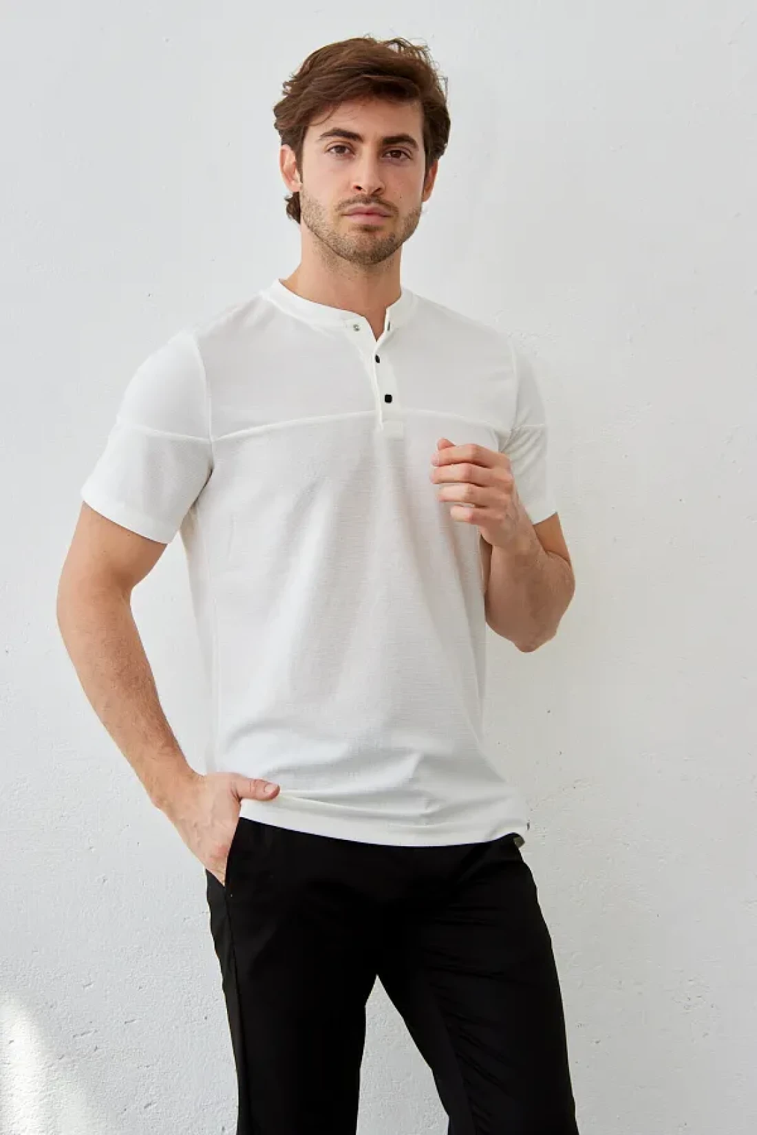 RAVANELLI تي شيرت رجالي عصري ذو قصة ضيقة وياقة واقفة