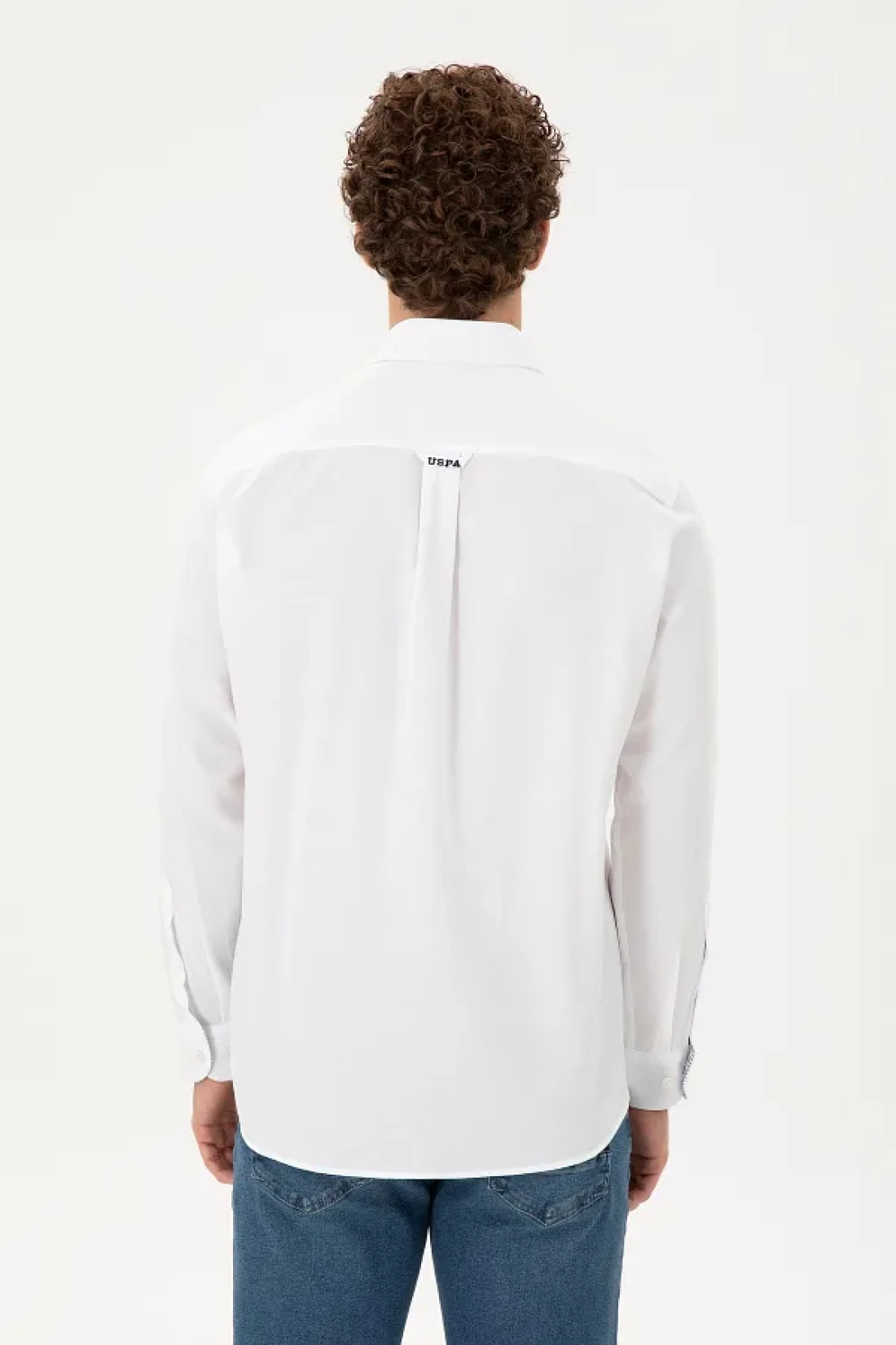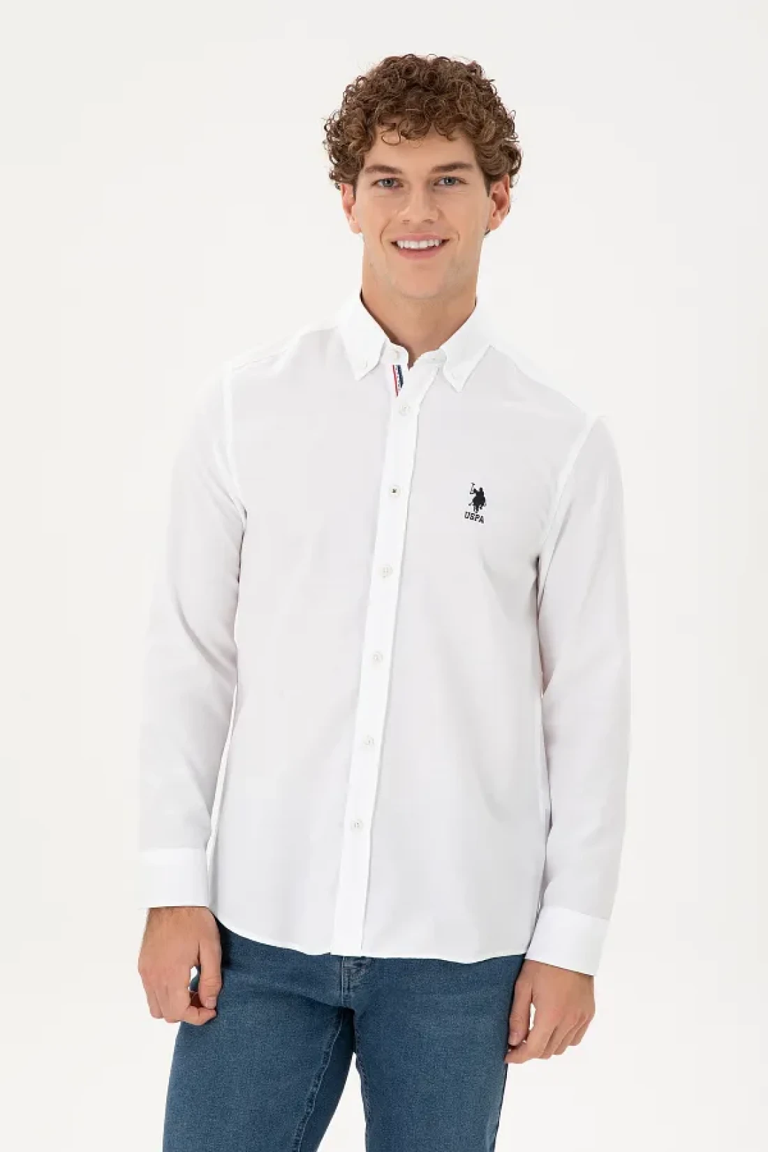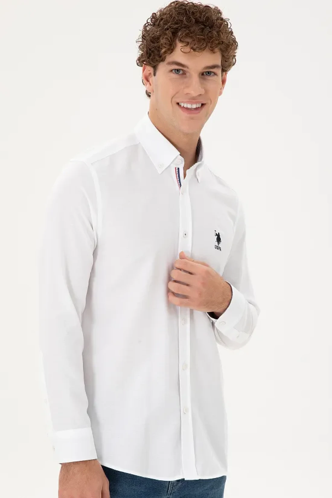 U.S. Polo Assn. قميص أبيض بأكمام طويلة للرجال 50296687 -VR013