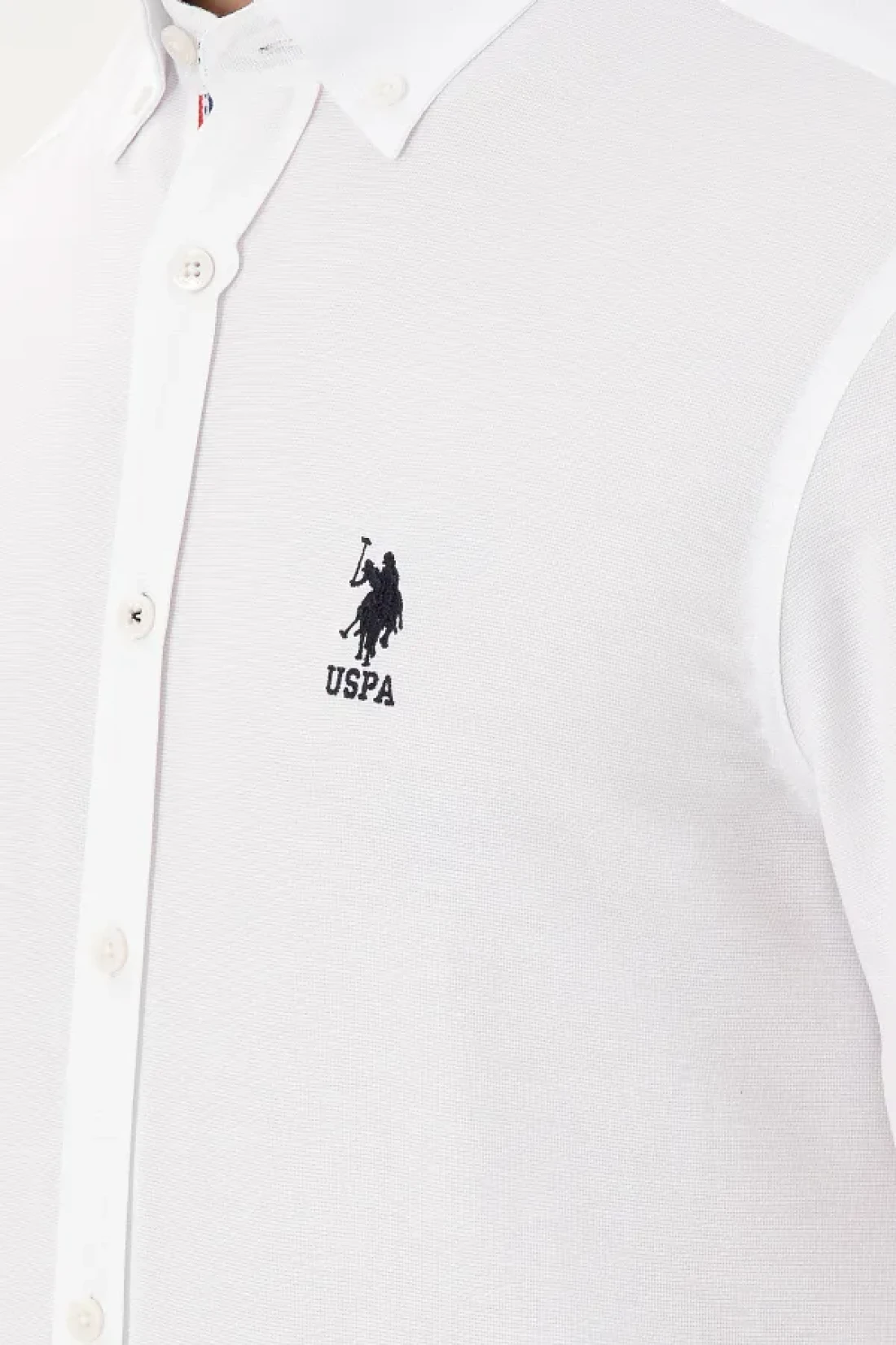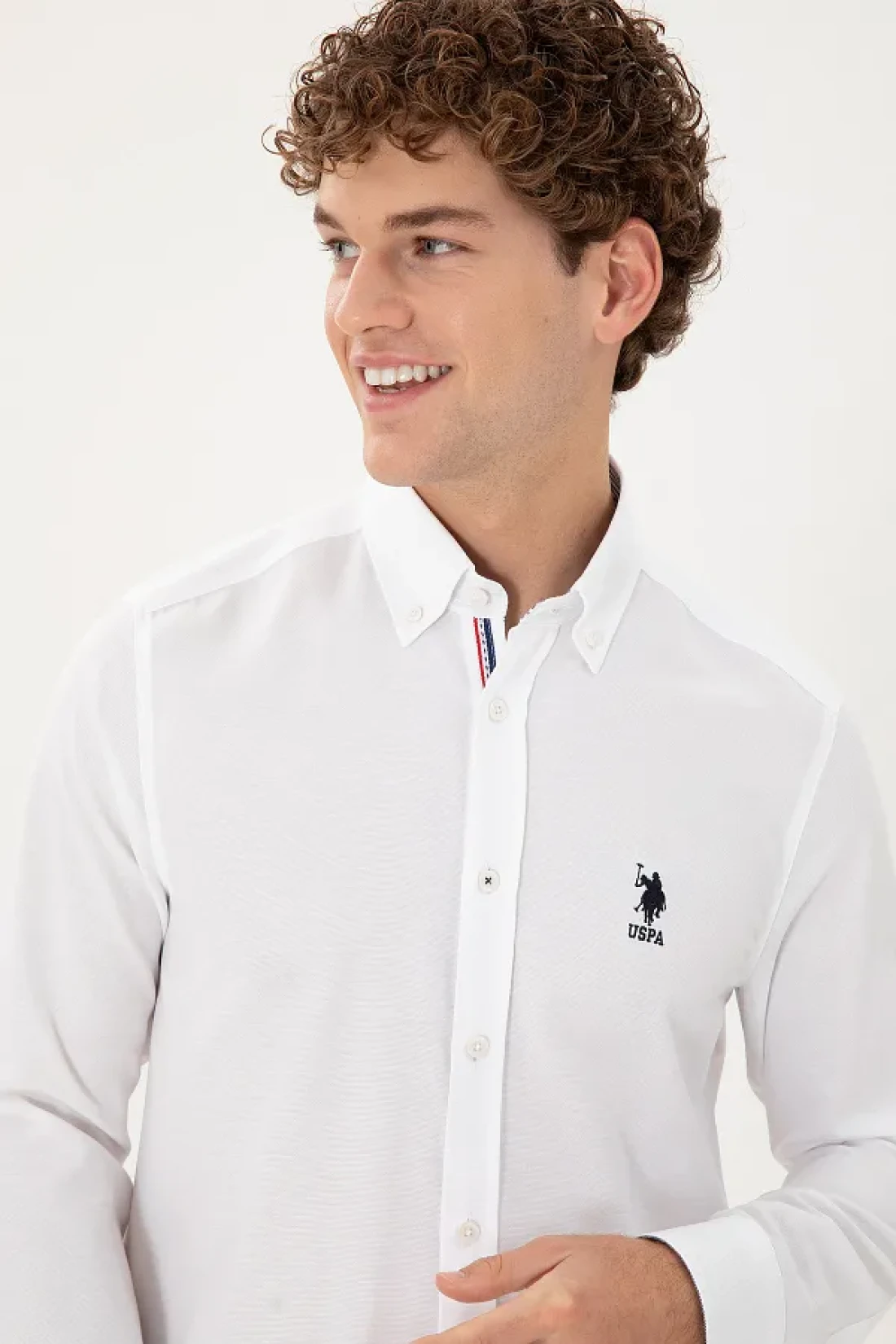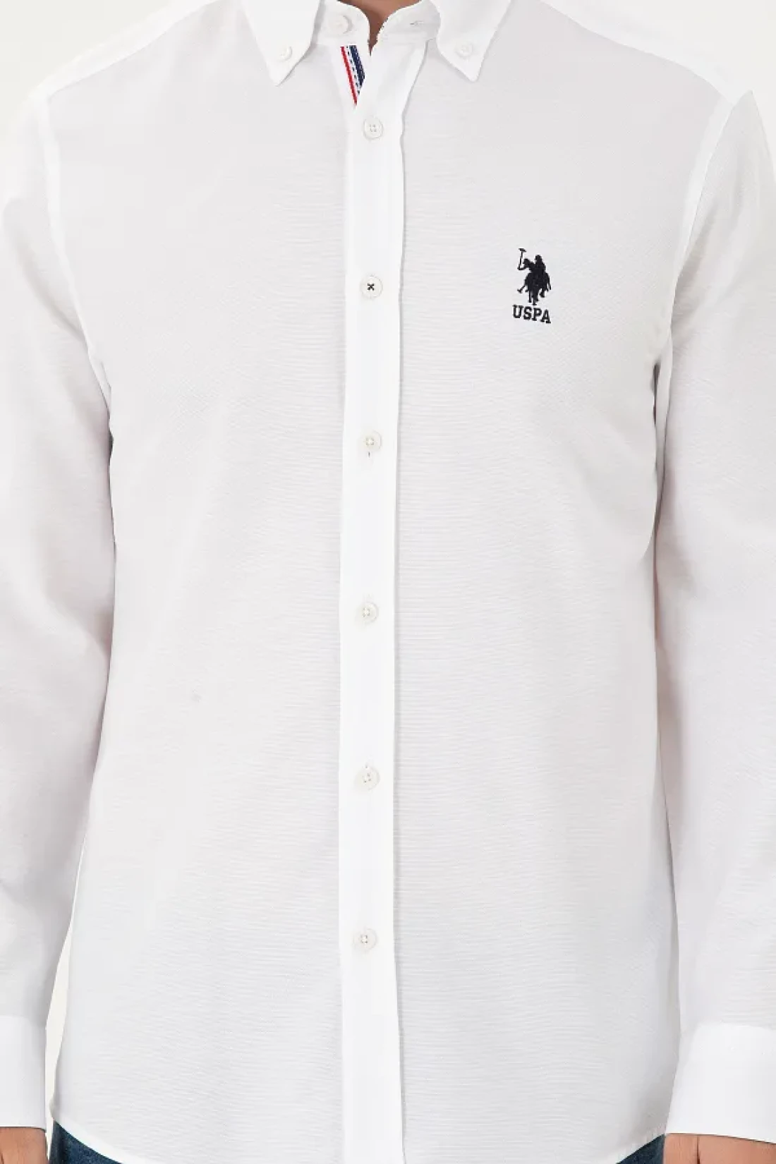 U.S. Polo Assn. قميص أبيض بأكمام طويلة للرجال 50296687 -VR013