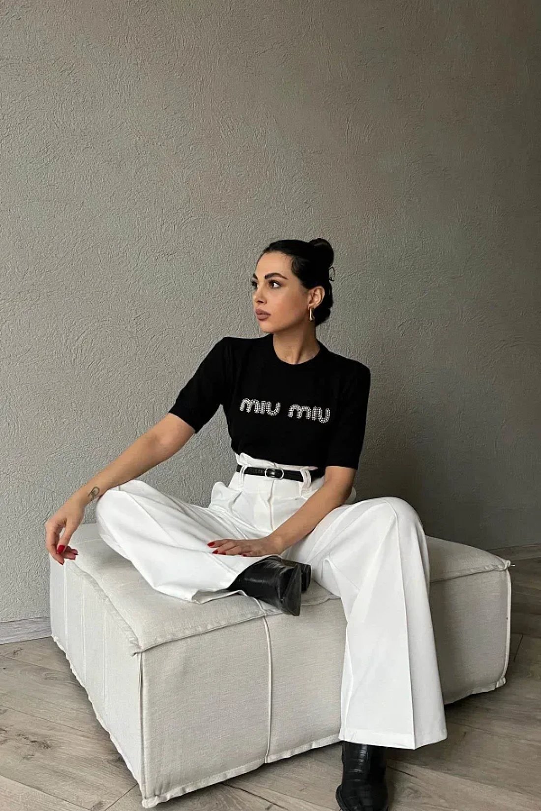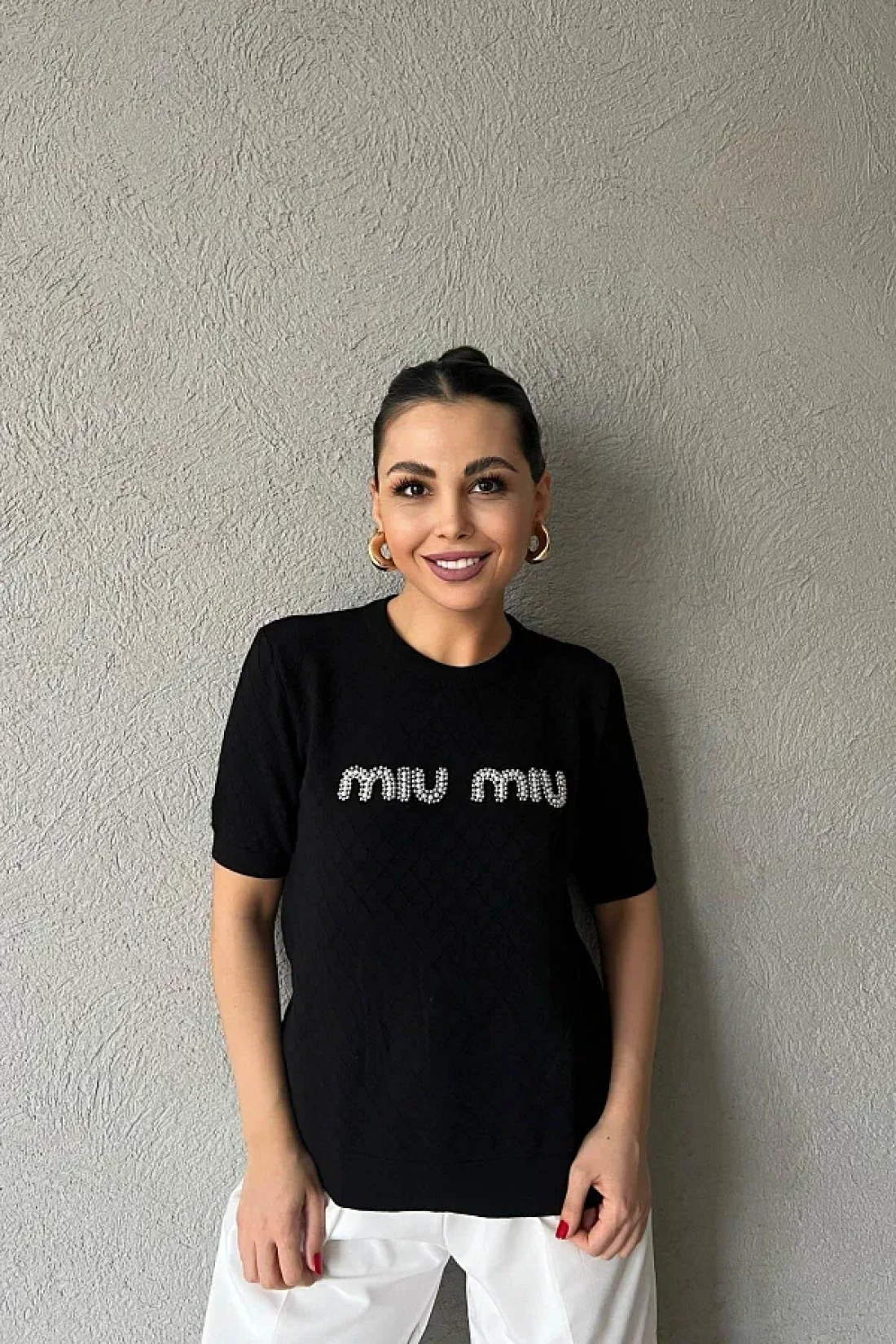 asur boutique تي شيرت Asur Boutique النسائي ذو الحجم القياسي المزخرف بالألماس
