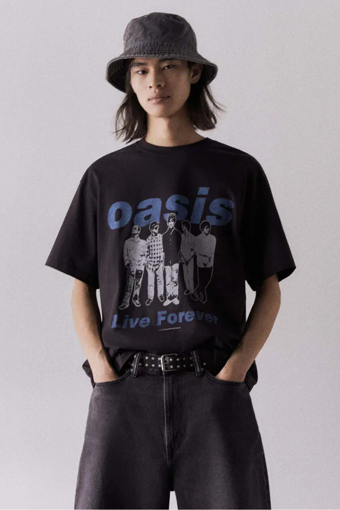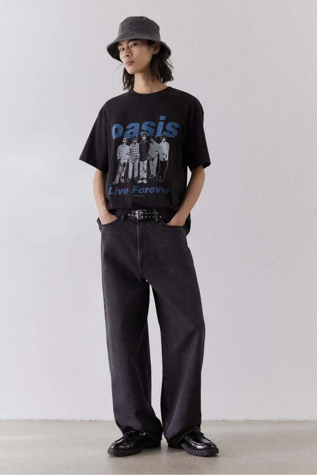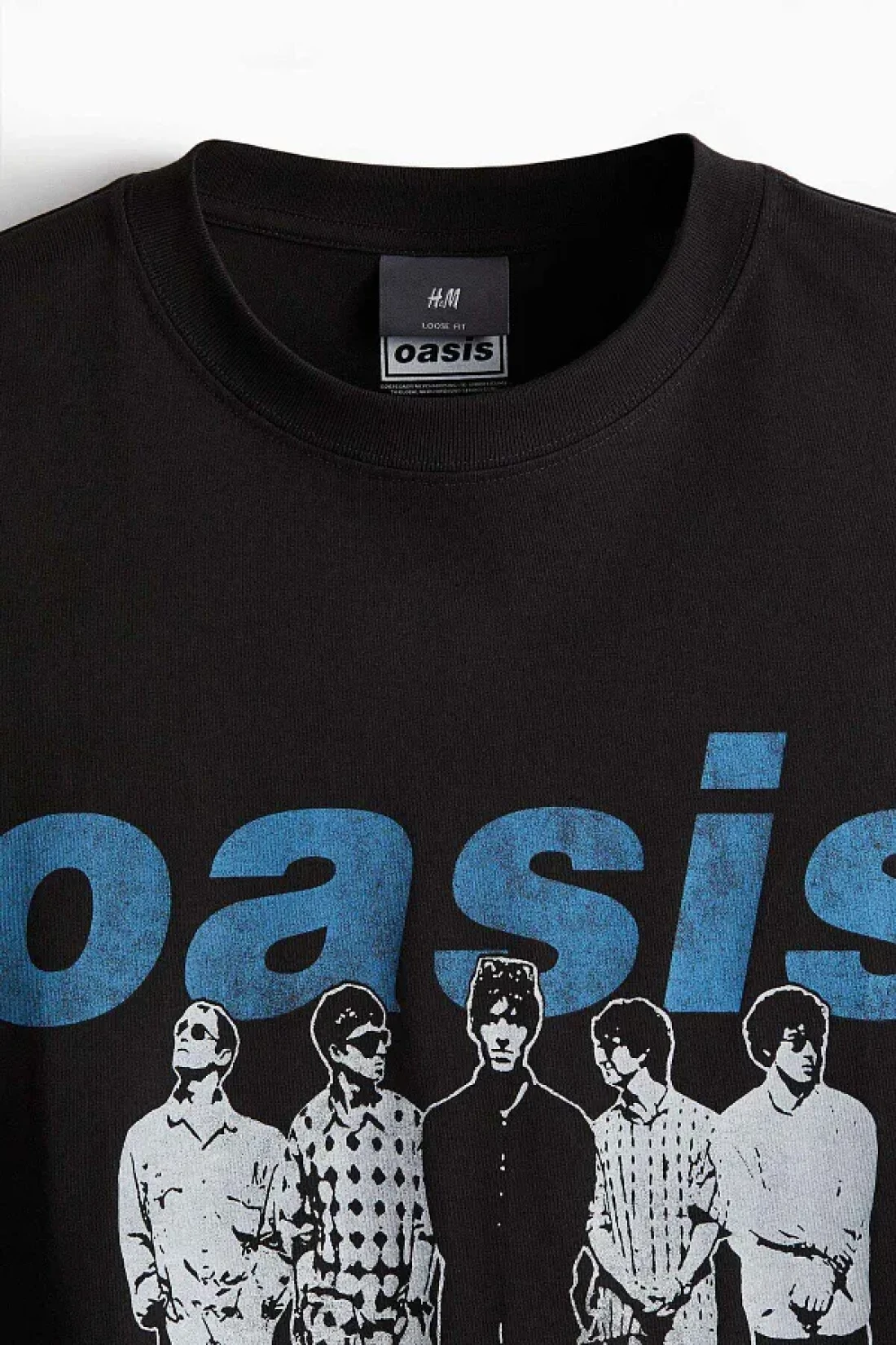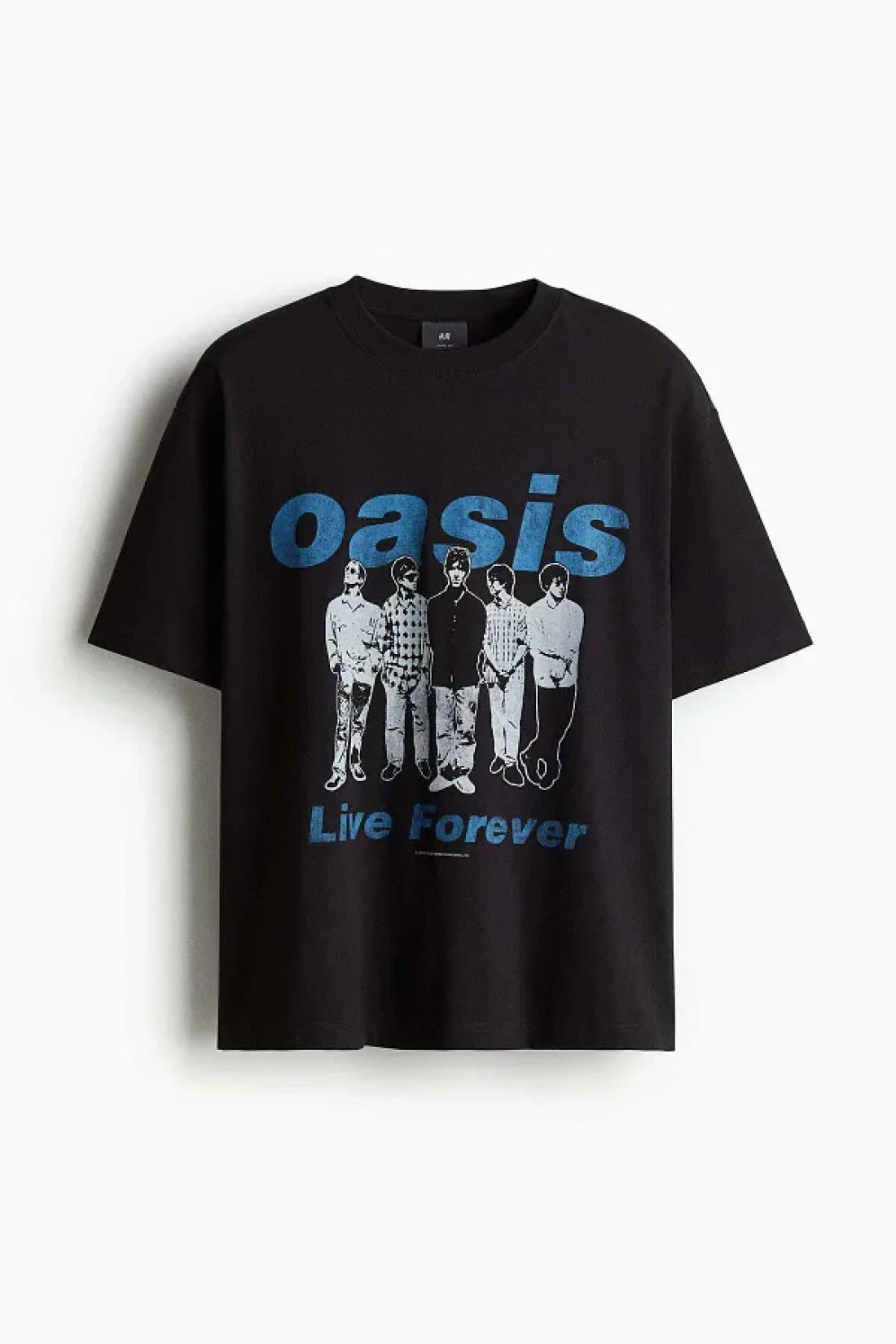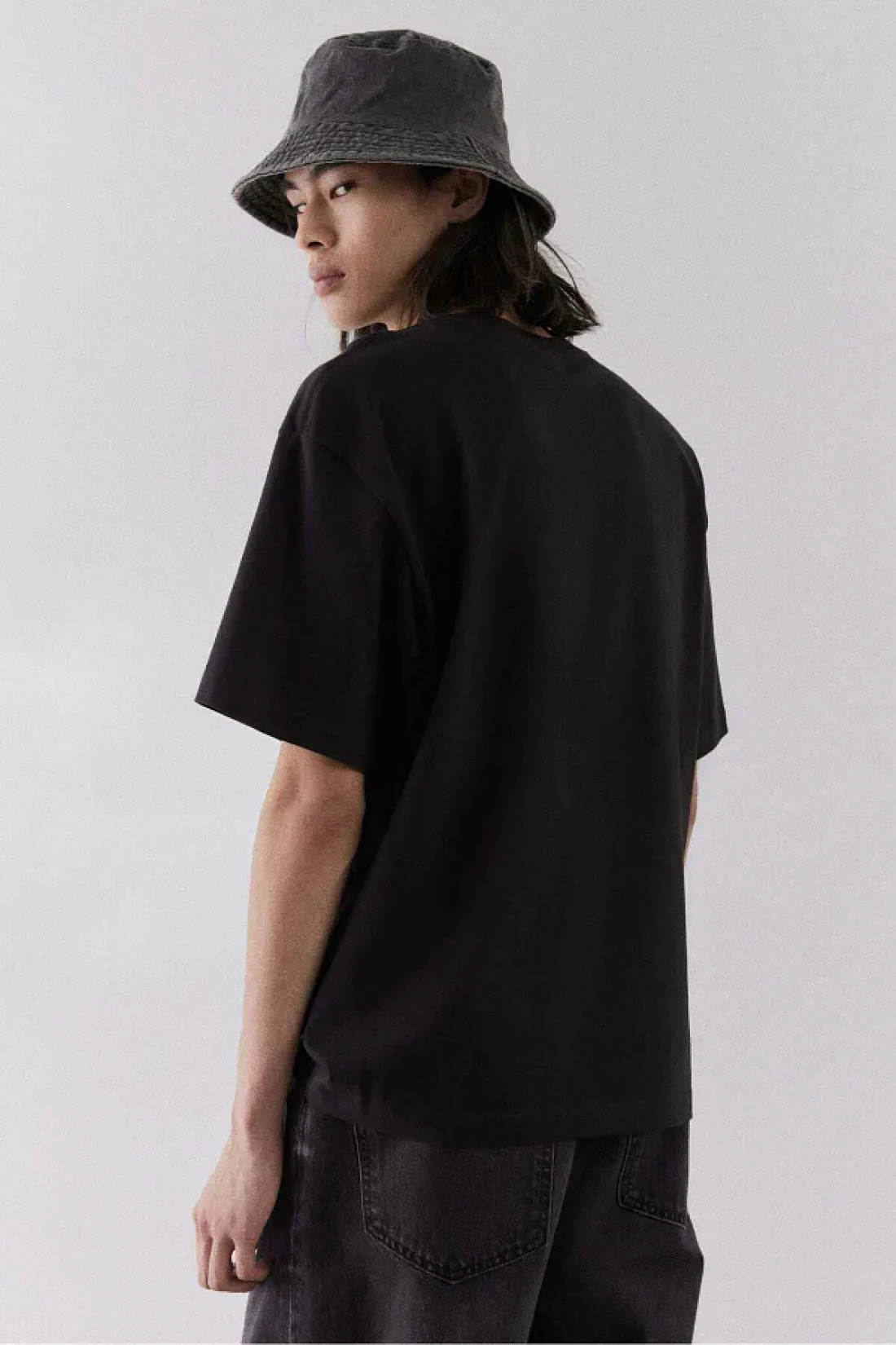 تي شيرت من قماش جيرسي قطني متوسط الوزن مطبوع، مع رقبة مضلعة وأكتاف منسدلة وحاشية مستقيمة القطع. قصة فضفاضة لتناسب شكل جسمك ولكن ليس بشكل كبير.