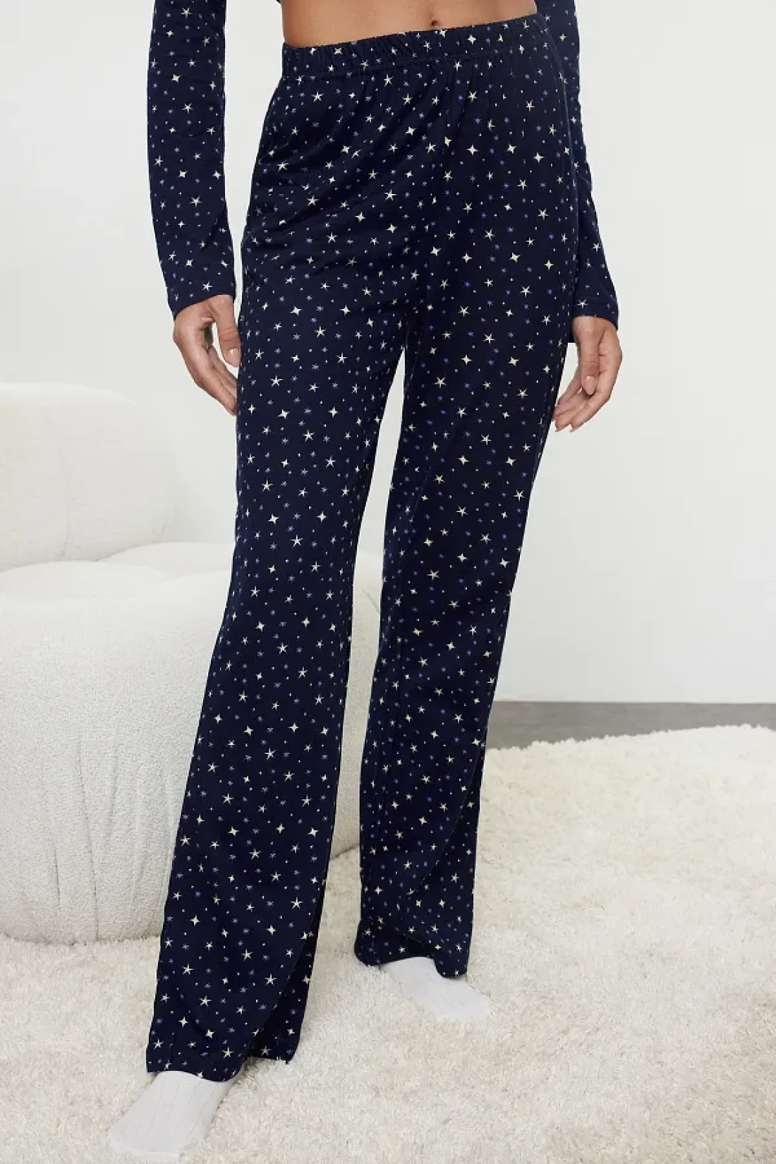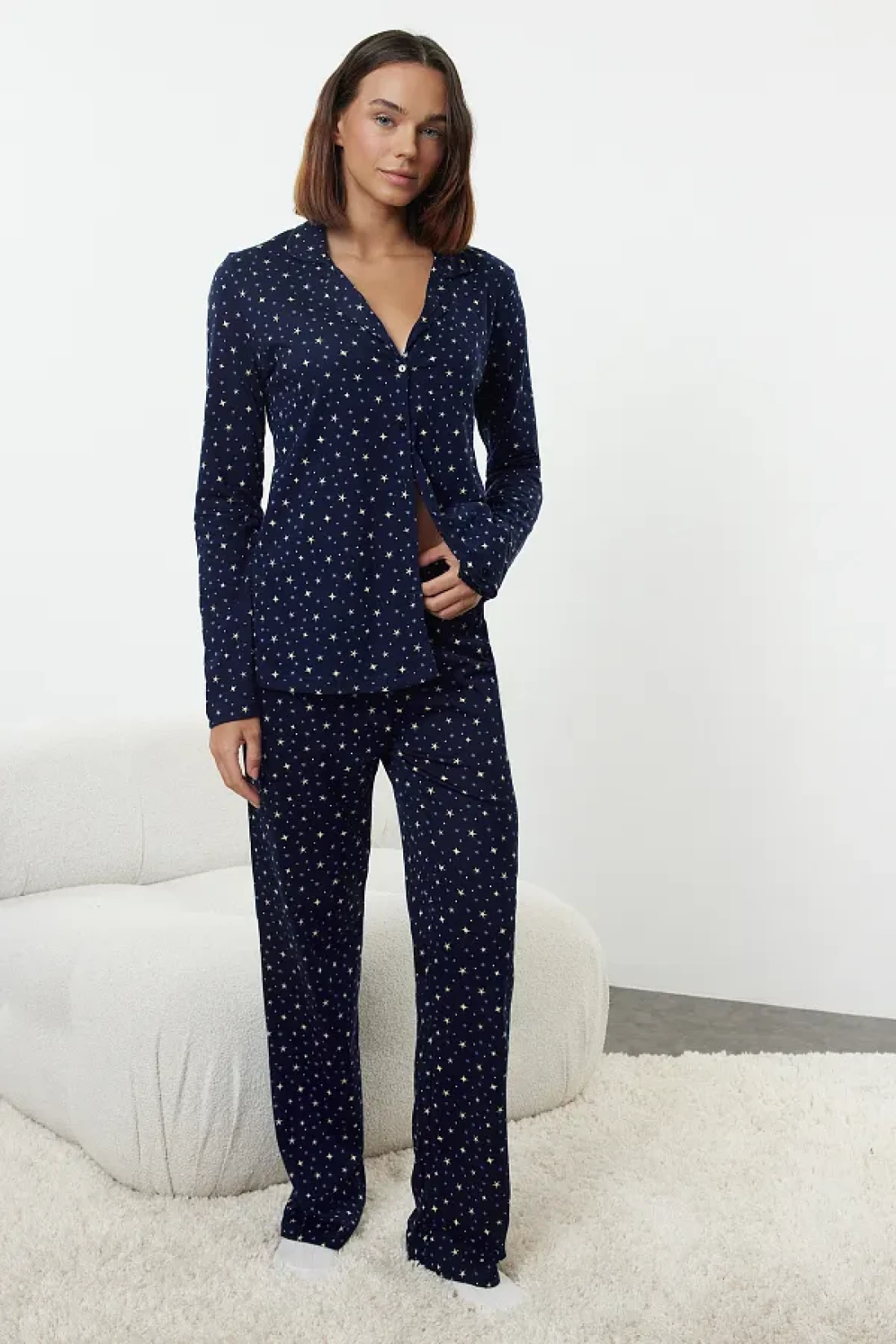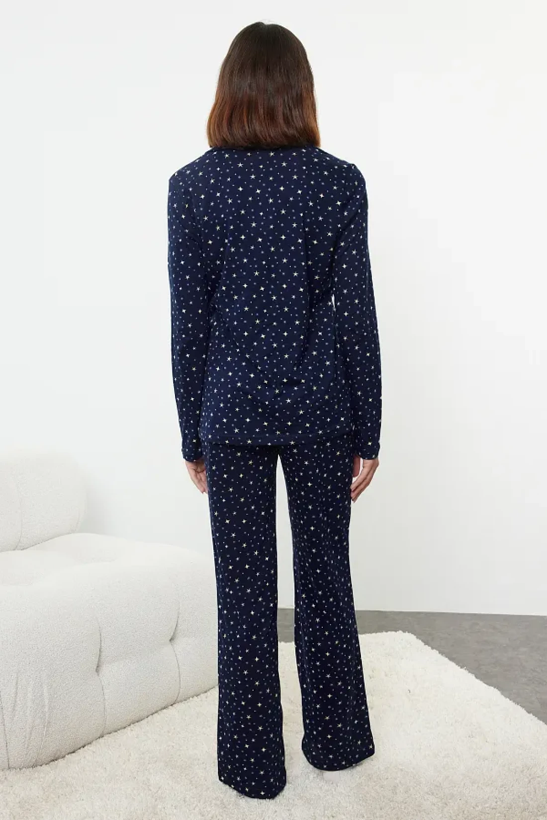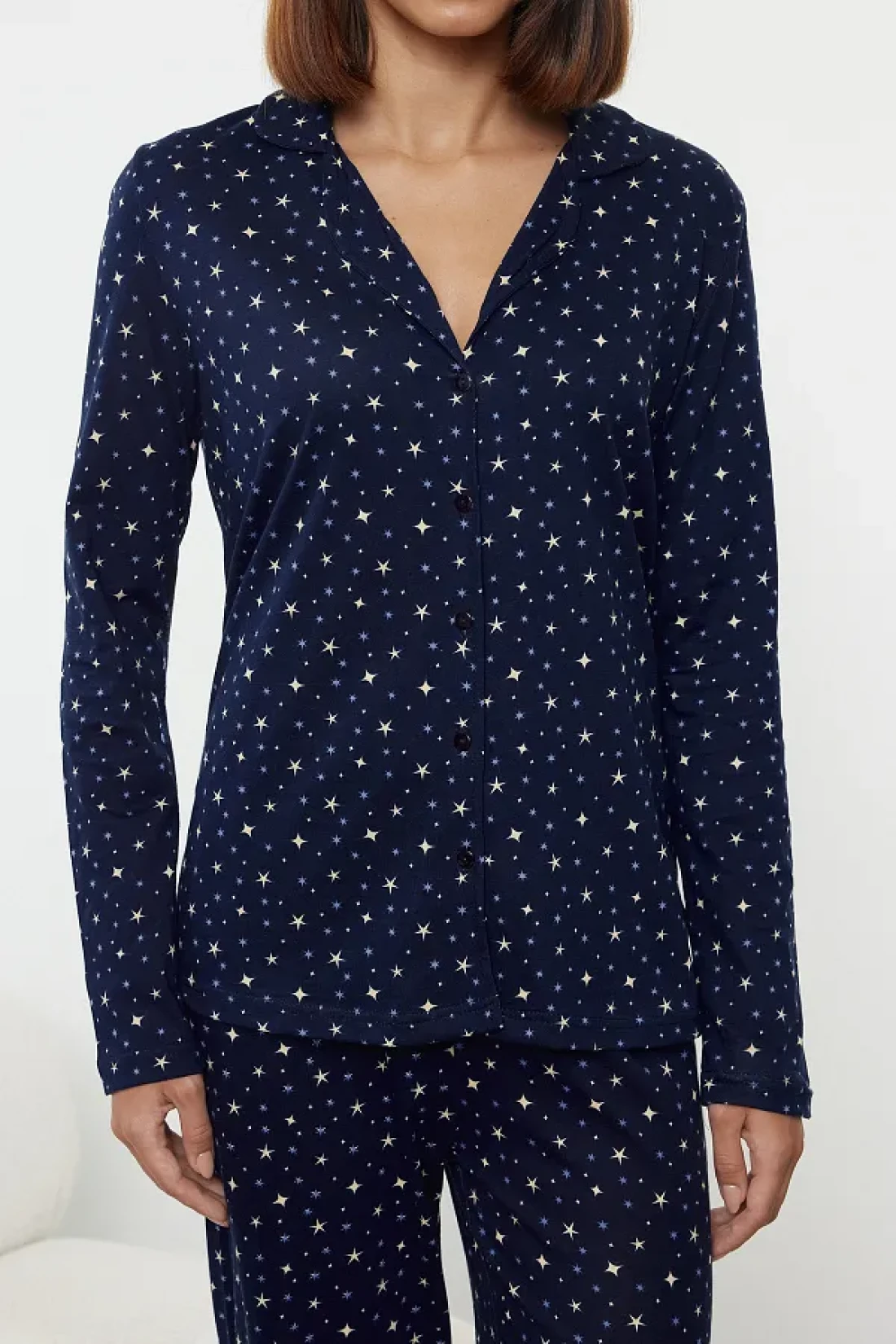 Collection طقم بيجامة قطنية منقوشة باللون الأزرق الداكن من Galaxi - THMAW25PT00097