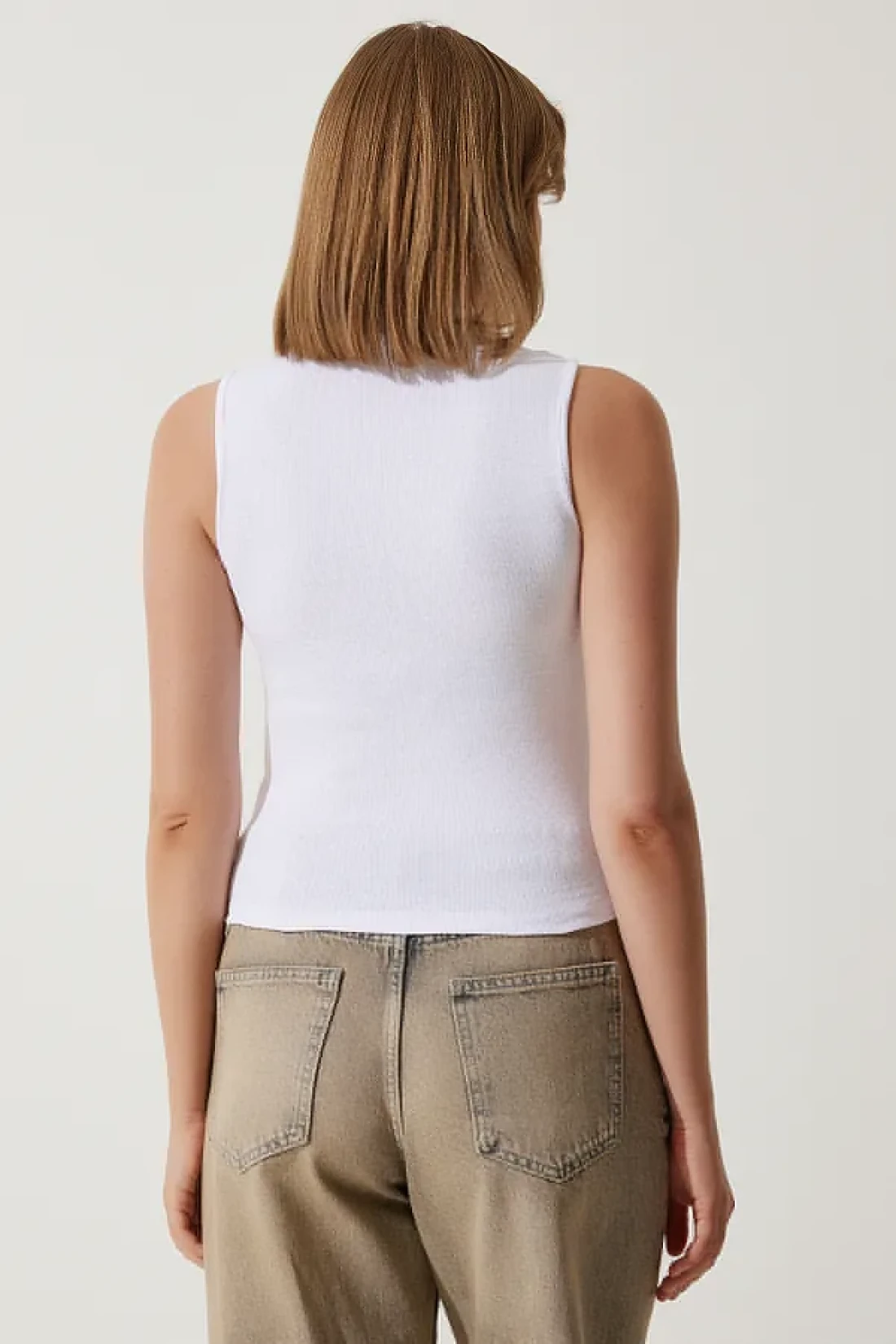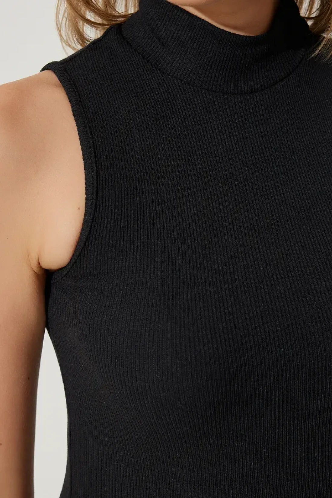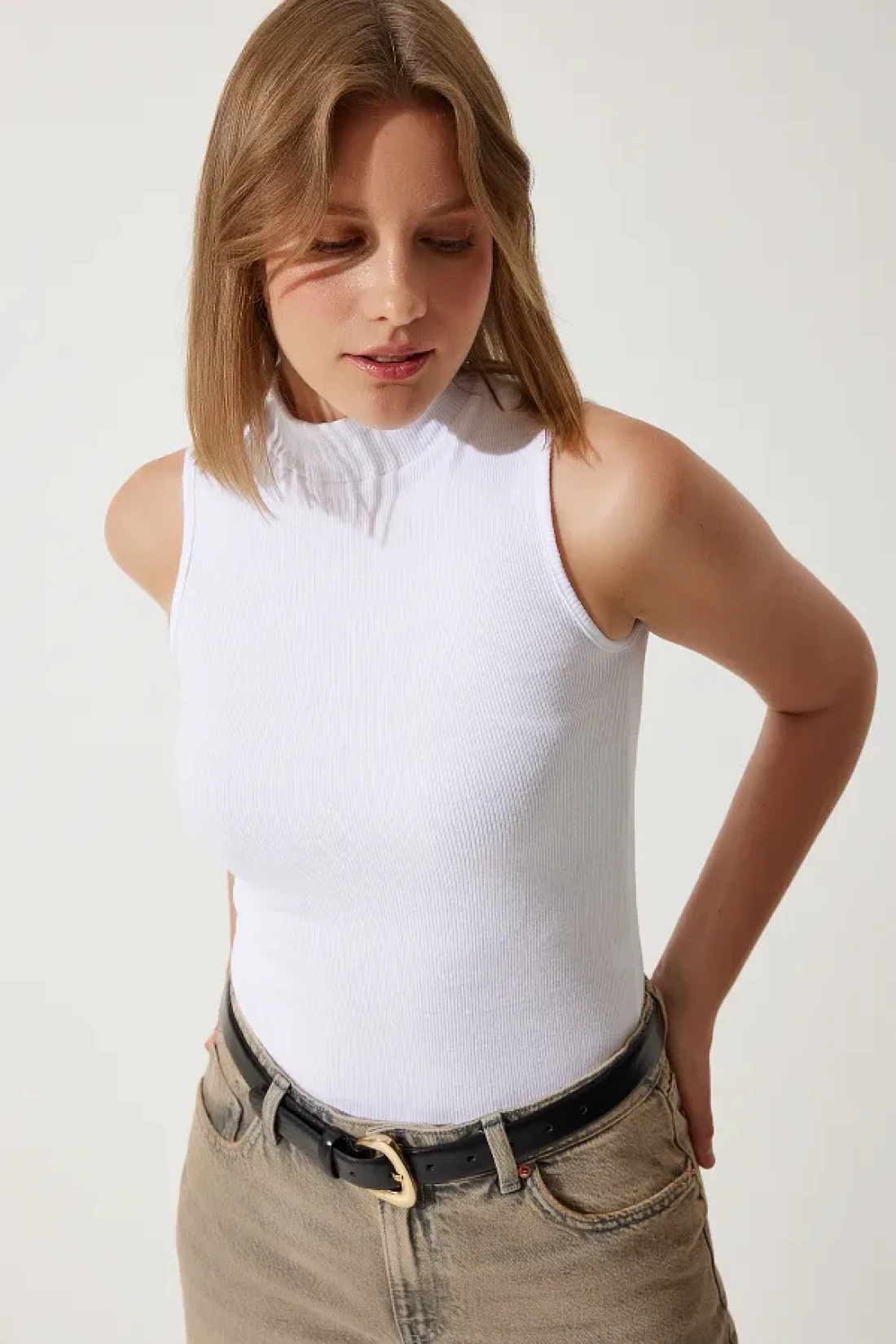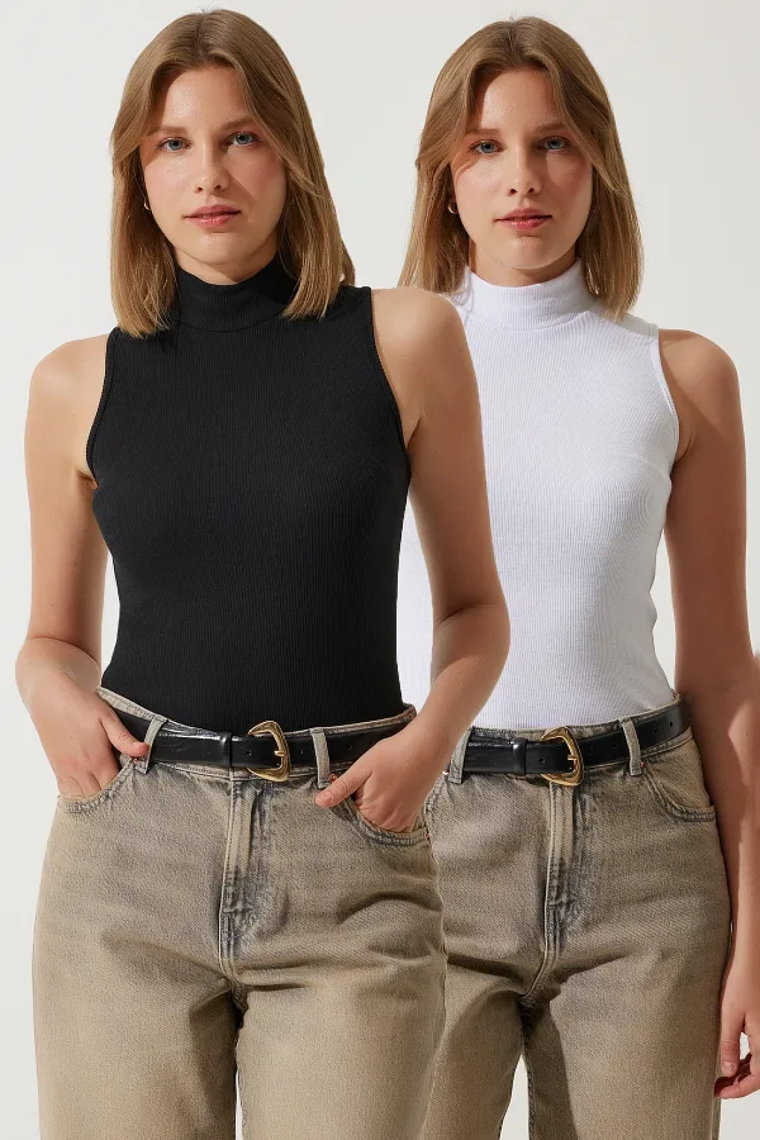 Happiness İstanbul بلوزة نسائية محبوكة ذات ياقة مدورة بدون أكمام حزمة من قطعتين باللونين الأبيض والأسود GT00012