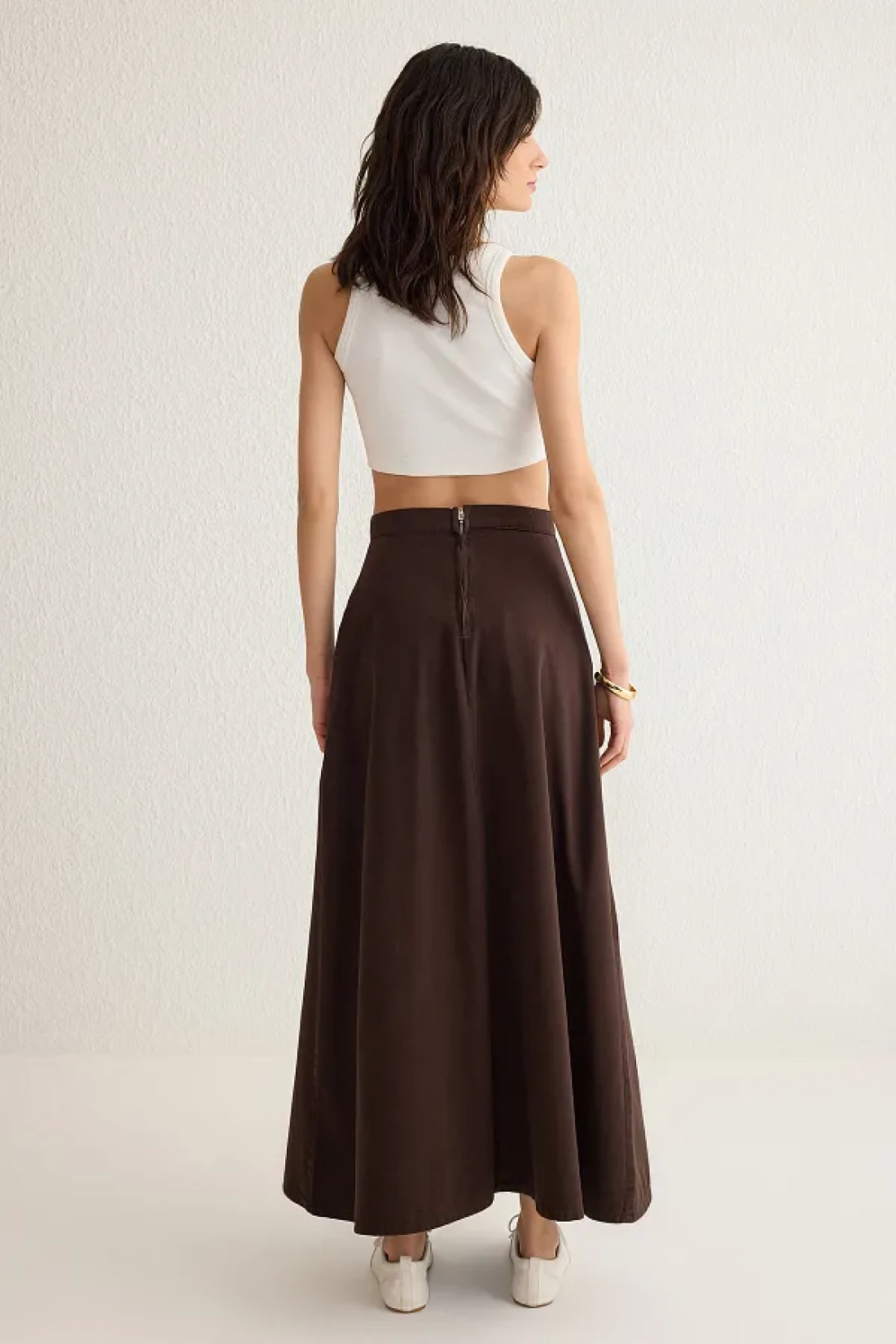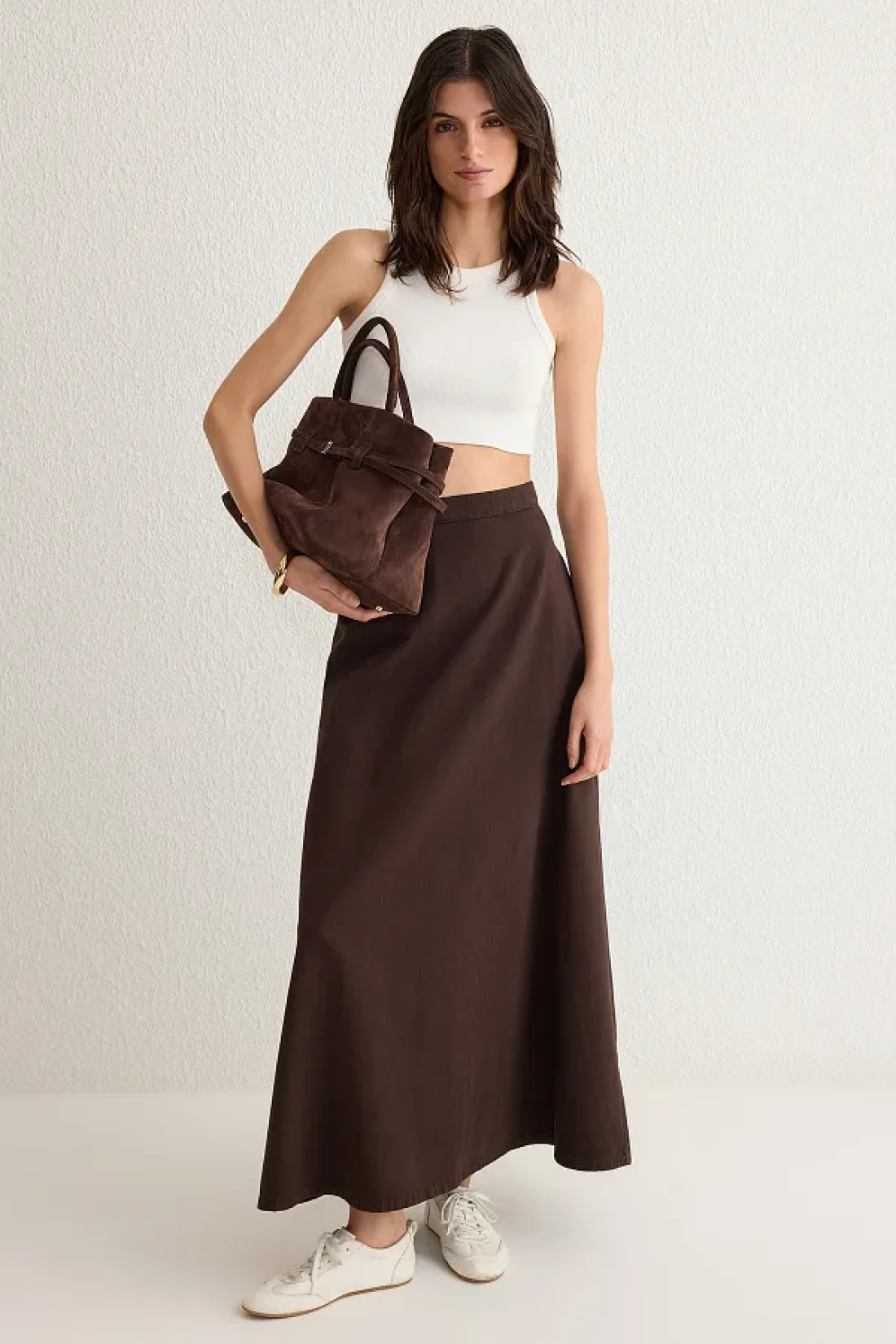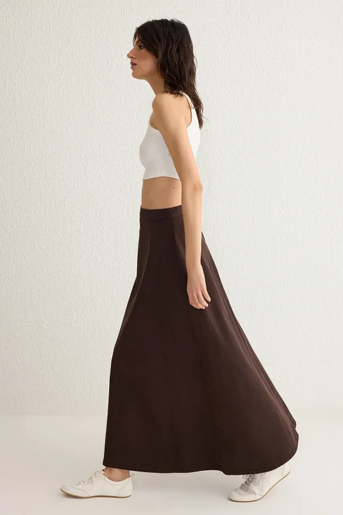 Collection تنورة طويلة من قماش الدنيم باللون البني TWOSS25ET00005
