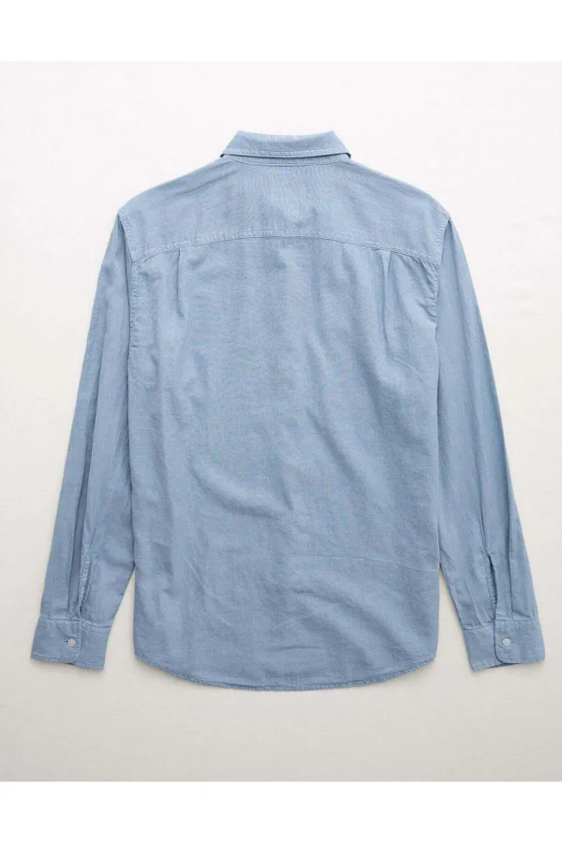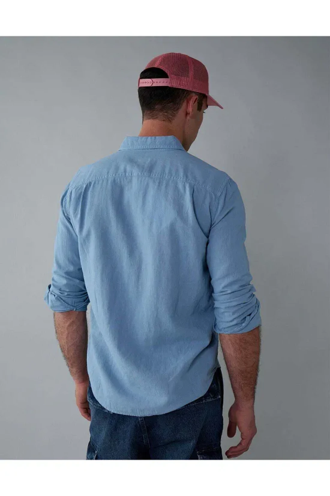 American Eagle قميص AE بأكمام طويلة وأزرار من مزيج الكتان
